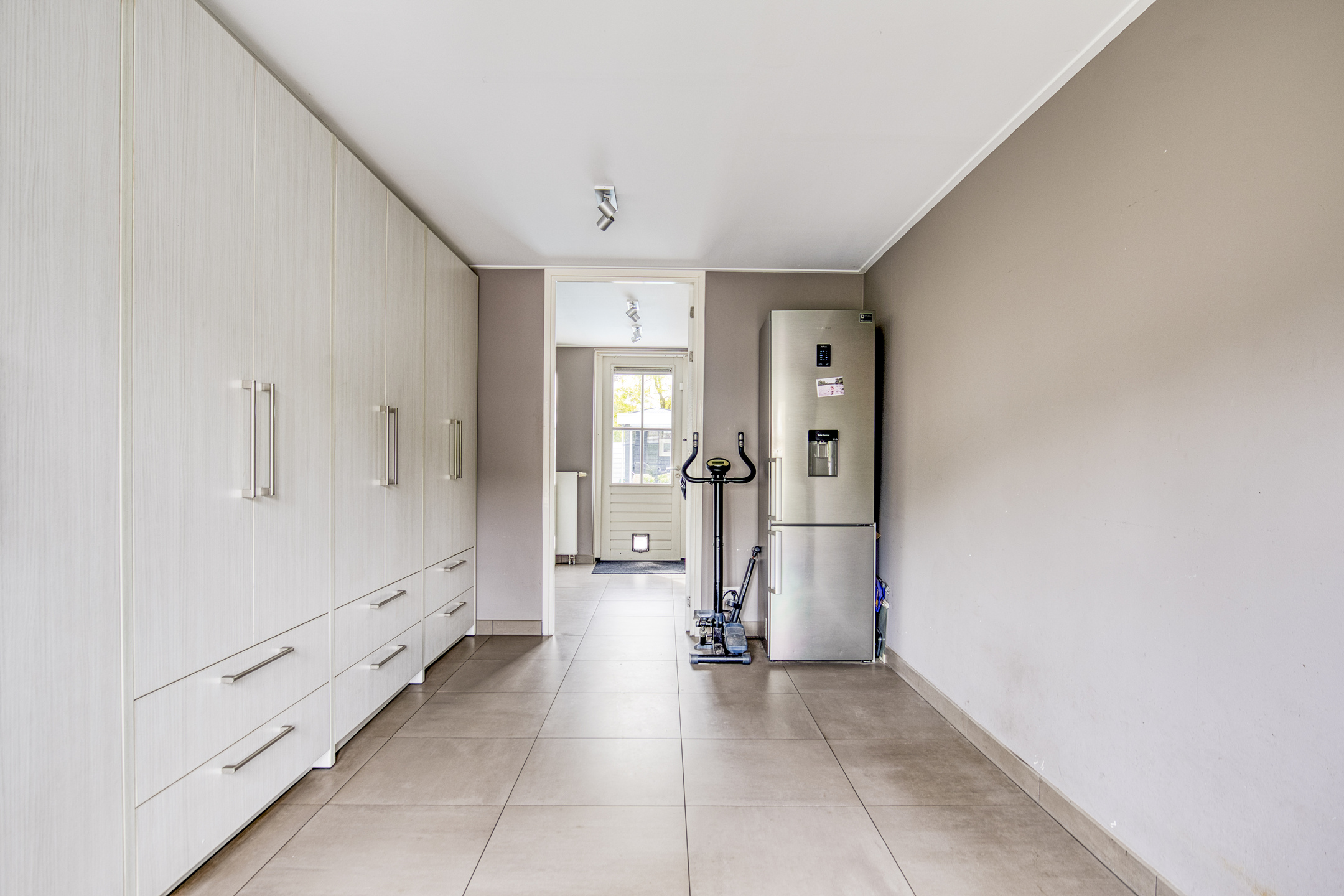 Aansluitend op de keuken treft u een grote bijkeuken en separate berging, perfect voor huishoudelijke apparatuur en als tweede entree vanaf de oprit. Garderobeproblemen zijn hier verleden tijd: een zee aan opbergruimte voor jassen, tassen en schoenen biedt dagelijks gemak.