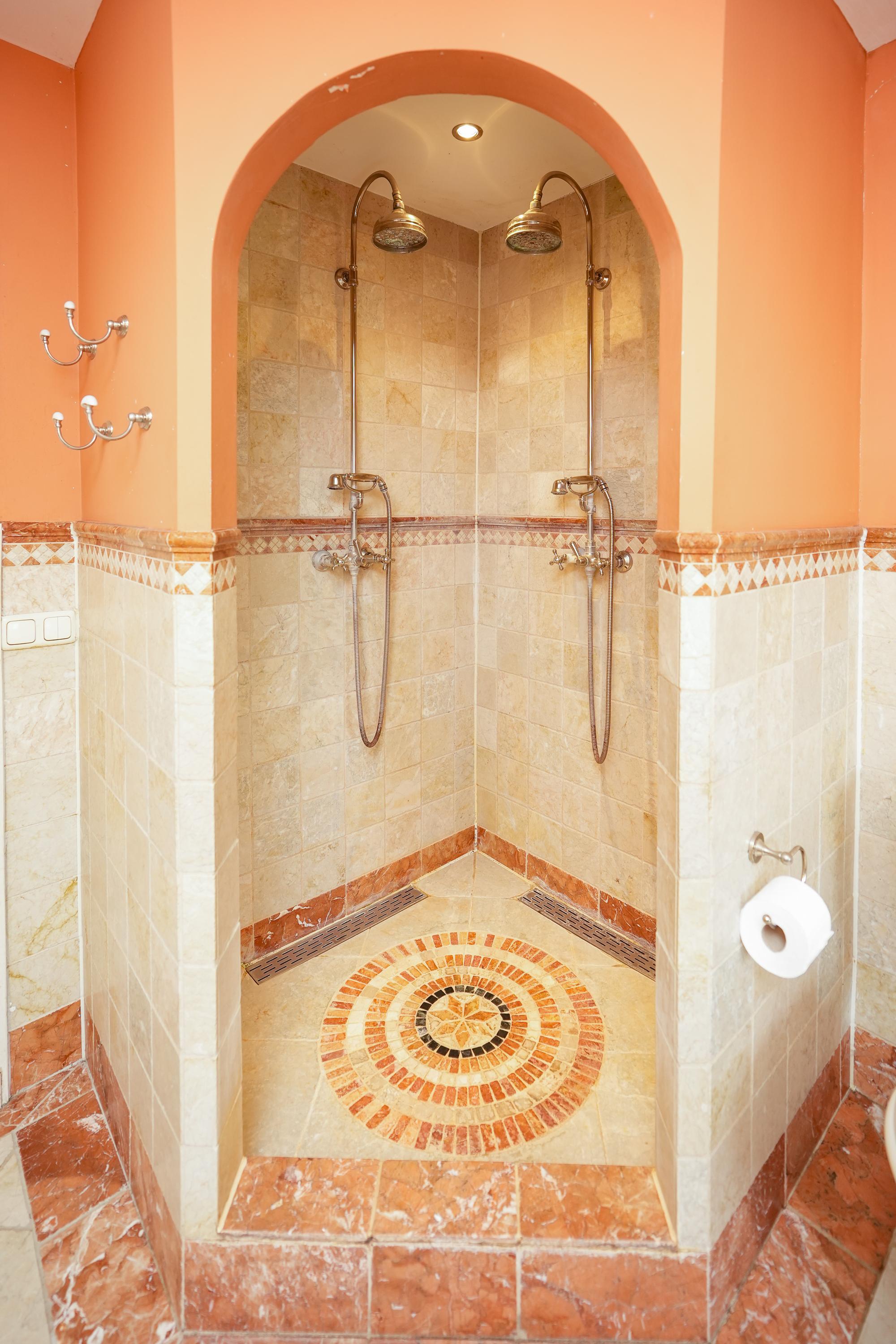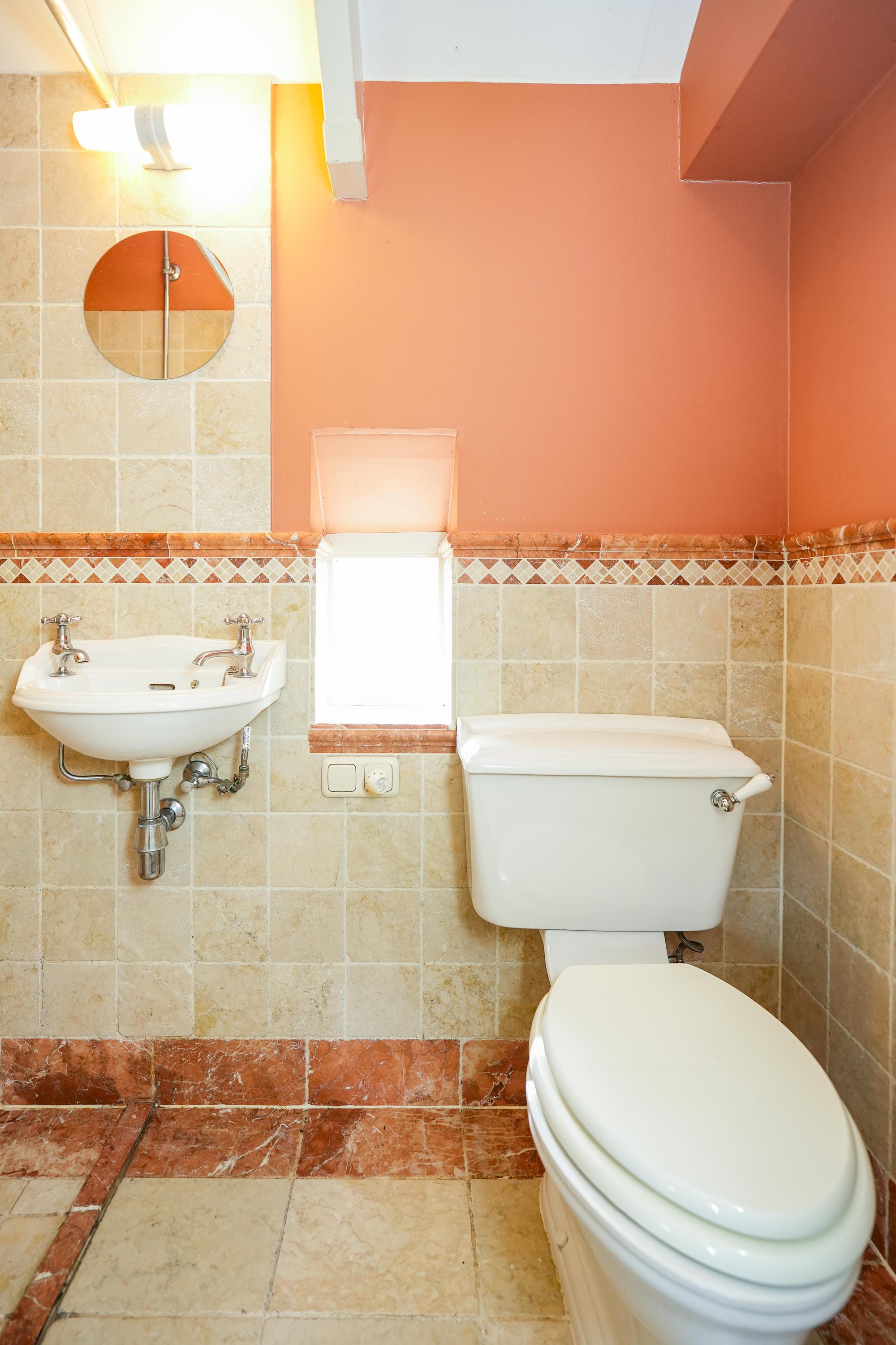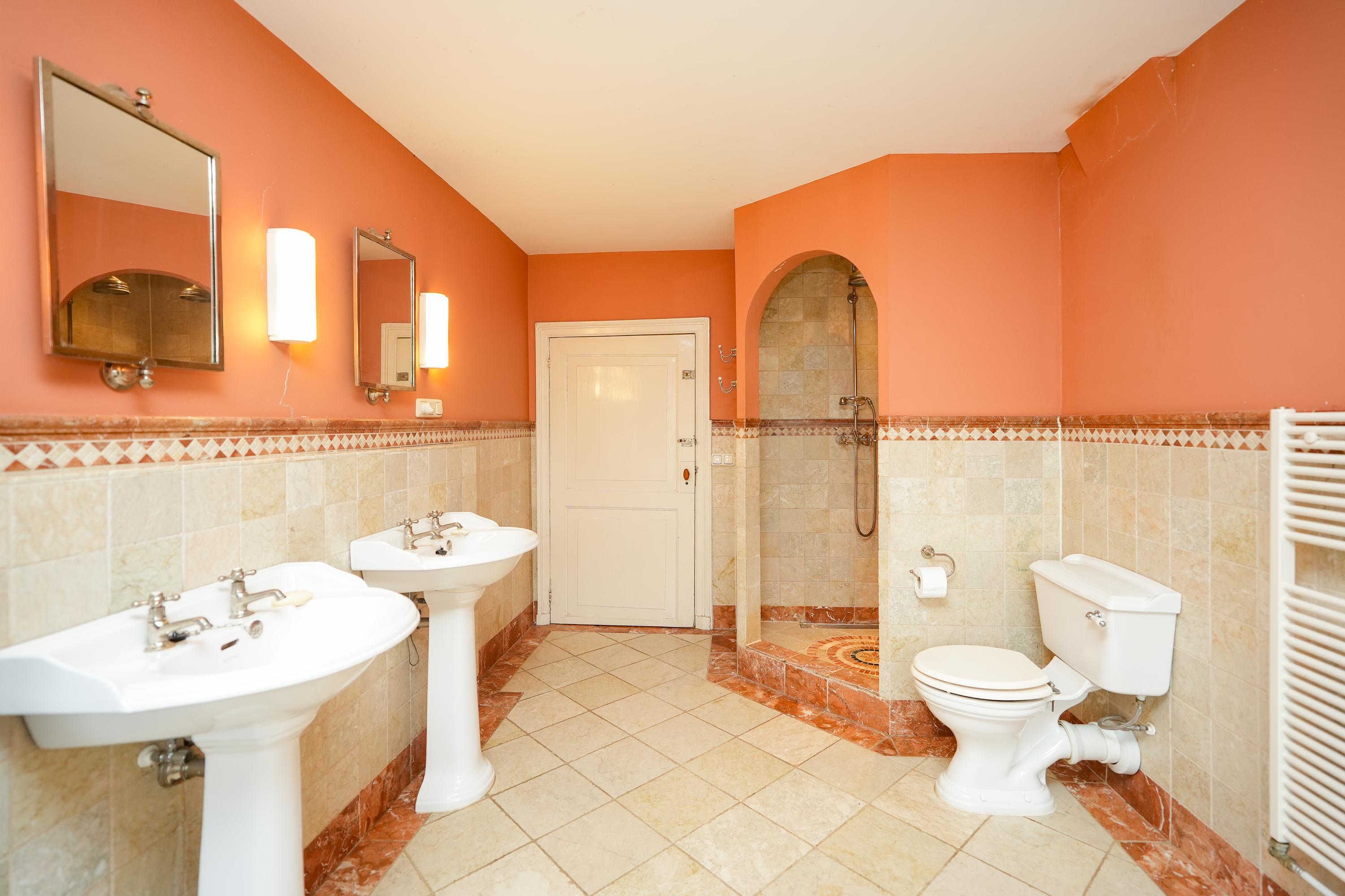 On the ground floor, two refined living rooms open to light and garden through original sliding doors, accentuated by natural stone flooring and underfloor heating. The kitchen, fitted with a classic AGA, integrates seamlessly with outdoor terraces, while the adjacent utility spaces and bedroom suite add versatility—ideal for guests or home office needs. Upstairs, five generous bedrooms provide ample room for living or working, supported by a renovated bathroom suite with underfloor heating. Additional spaces include a cellar, outbuildings such as a former stable, and a separate barn in the orchard. The original composition is complemented by technical updates: monument glass, ecohome-controlled floor heating, and updated heating systems, delivering discreet comfort for modern living.
