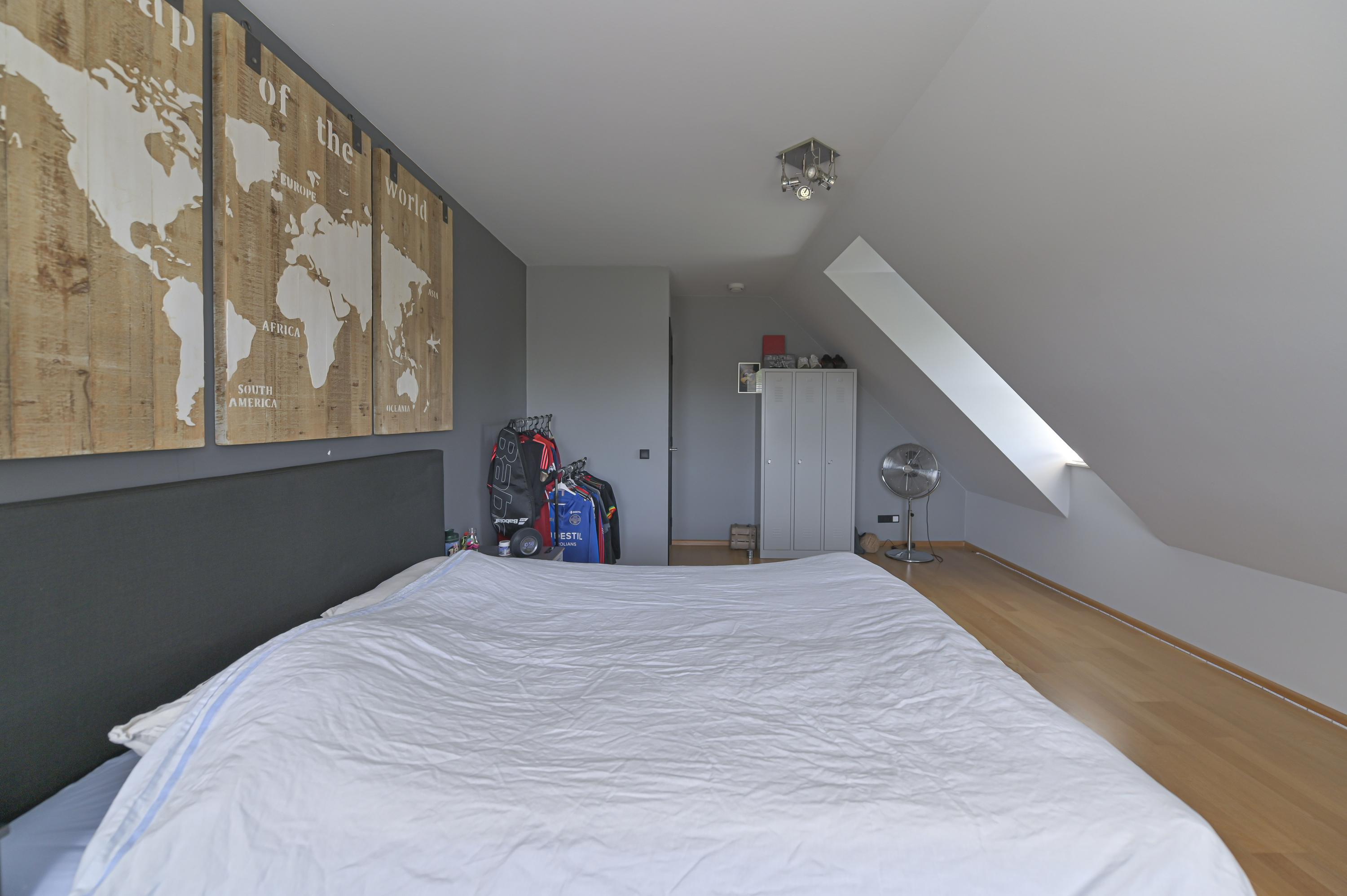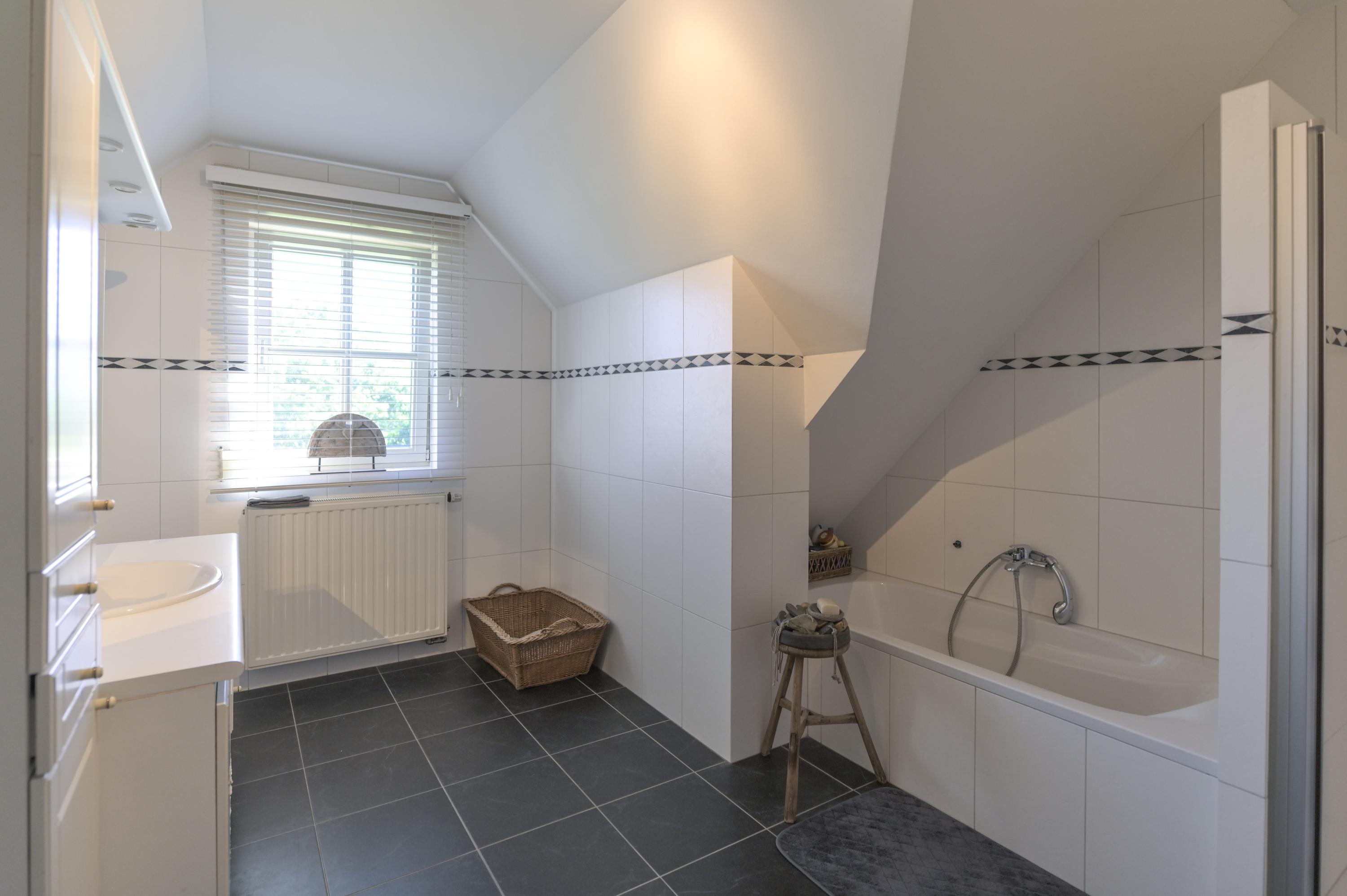 All bedrooms have two dormer windows, insect screens and window coverings. The bathroom is fully tiled and features a shower, bathtub, washbasin with vanity, radiator, electric underfloor heating, and natural ventilation. The separate toilet is fitted with a washbasin.