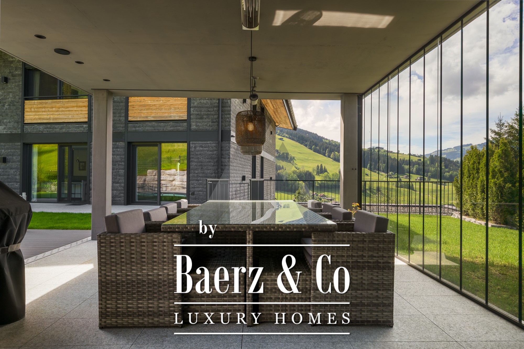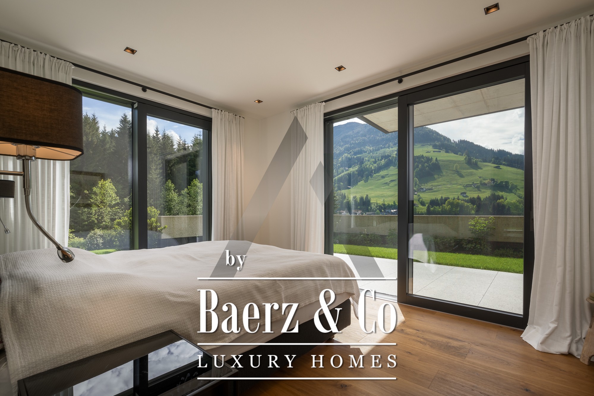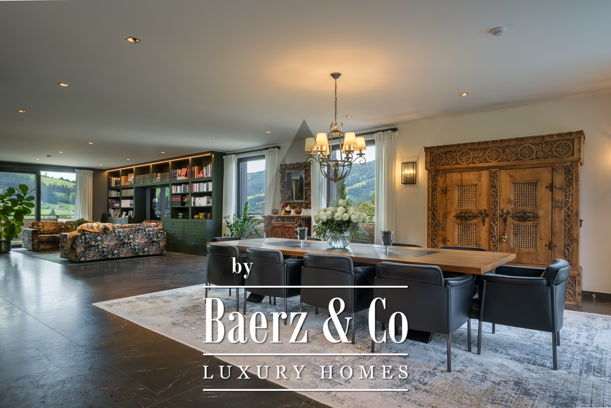 Villa Kirchberg in Tirol commands an exceptionally quiet and sunlit position on a 1,971 m² lot at the edge of the village, its boundaries opening to meadows and woodlands to the south and east. From this vantage, uninterrupted panoramas sweep from Gaisberg and Hohe Salve to Kirchberg and the Kitzbüheler Horn, capturing the rhythm of seasonal light and Alpine clarity.