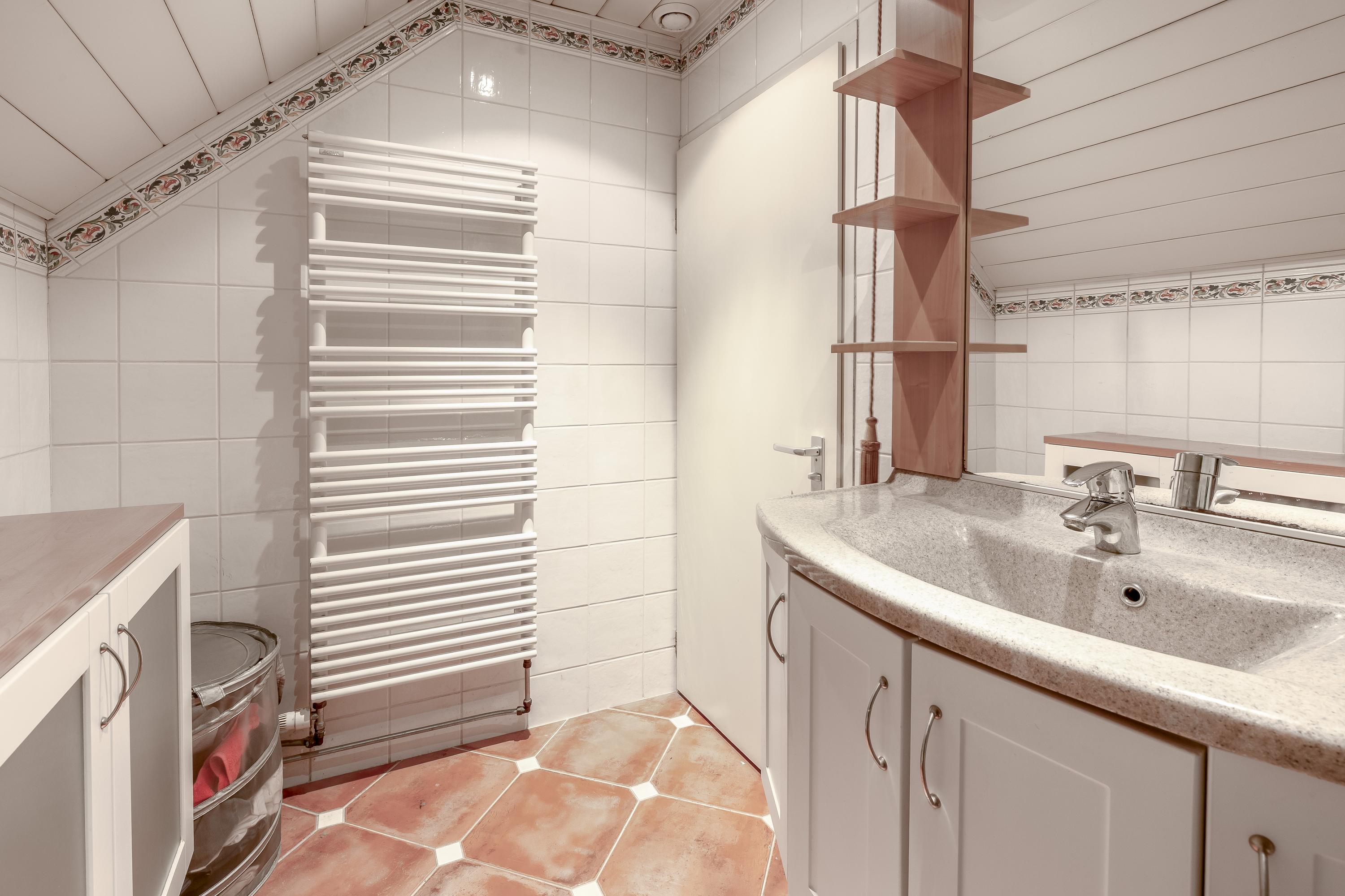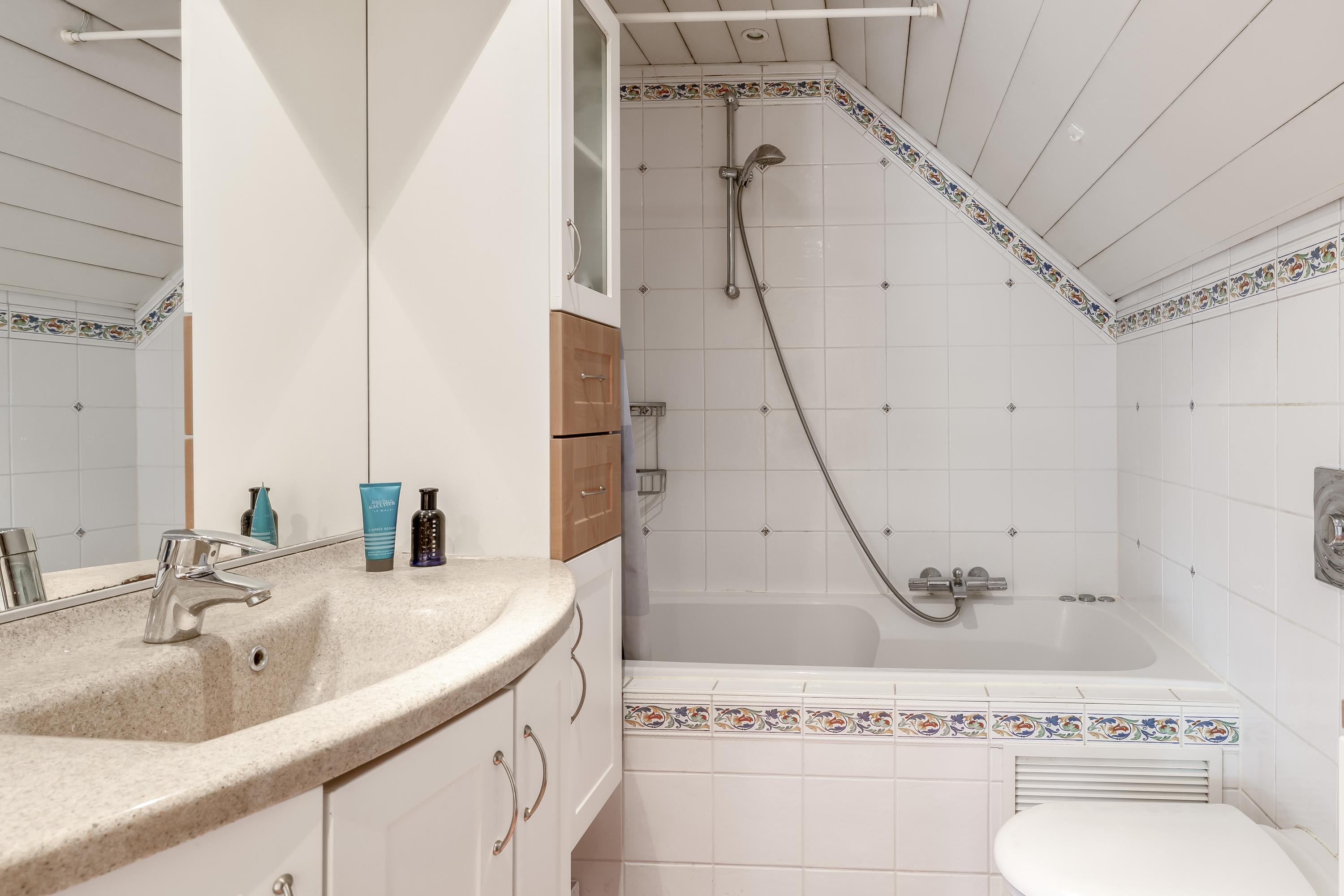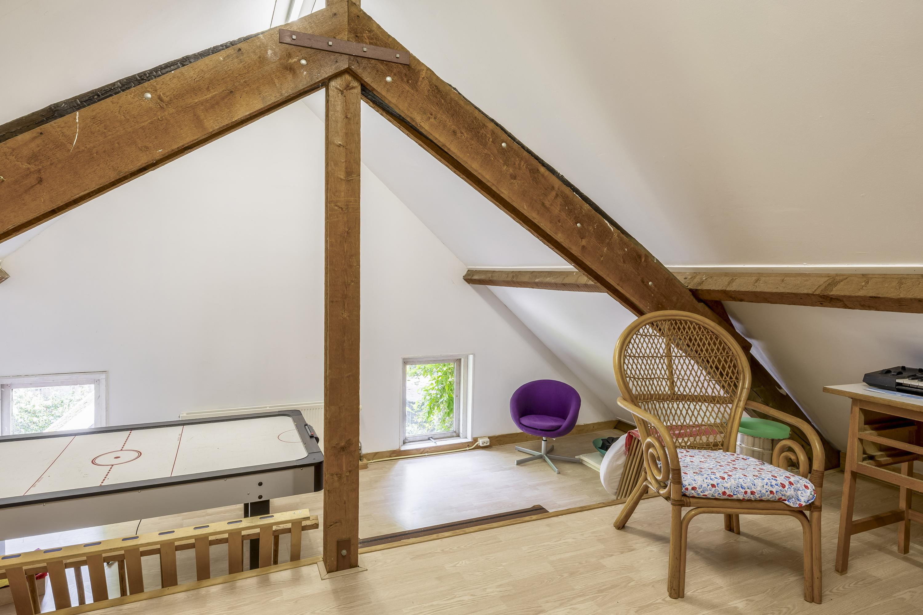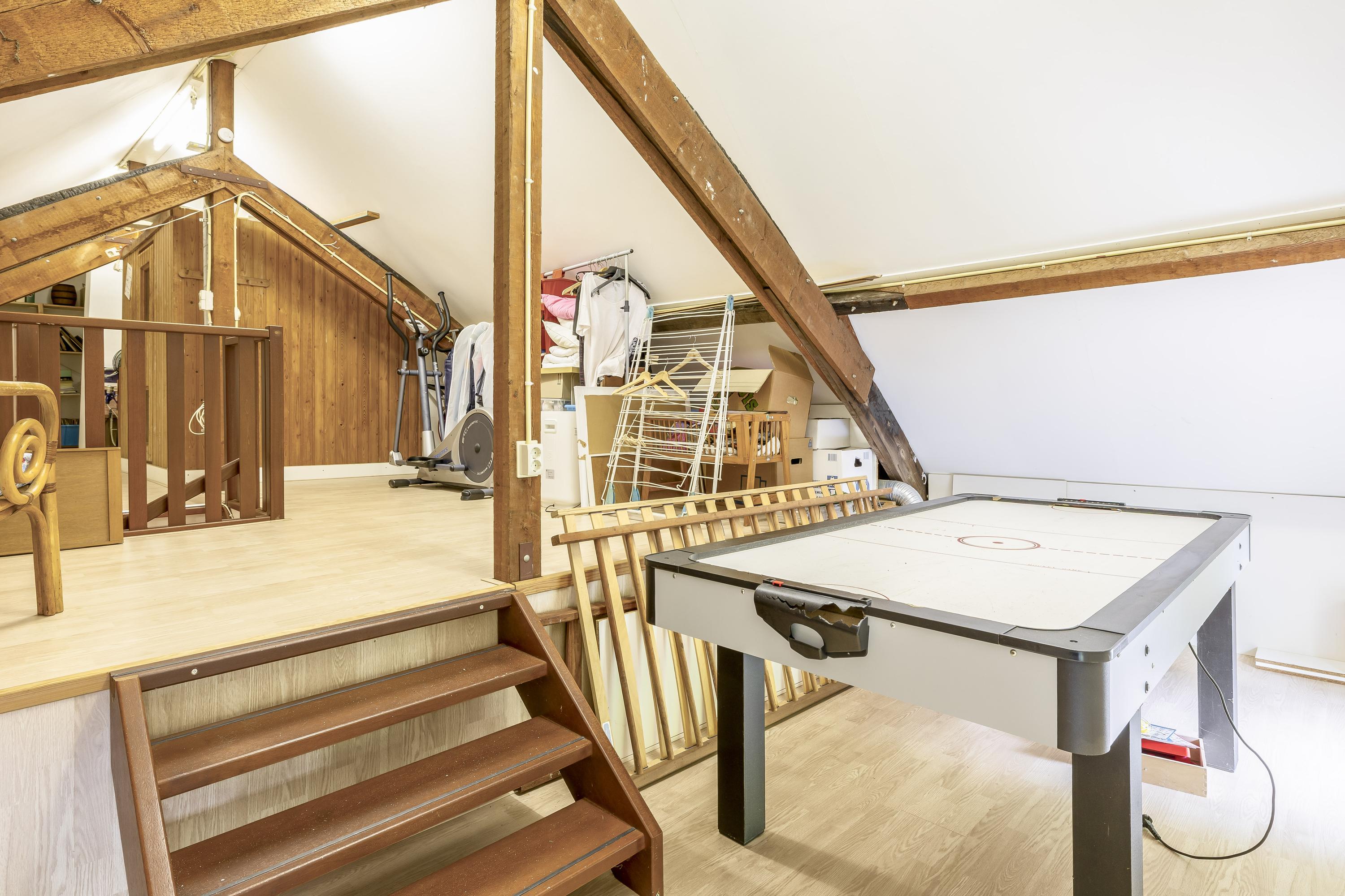 This floor also offers a second bathroom and a versatile space for hobbies or work. A fixed staircase leads to the second floor—a surprisingly spacious attic level with sauna, extra storage, and hobby room. Additional (bed)rooms can easily be created here!