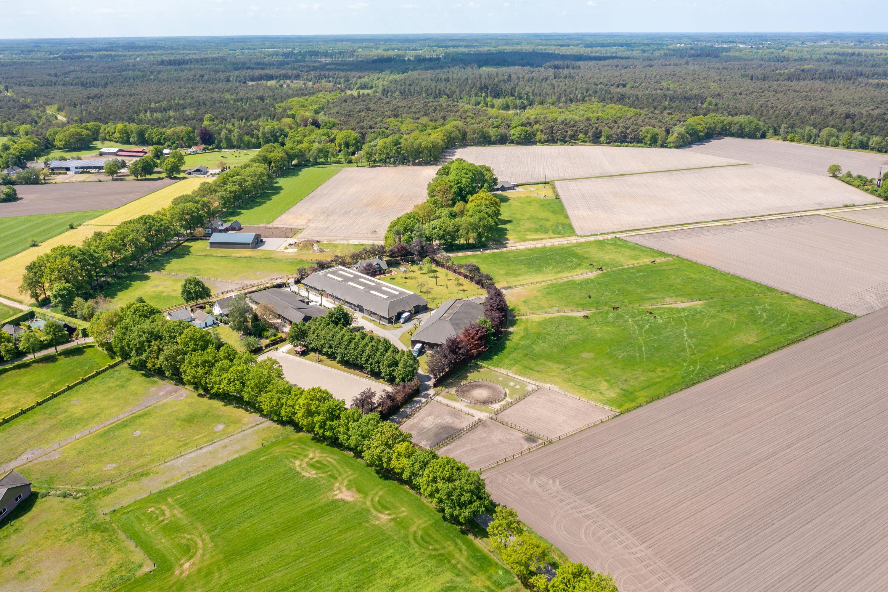 This beautiful, complete equestrian accommodation offers plenty of possibilities thanks to the presence of a detached house and living areas, a total of 33 horse stalls divided over various units, a spacious indoor and outdoor arena (approx. 22x62 metres), a storage shed with rearing stalls and large pastures. In addition, the property is situated in a beautiful location with plenty of privacy and on the edge of the Leenderbos forest with excellent riding opportunities!
