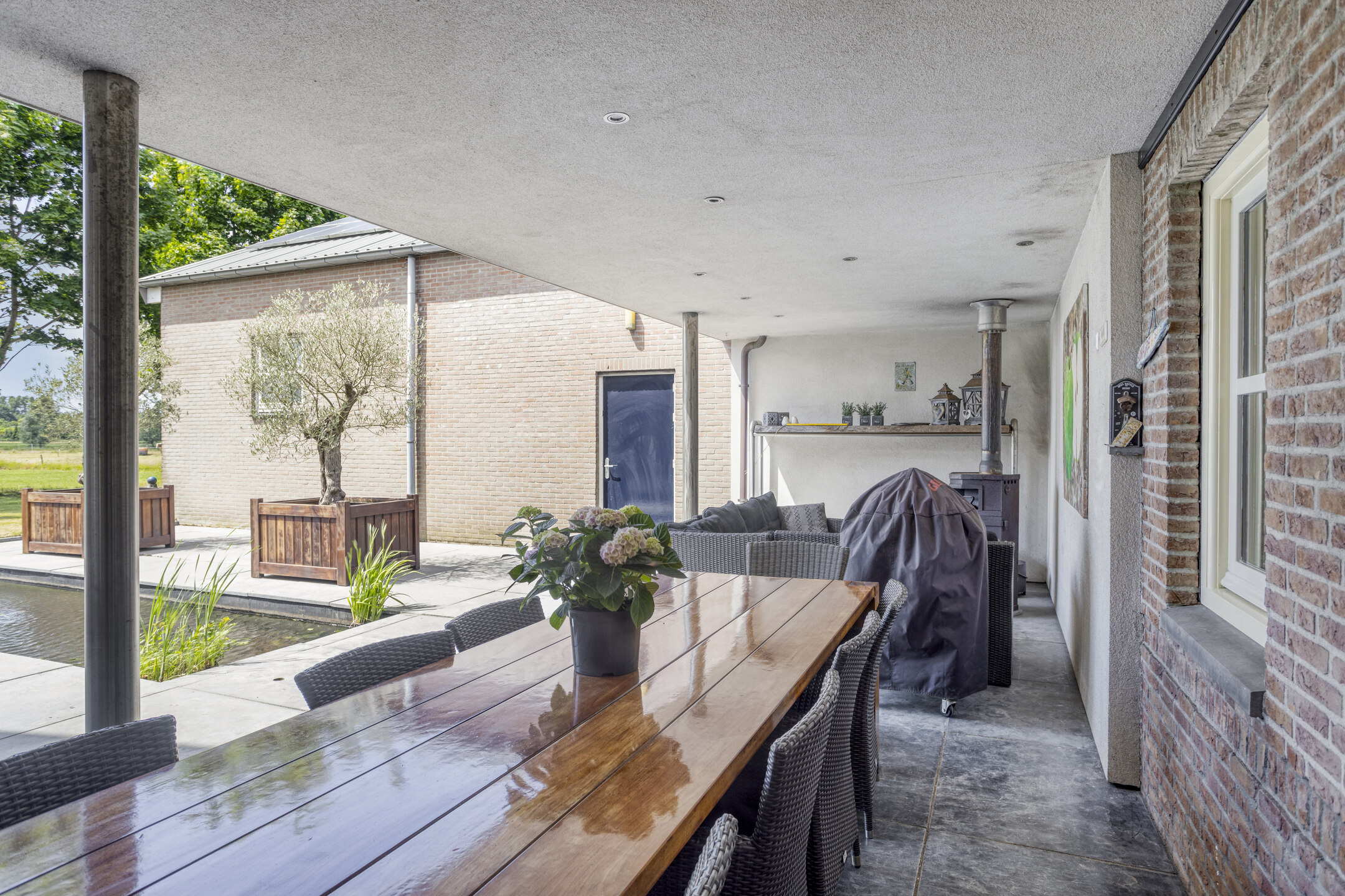 Overkapping tussen de woning en de loods t.b.v. extra opslag (ca. 45 m²).