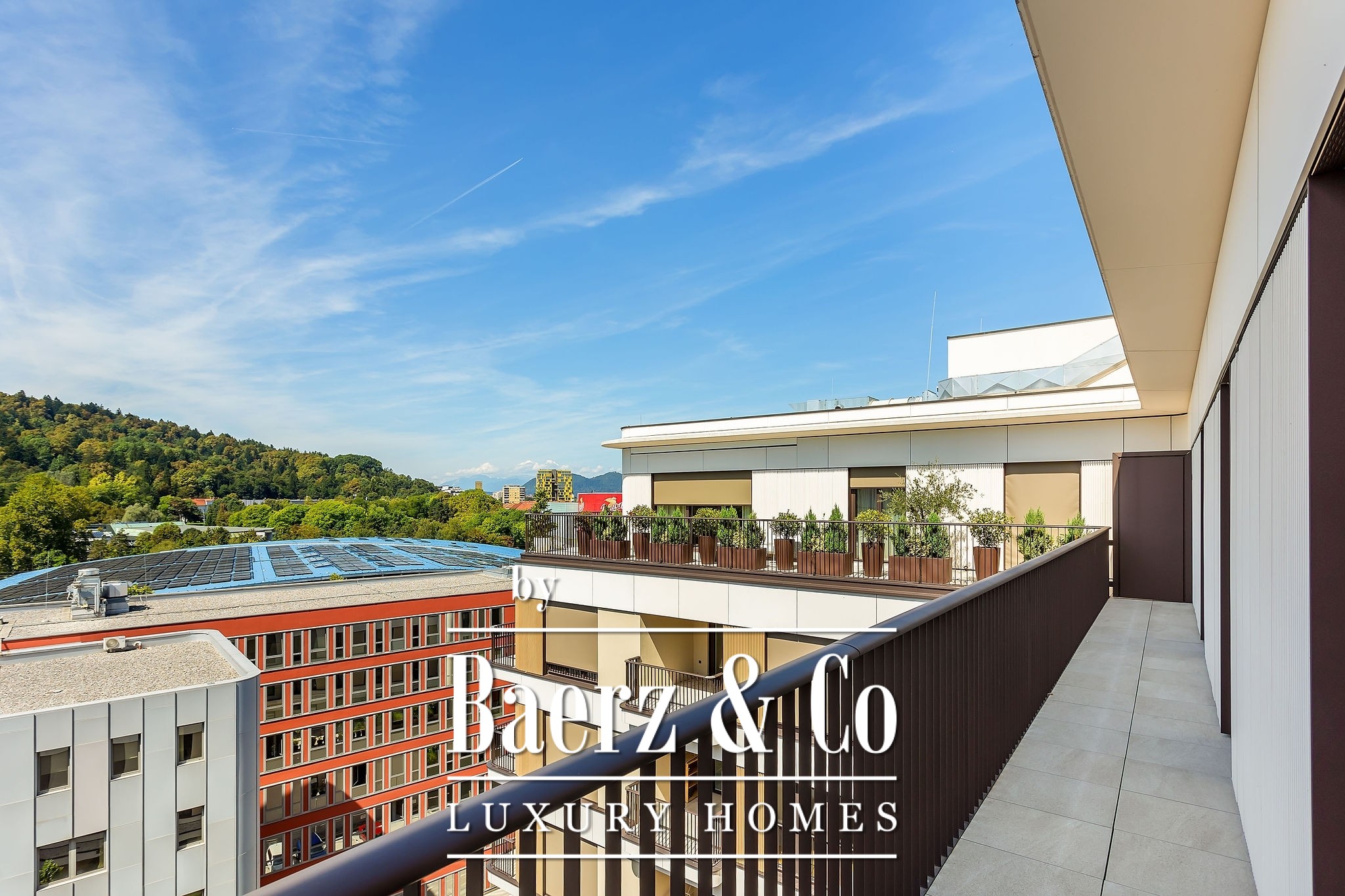 This apartment represents the pinnacle of luxury and exclusivity. The spacious terrace offers a sense of living in nature while the vibrant energy of Ljubljana unfolds before you. Every detail – from Internorm triple-glazed windows, French balconies, exterior screen blinds, to the choice of parquet and ceramics – is carefully selected for a superior living experience.