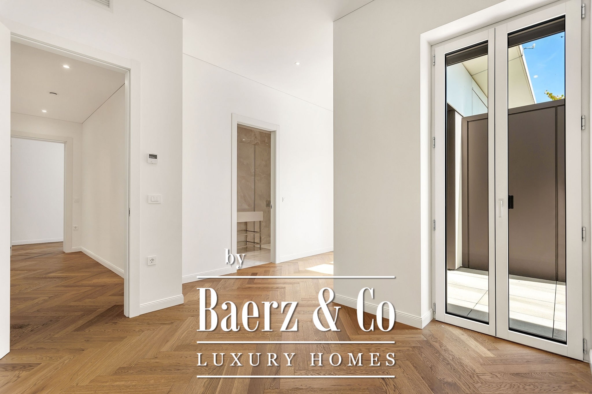 The apartment features elevated ceilings and floor-to-ceiling windows up to 230 cm. It is partially furnished with high-end furniture and Bosch appliances. Bathrooms and sanitary areas are equipped with premium fixtures and ready for immediate move-in.