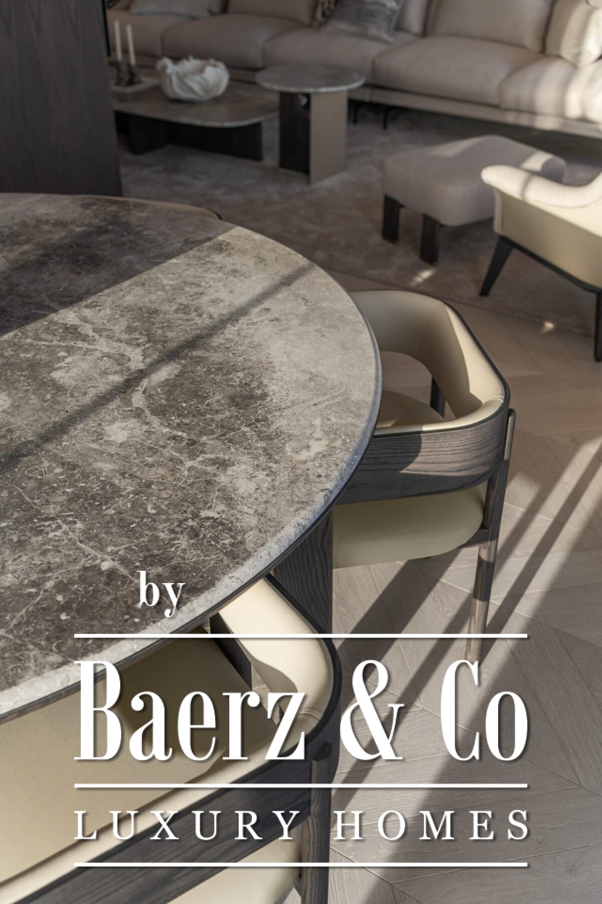 Within this secured, gated enclave with 24-hour security, the four-bedroom, four-and-a-half-bathroom home reveals refined details. Floor-to-ceiling windows illuminate the open living and dining space, seamlessly extending to a spacious terrace designed for tranquil hours or entertaining under the Marbella sky. The kitchen is appointed with Gaggenau appliances, complemented by natural oak floors and an intuitive smart home system, underlining discreet luxury and ease.