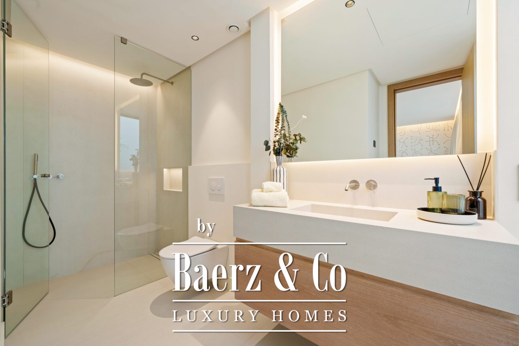 The villa’s private quarters continue the sophisticated aesthetic. Bedrooms are serene and airy, with floor-to-ceiling glass doors that open to terraces, and en-suite bathrooms that exude spa-like elegance with floating vanities, marble finishes, and freestanding tubs. The primary suite impresses with its luxurious proportions and direct access to a sunlit terrace, creating an intimate retreat within the home.