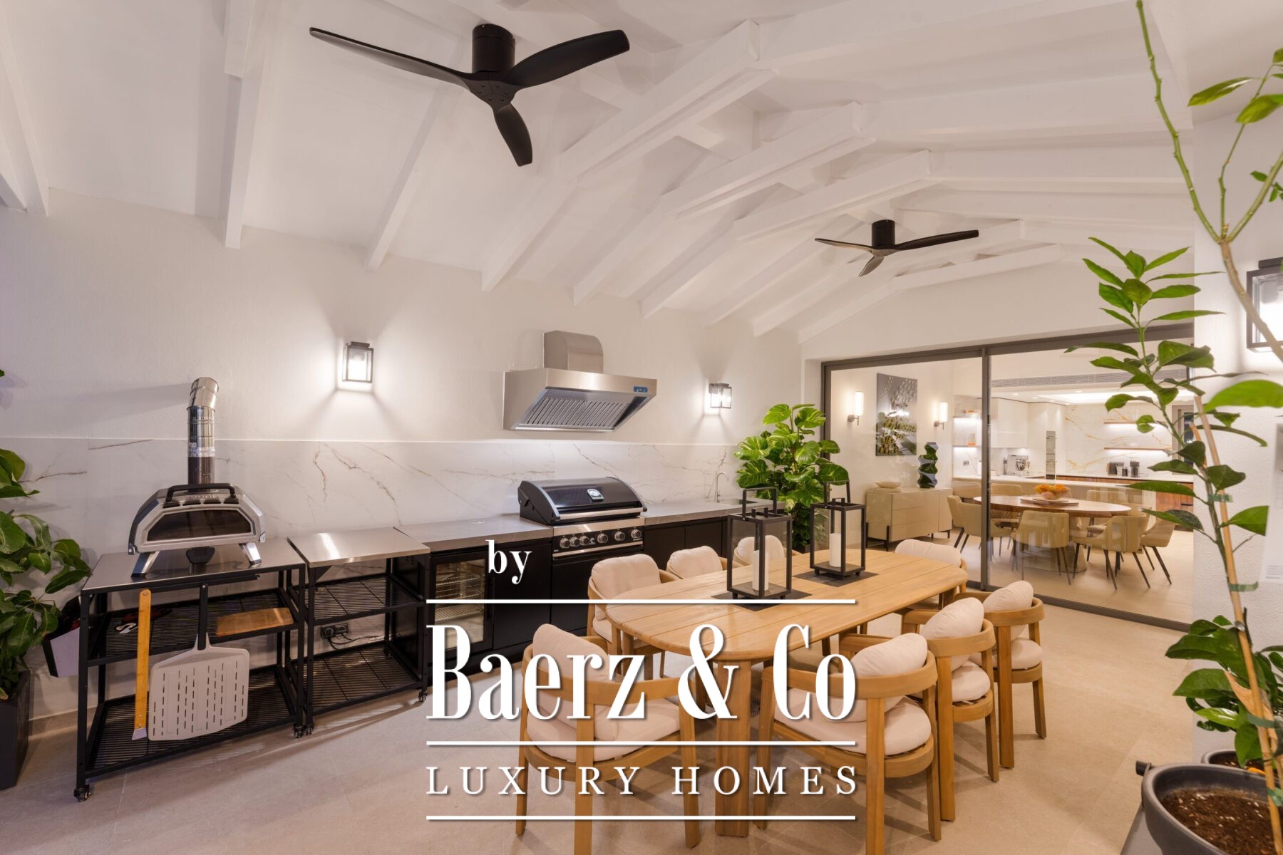Carefully landscaped grounds enclose a private, heated swimming pool and generous terraces equipped with an outdoor kitchen, dining area, and chill-out zones for timeless alfresco living. Features such as underfloor heating, zoned air conditioning, and advanced security meet the expectations of international buyers. The villa offers total privacy while maintaining proximity to top international schools, Marbella Sports & Tennis Club, and seamless AP-7 motorway connectivity.