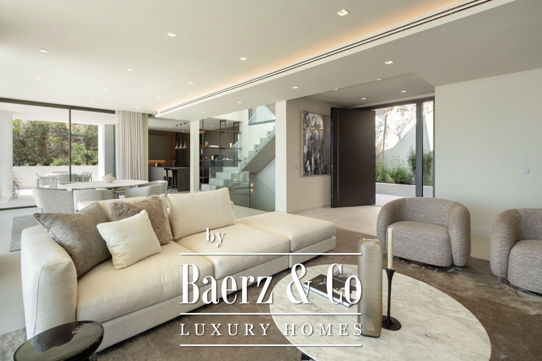 Every finish invites tactile appreciation: designer carpentry, Q-Rail glass, Hansgrohe rain showers, and custom wardrobes. Integrated technology, from high-speed Wi-Fi to smart entry and security, supports discreet modern living. Anchored minutes from Marbella, Puerto Banús, golf, and the Costa del Sol’s golden beaches, this villa is both a private refuge and a gateway to the Mediterranean’s most privileged pleasures.