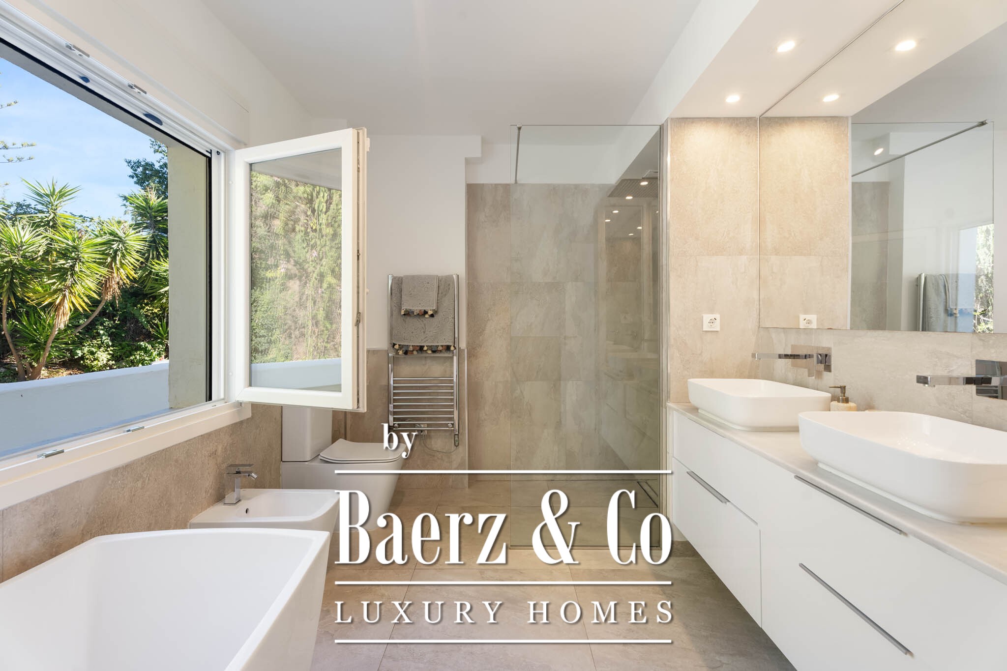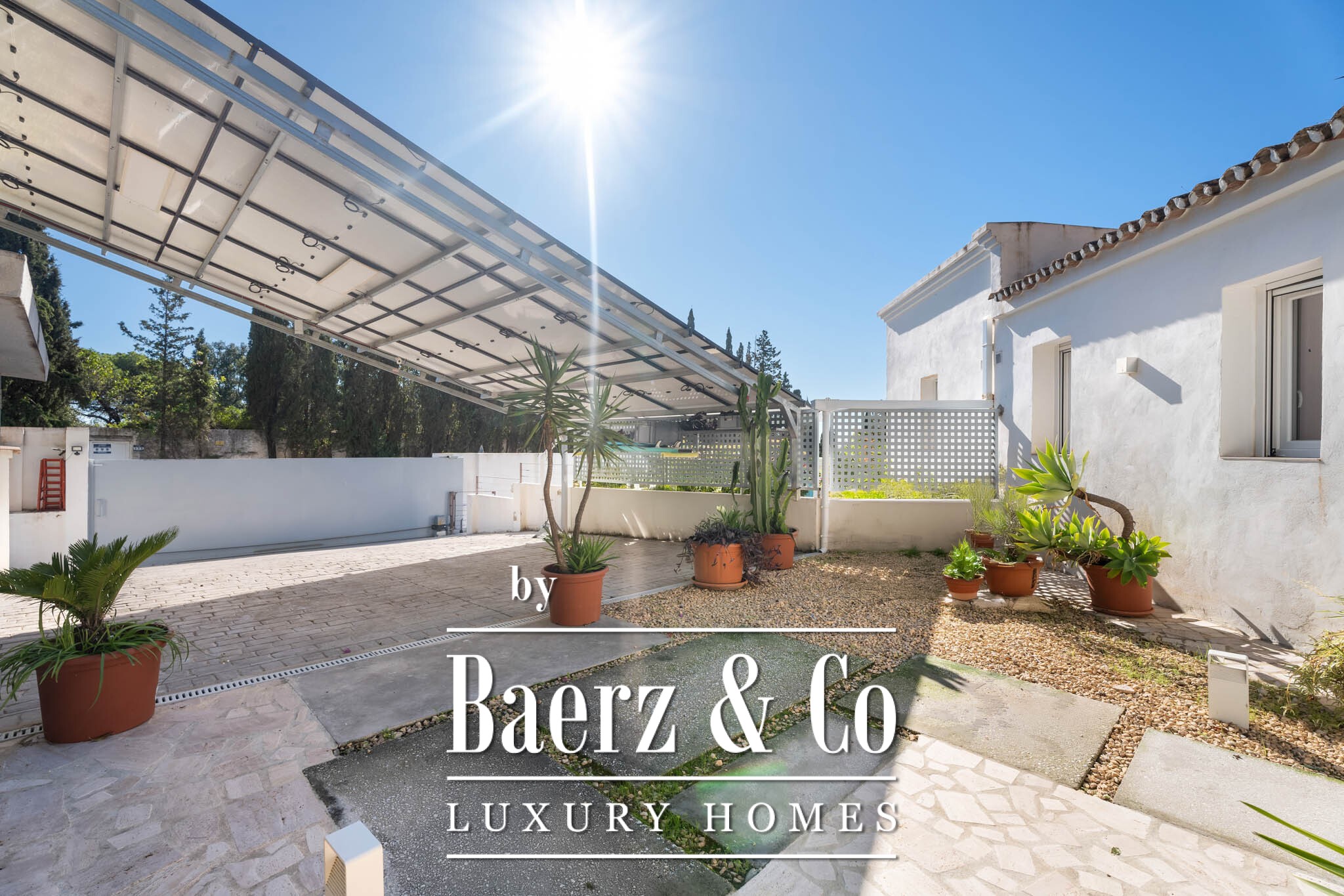 Multiple terraces, a solarium and thoughtfully landscaped grounds ensure year-round enjoyment. The villa integrates solar panels, dual car parking, air conditioning, a surround sound system and the benefit of a touristic license. A 45 m² enclosed space on the lower level serves for storage or future adaptation.