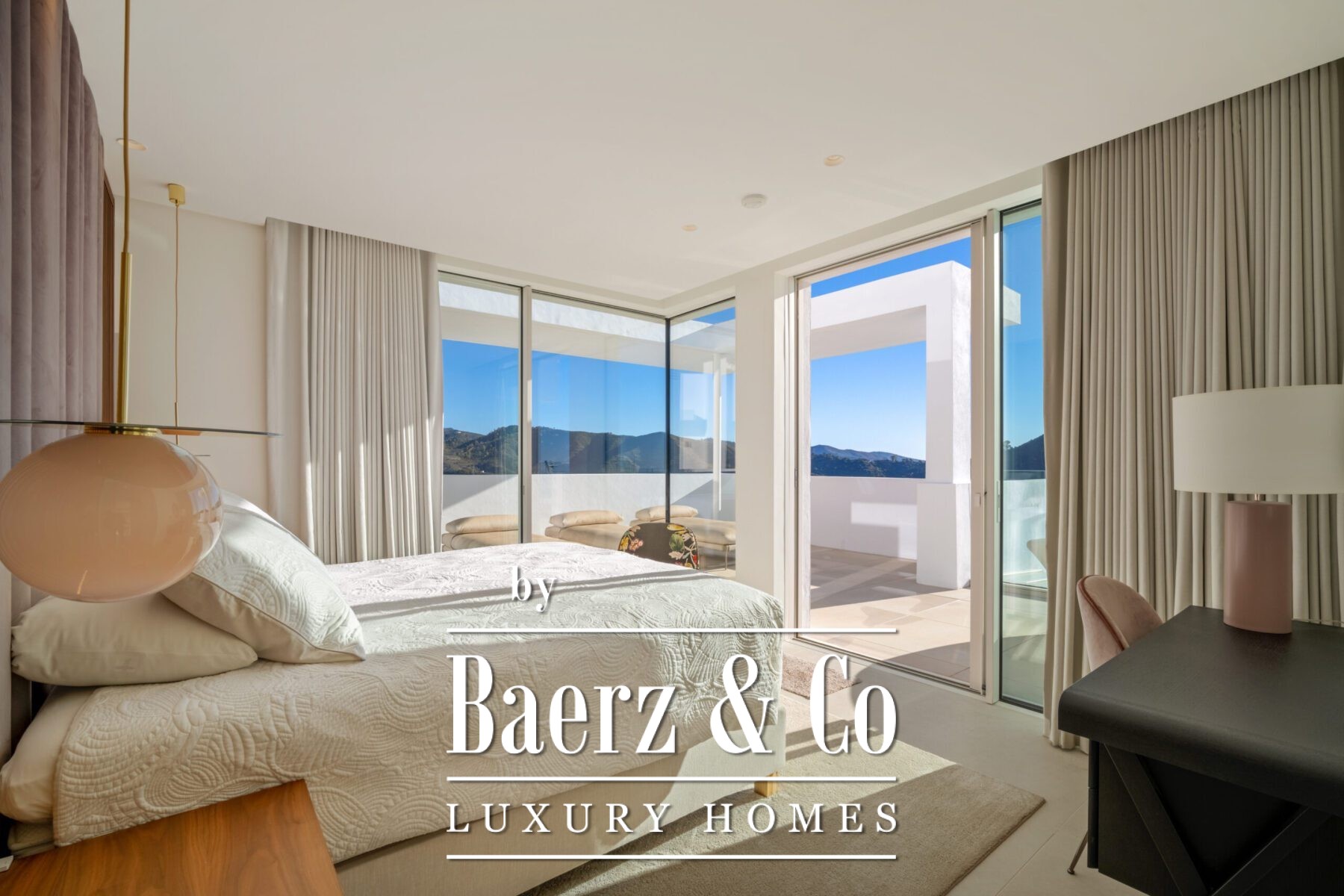 Three en-suite bedrooms, each with terrace access, are finished to the highest standards and further enhanced by a smart home demotic system and underfloor heating throughout. Additional highlights include security cameras, three underground parking spaces, and a private storage room. This property is fully furnished with designer pieces, ensuring a genuine turn-key experience for those seeking a luxury villa for sale in Marbella.