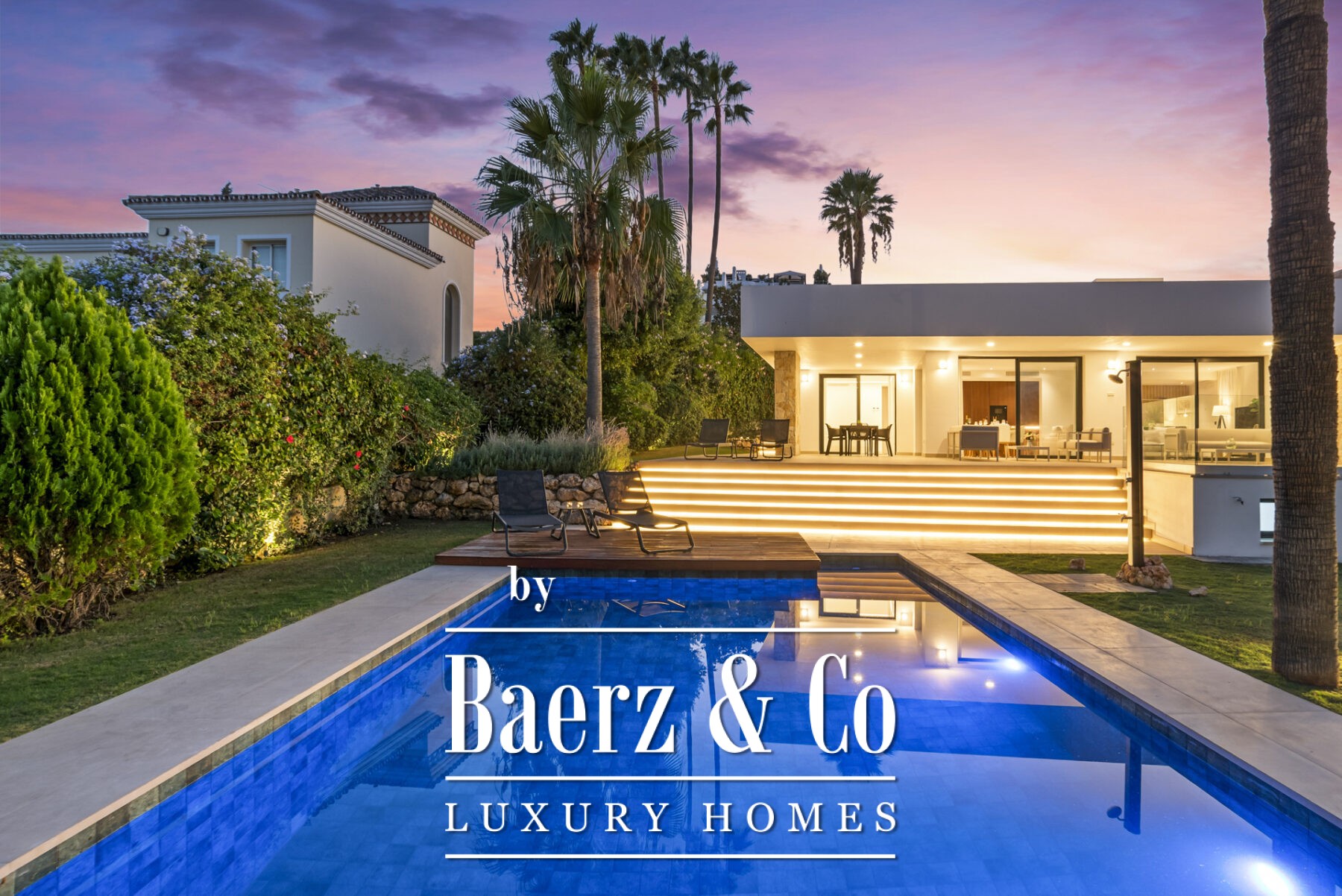 Villa Marbella with sea and mountain views welcomes you to an atmosphere of refined Mediterranean living. Ideally situated within walking distance of Guadalmina Golf Club and only minutes from the coastline, this 320 m² villa offers both seclusion and accessibility in Marbella’s coveted surroundings.