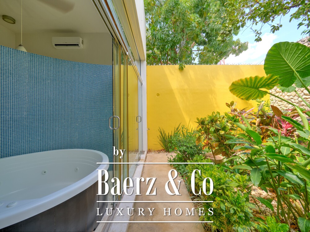 Outdoors, a filtered swimming pool with hot tub, secluded garden spaces, and an outdoor grilling area evoke an atmosphere of retreat. The roof terrace becomes a ritual space for morning coffee or quiet evenings beneath Mayan skies. Sustainability is integrated with solar panels and energy-efficient systems, while the home is delivered completely furnished for immediate enjoyment. Villa Merida offers understated luxury, where every day is shaped by proximity to the city’s cultural pulse and tranquil private space.