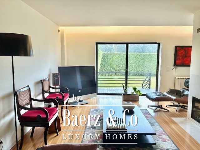 Twin villa Miramar Vila Nova de Gaia offers an atmosphere of considered elegance, set on an 825m² plot in a discreet residential enclave. The villa extends across 341m², forming a refined base from which to enjoy the sought-after rhythm of Miramar, just steps from the beach and the Miramar Golf Club. The main floor opens with a spacious entrance hall and flows to a sequence of interconnected reception areas: a living room and dining room divided by a fireplace, a fully equipped kitchen where Miele appliances rest against Corian countertops, and four bedrooms including two suites and a guest bathroom. The living spaces open directly to a 35m² terrace and a private 350m² garden, offering both shade and light, with scope for a pool addition.