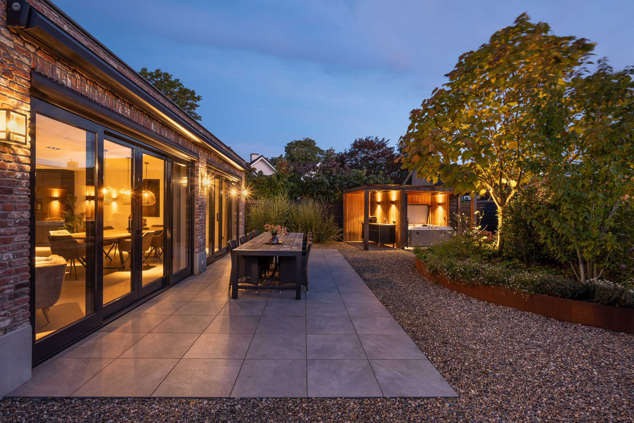 - Architecturally designed garden with jacuzzi and covered outdoor kitchen