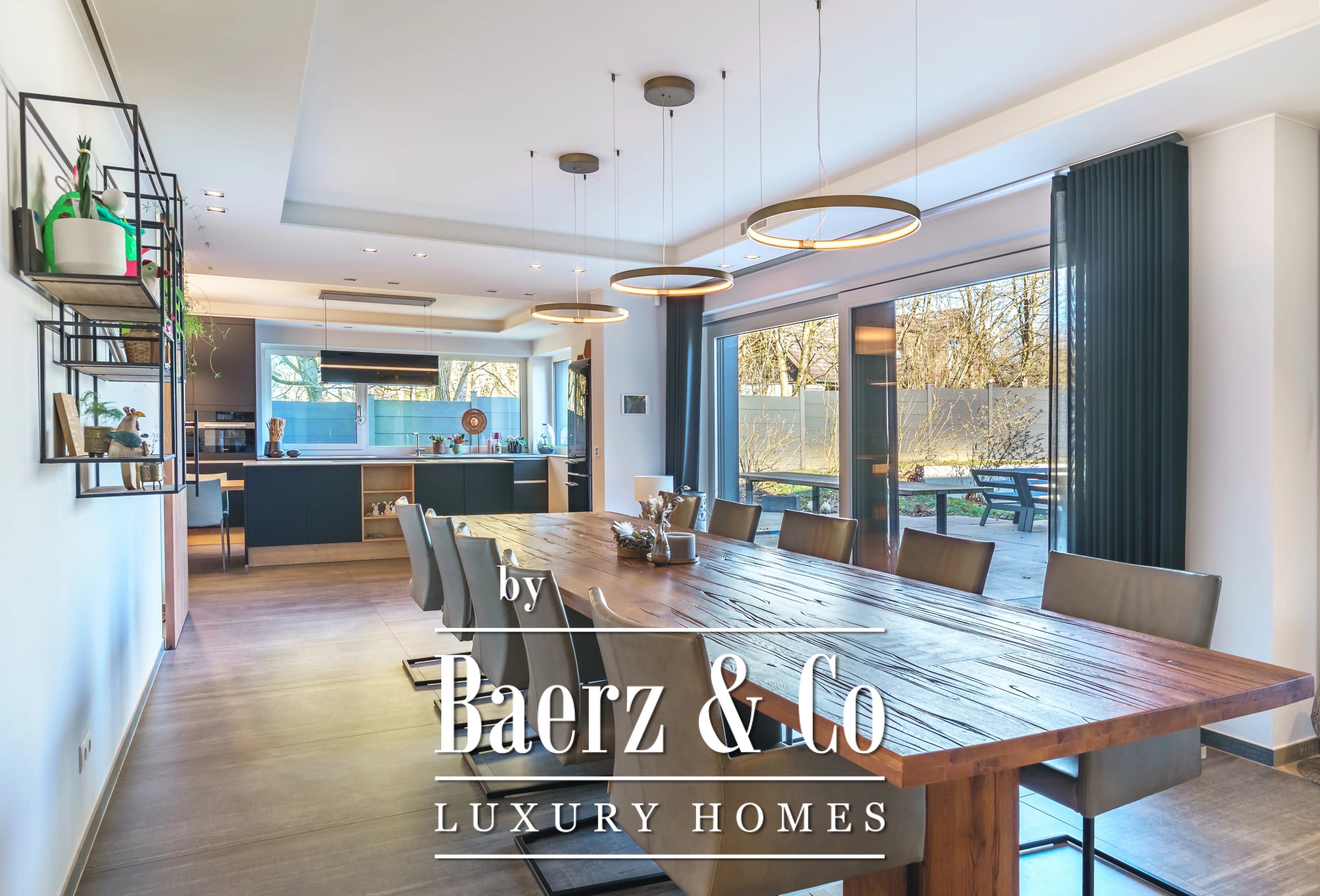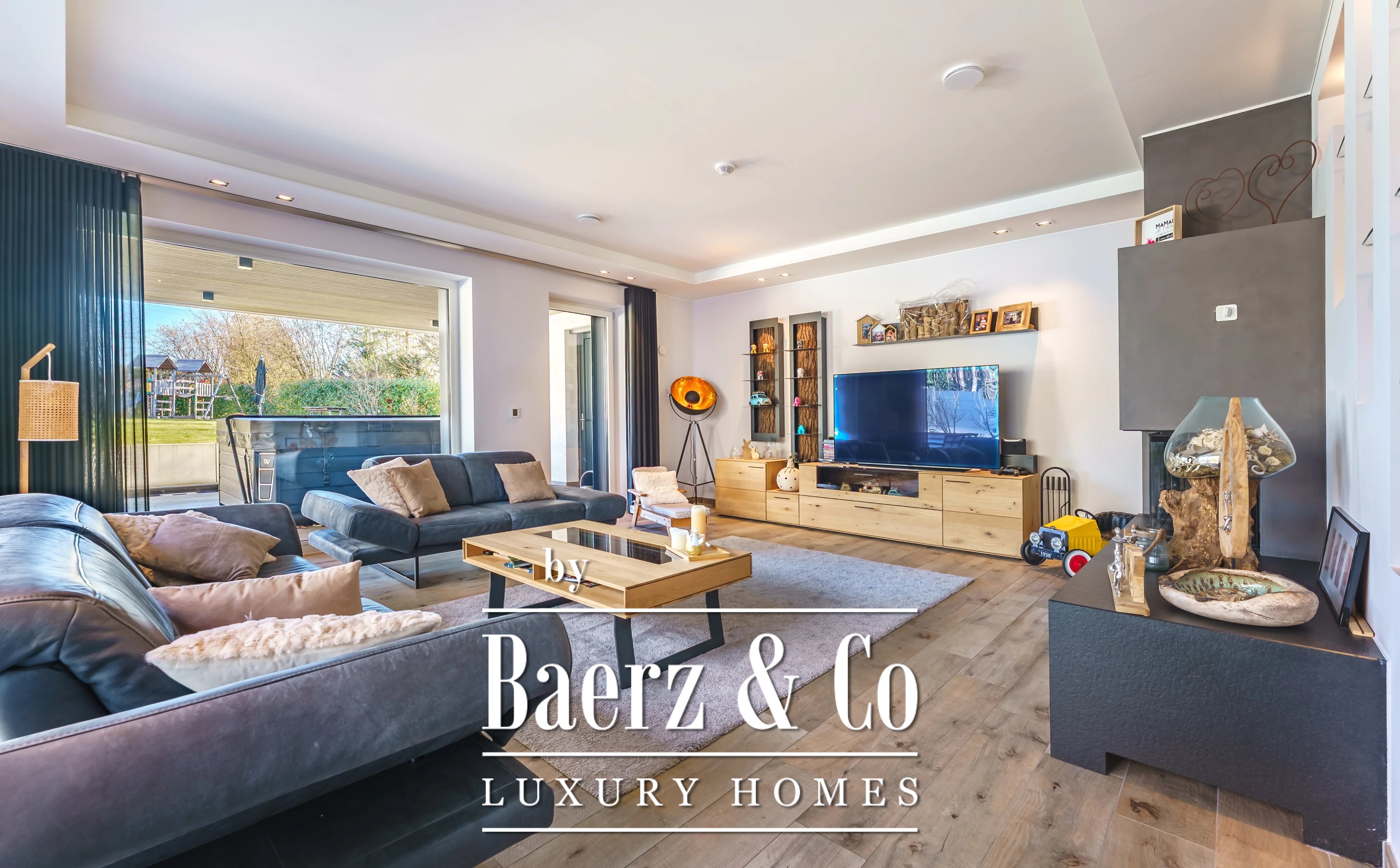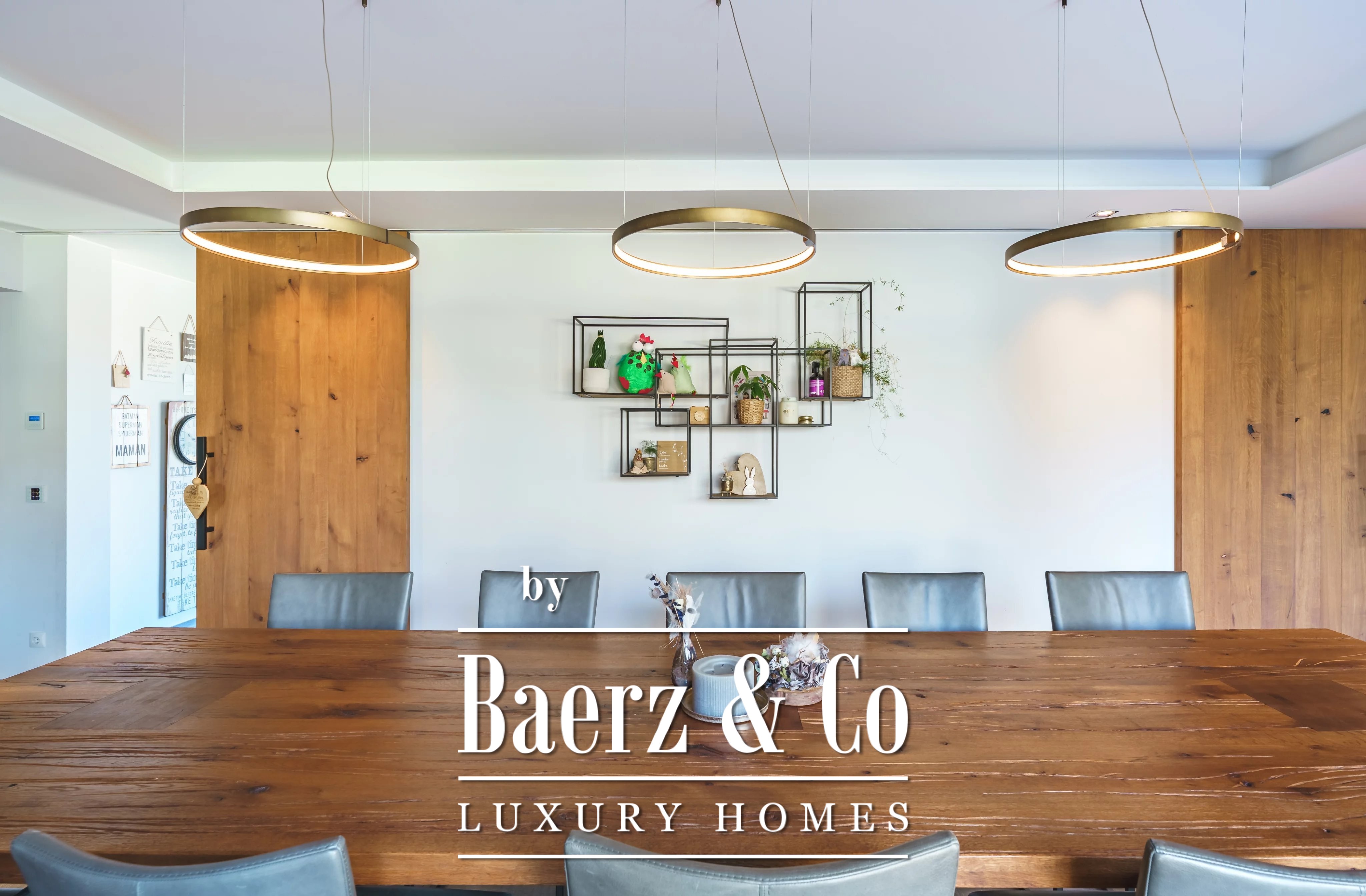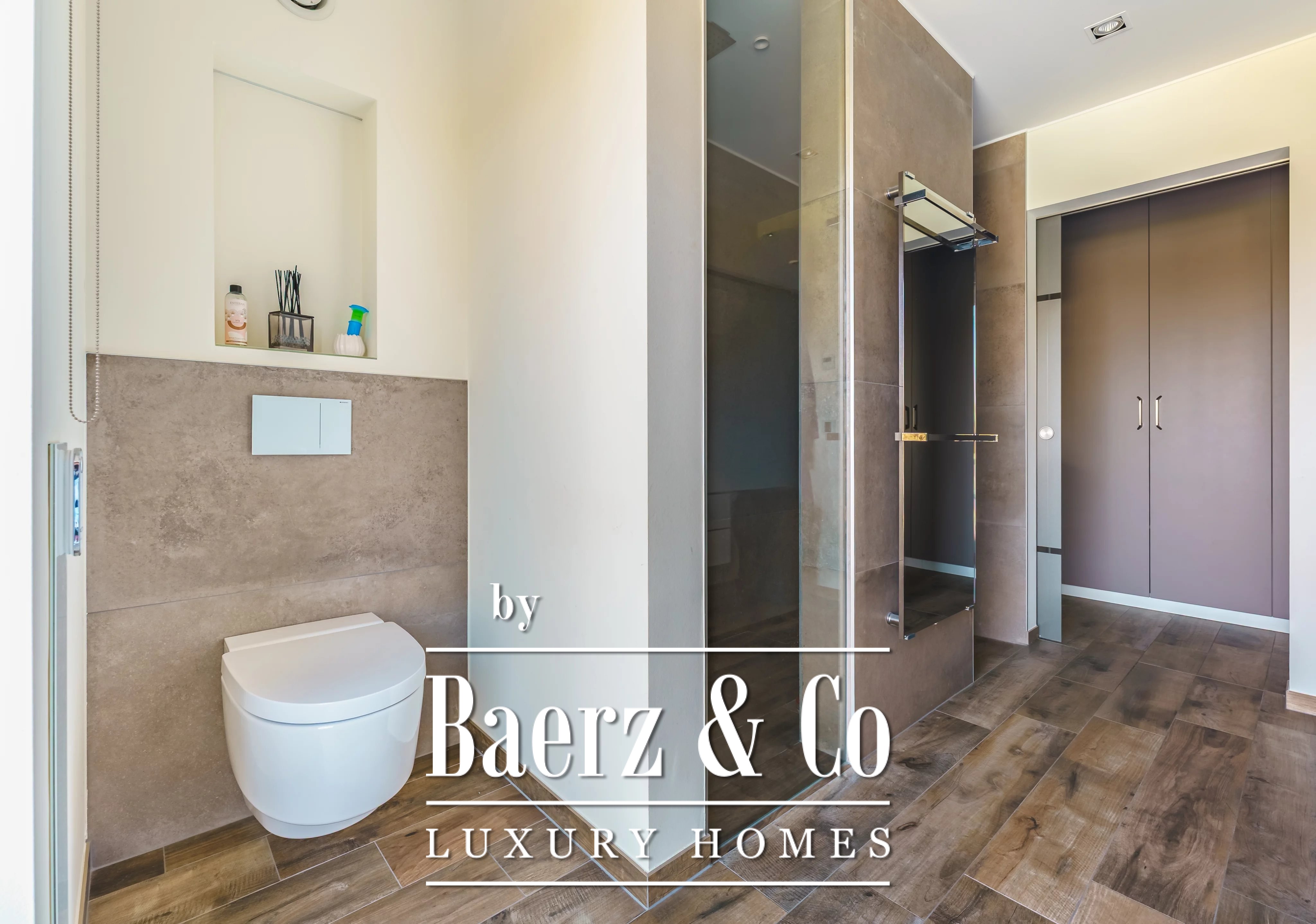 Upstairs, an additional living room creates a private retreat for family gatherings. There are five bedrooms and four bathrooms, including a master suite with a dressing room, private shower room, and a guest bedroom with en-suite. The laundry room is discreet and efficient, supporting daily comfort.