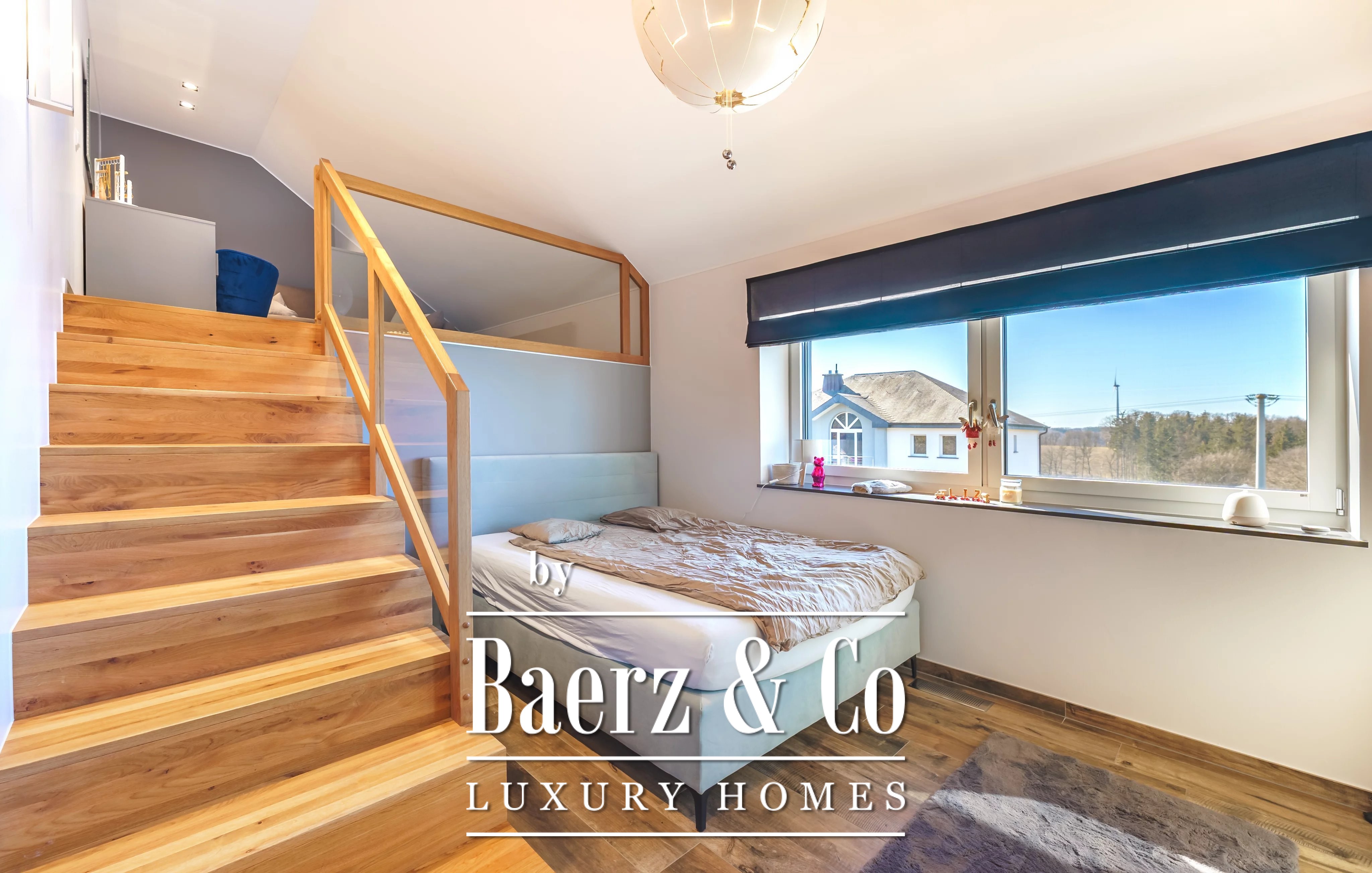 The wellness area is both distinctive and serene, featuring sauna, Jacuzzi, and shower on a covered terrace, suited for all seasons. The home’s systems are forward-thinking, with a KNX home automation system, triple-glazed windows, geothermal and photovoltaic energy, solar hot water, security, and preparation for a future lift. This luxury house for sale in Nocher-Route offers a rare balance of contemporary technology and pastoral calm, set against far-reaching country views.