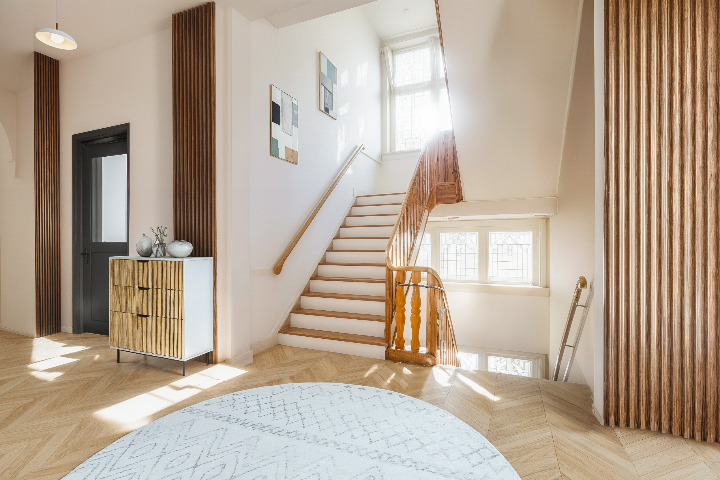 Op de Veluwe, omringd door weelderig groen en oude bomen, staat het Boschhuis: een voormalig sanatorium uit 1925, recentelijk getransformeerd in zeven exclusieve bosvilla’s. De geliefde vooroorlogse bouwstijl, met zijn kenmerkende symmetrie, grote overstekken en monumentale gevels, is zorgvuldig behouden en gerestaureerd.