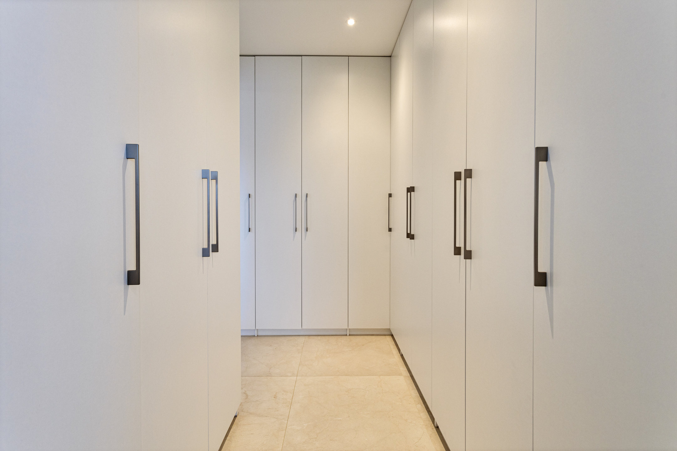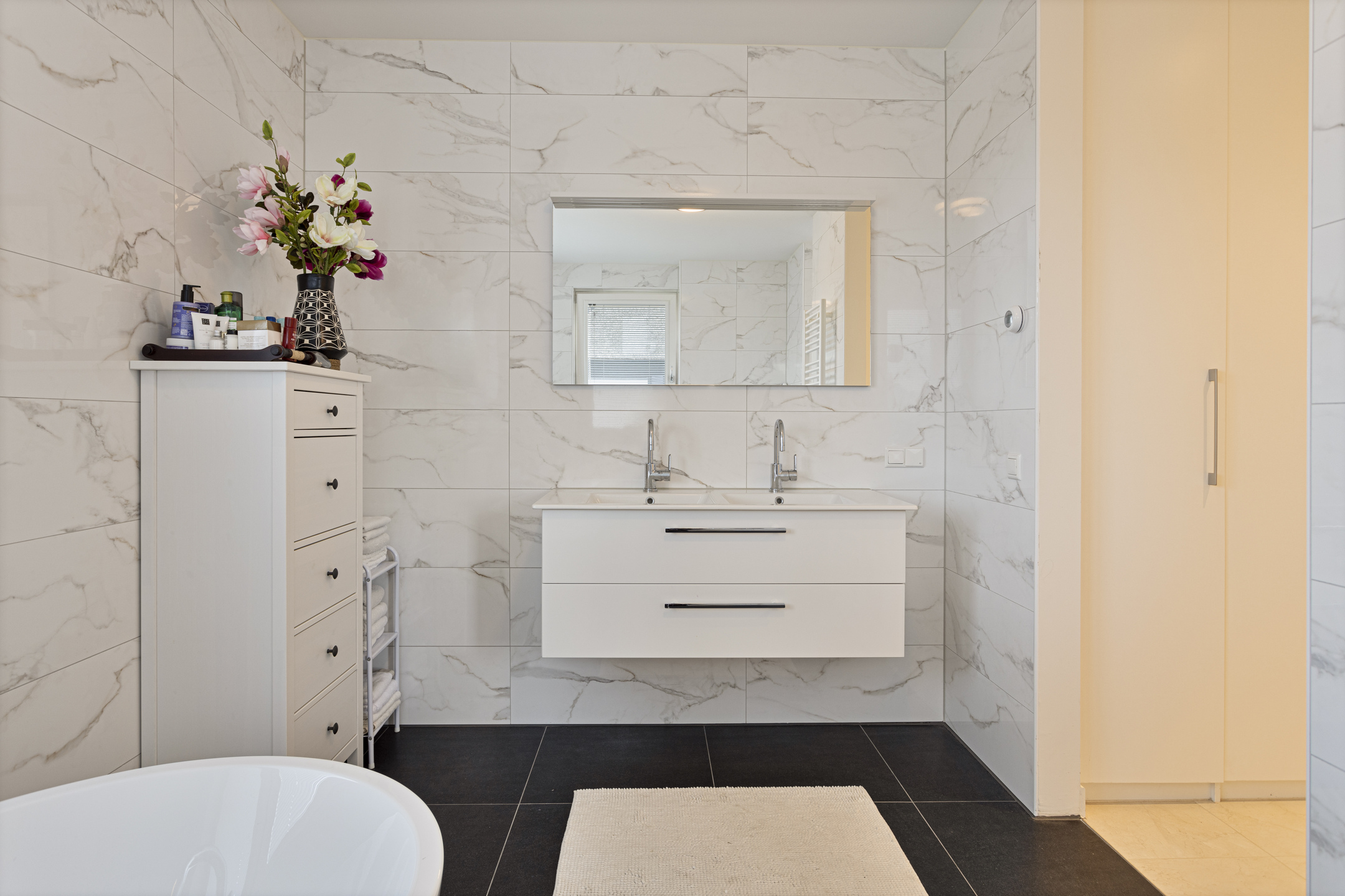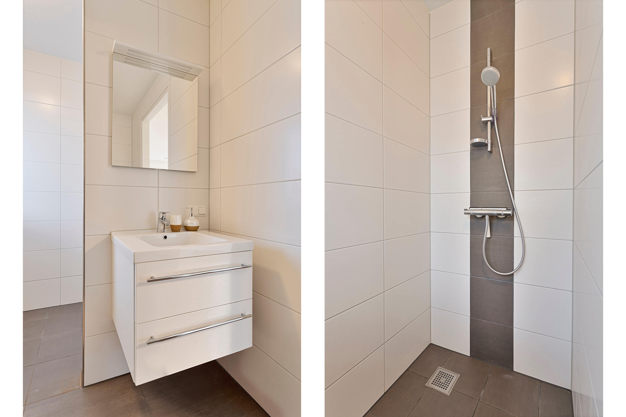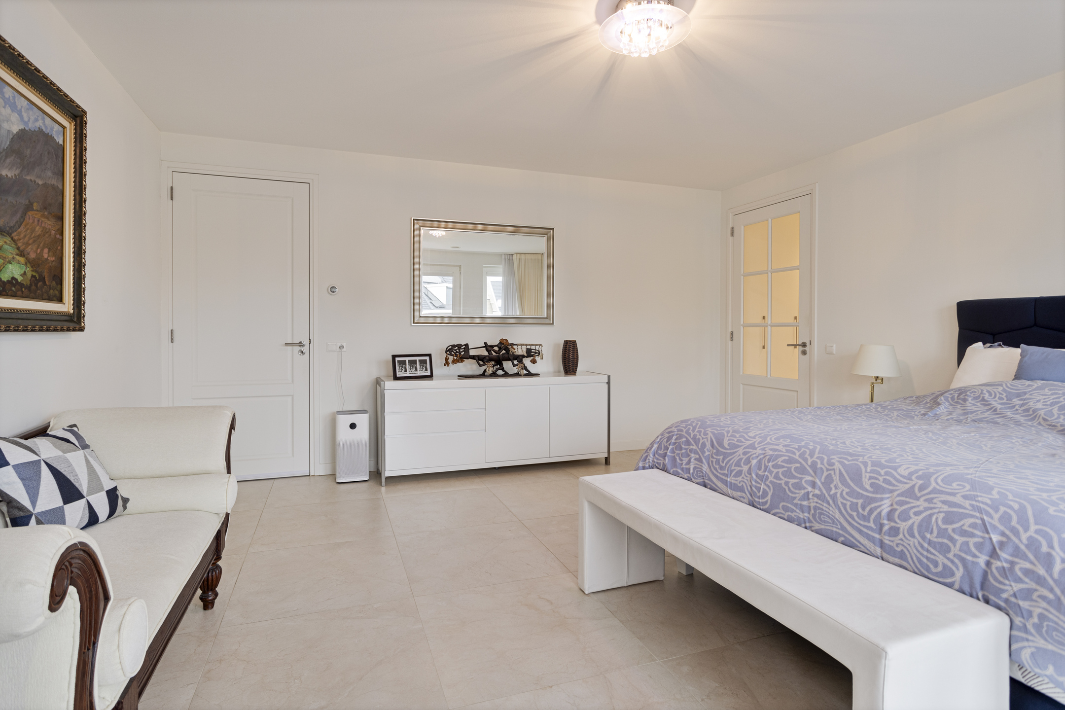 Spacious landing with separate laundry room and technical room. You will also find 4 very spacious bedrooms on this floor. The master bedroom has a very spacious walk-in wardrobe with custom-made cupboards and behind it a luxurious ensuite bathroom with bath, shower, double sink and toilet. One of the other bedrooms also has an ensuite bathroom (with shower, sink and toilet). The other two bedrooms share a beautiful spacious (3rd!) bathroom with shower, double sink and toilet. A hatch on the landing gives access to a very spacious storage attic.