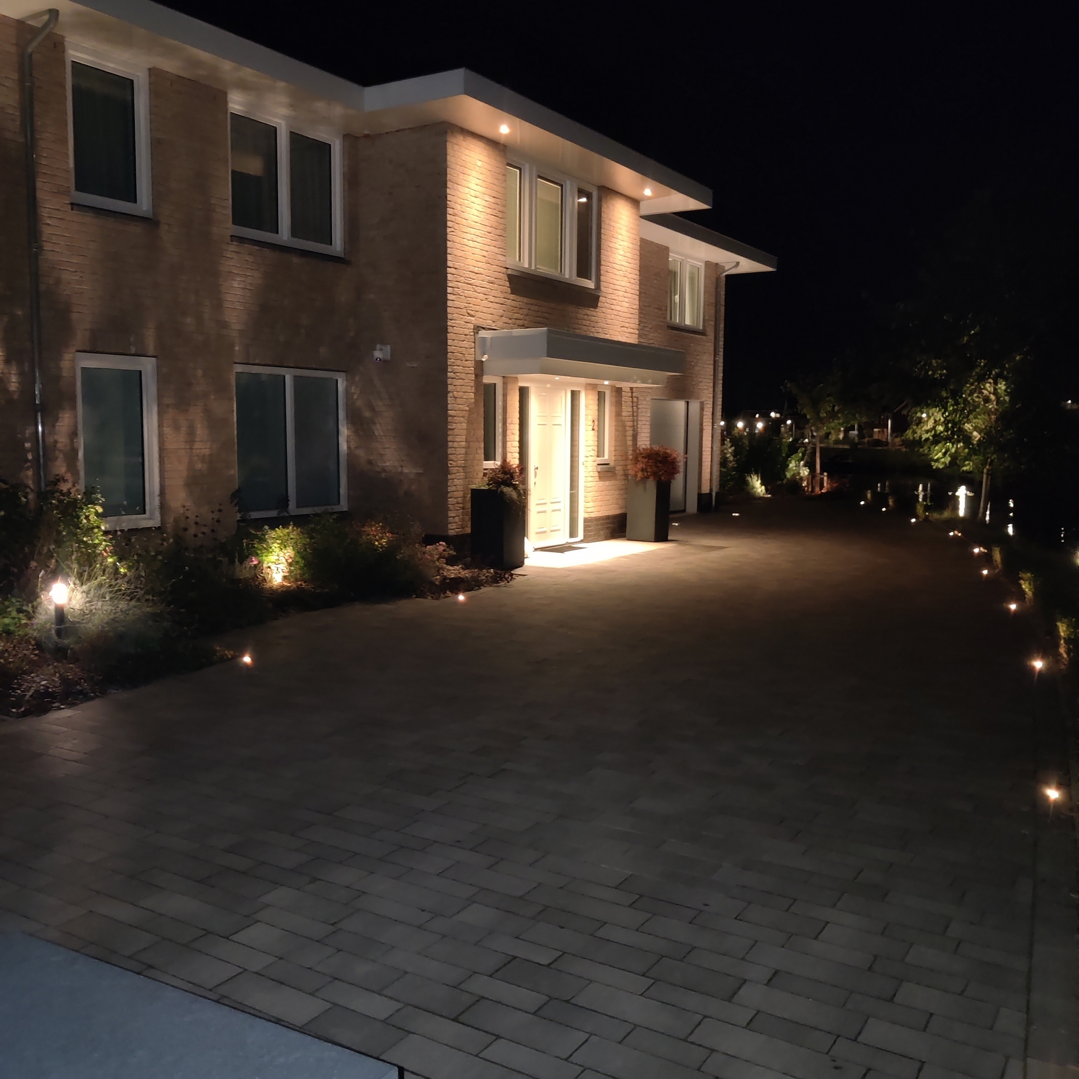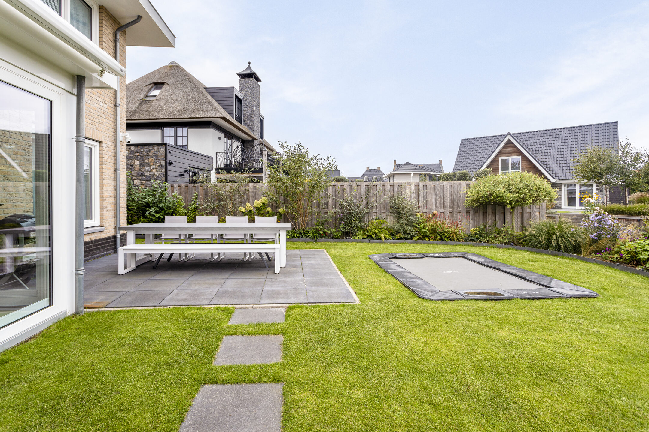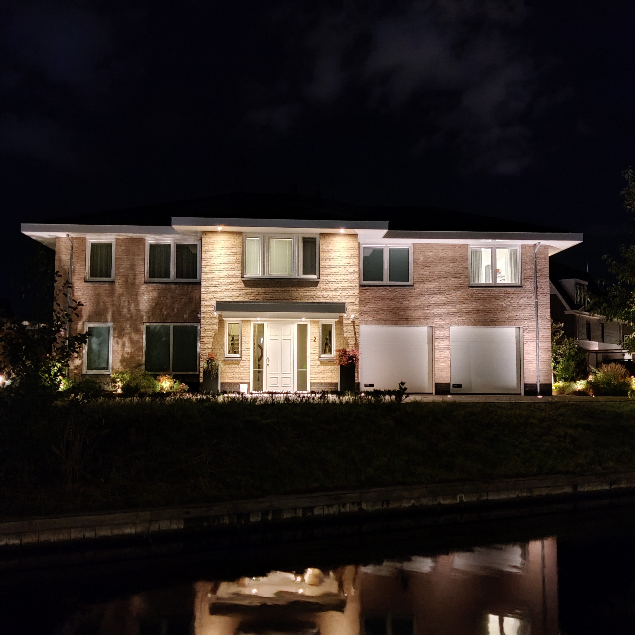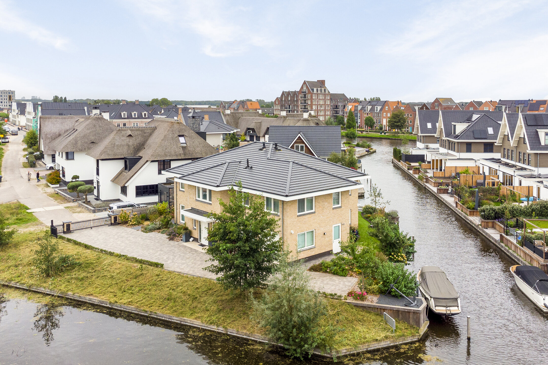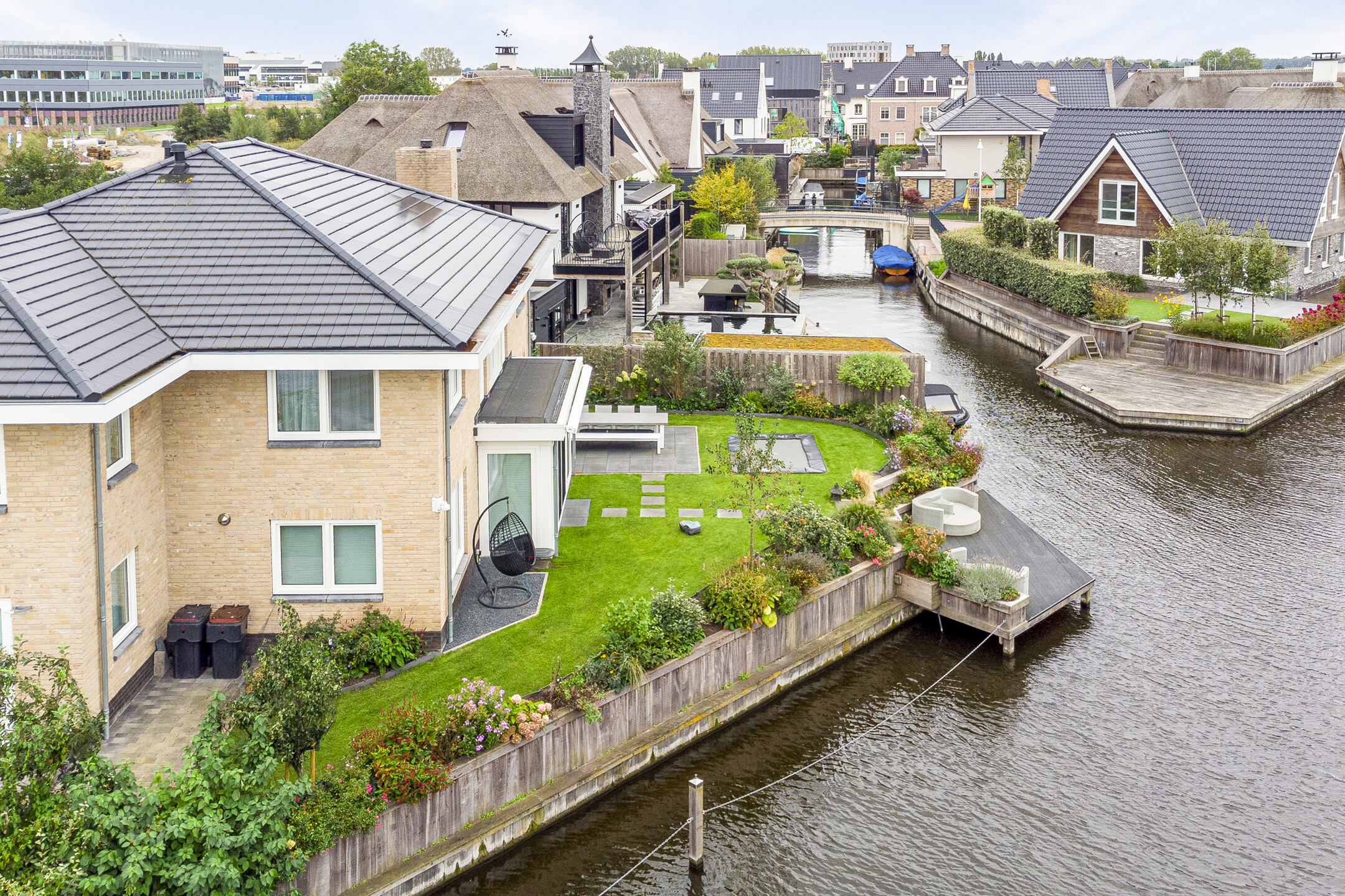 Walking up to the house, you will immediately notice the very spacious driveway with an electrically operated driveway gate. At the end of the driveway there is a double indoor garage. Next to the house is the wooden shed, which can be useful to store bicycles. The backyard is beautifully landscaped and has a spacious terrace directly adjacent to the house and a large 'deck' on the water. On the long side of the garden there are several mooring places for boats, one of which is equipped with a boat lift.