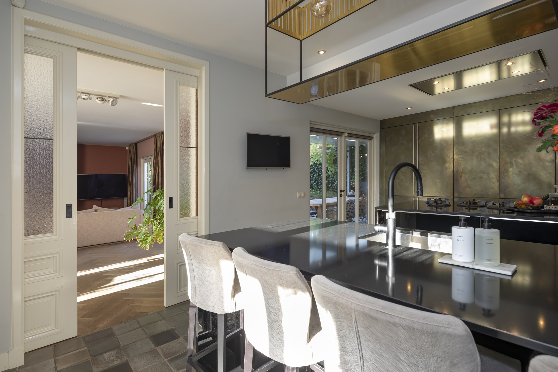 Houd je van koken én van gezelligheid? Dan past deze keuken perfect bij jou. Terwijl je namelijk aan het koken bent, kun je ondertussen ook gezellig borrelen met je vrienden die bij je in de keuken aanschuiven. Je zult zien, bij feestjes is het hier altijd ’n geliefde plek. De luxueuze keuken is voorzien van diverse inbouwapparatuur van Miele waaronder een stoomoven, een oven, een vaatwasser, een koelkast met ice crusher, een vriezer, een 5-pits gaskookplaat en een Quooker.