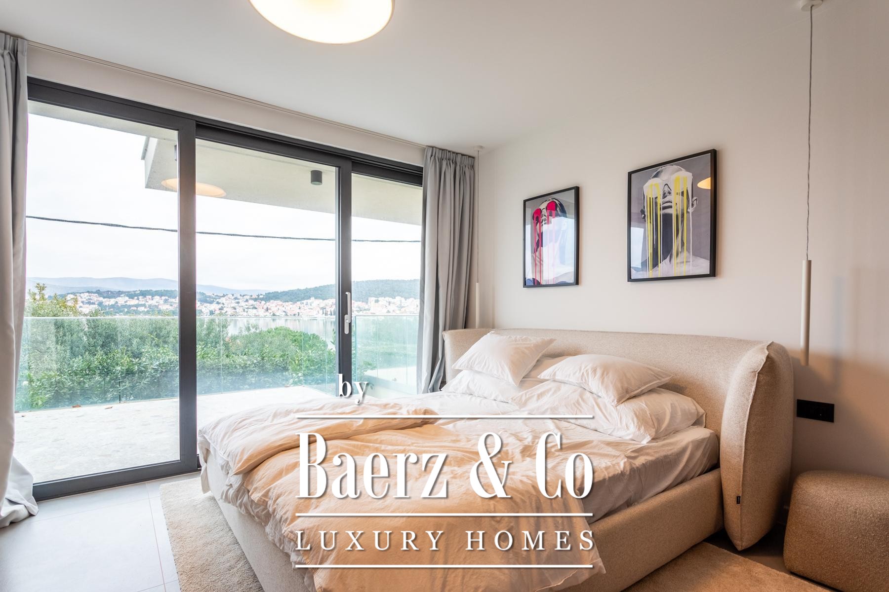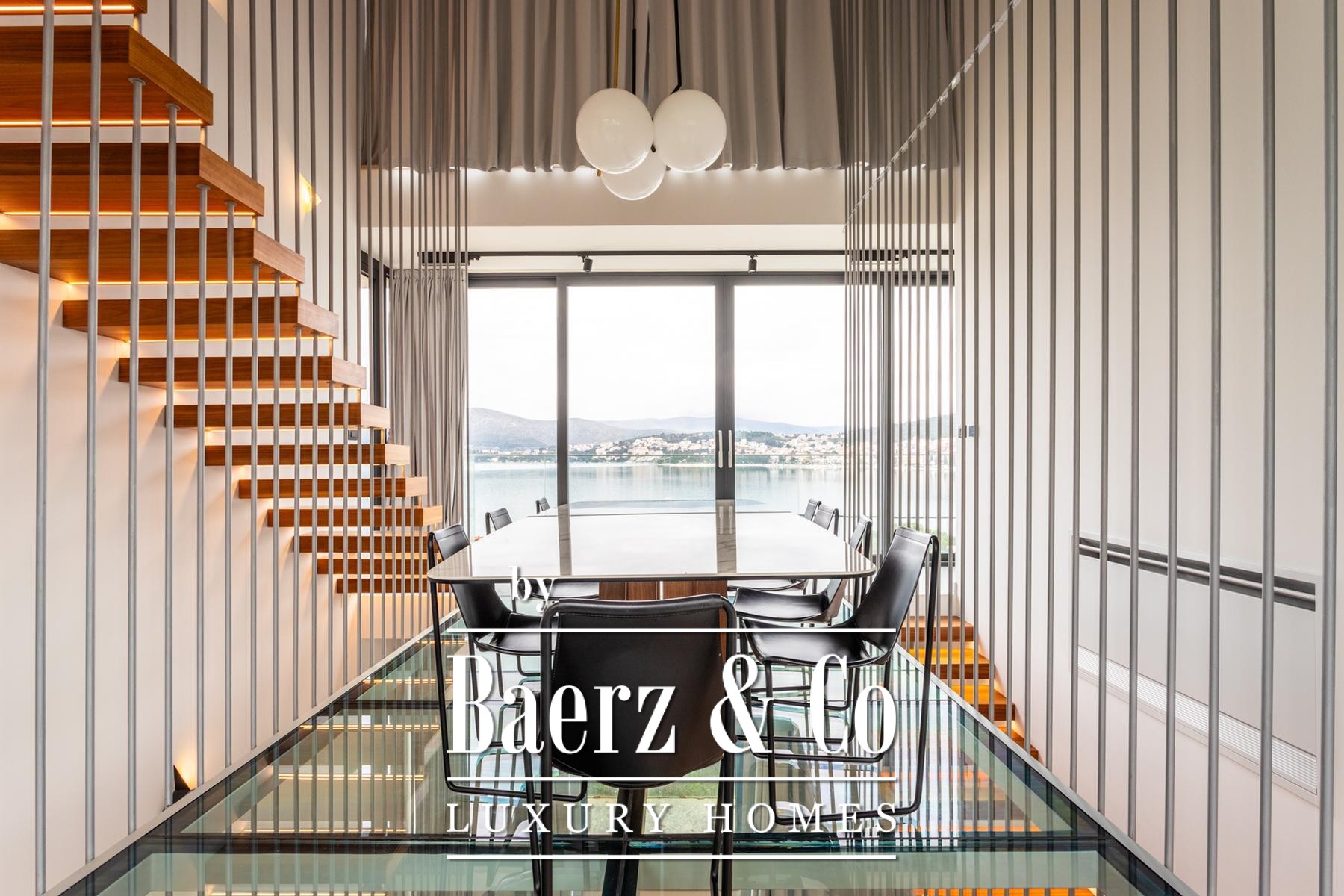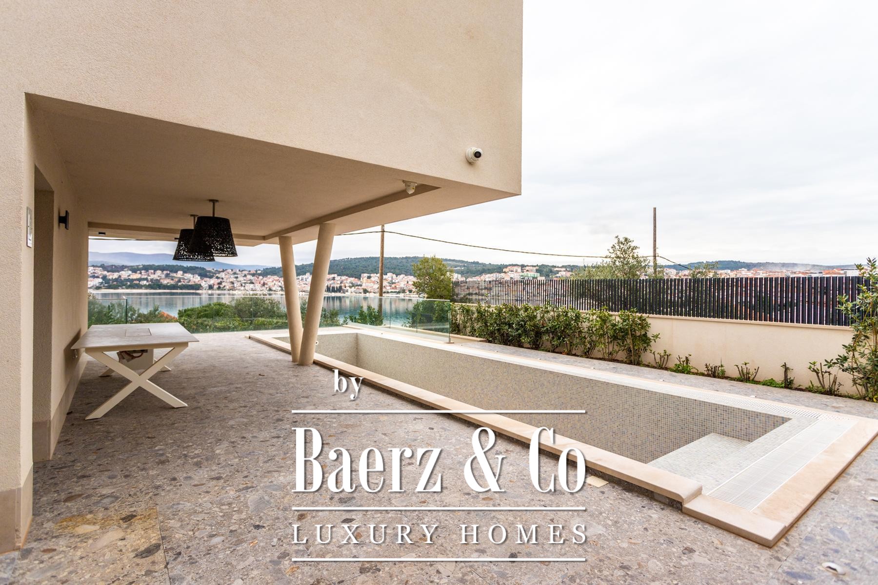 Villa Okrug with panoramic view stands just fifty meters from the pebble beach, offering both serenity and elegant living in Croatia. This modern villa features 400 m² of curated space and sits on a 470 m² plot, with architecture that embraces light, openness, and continuous flow.