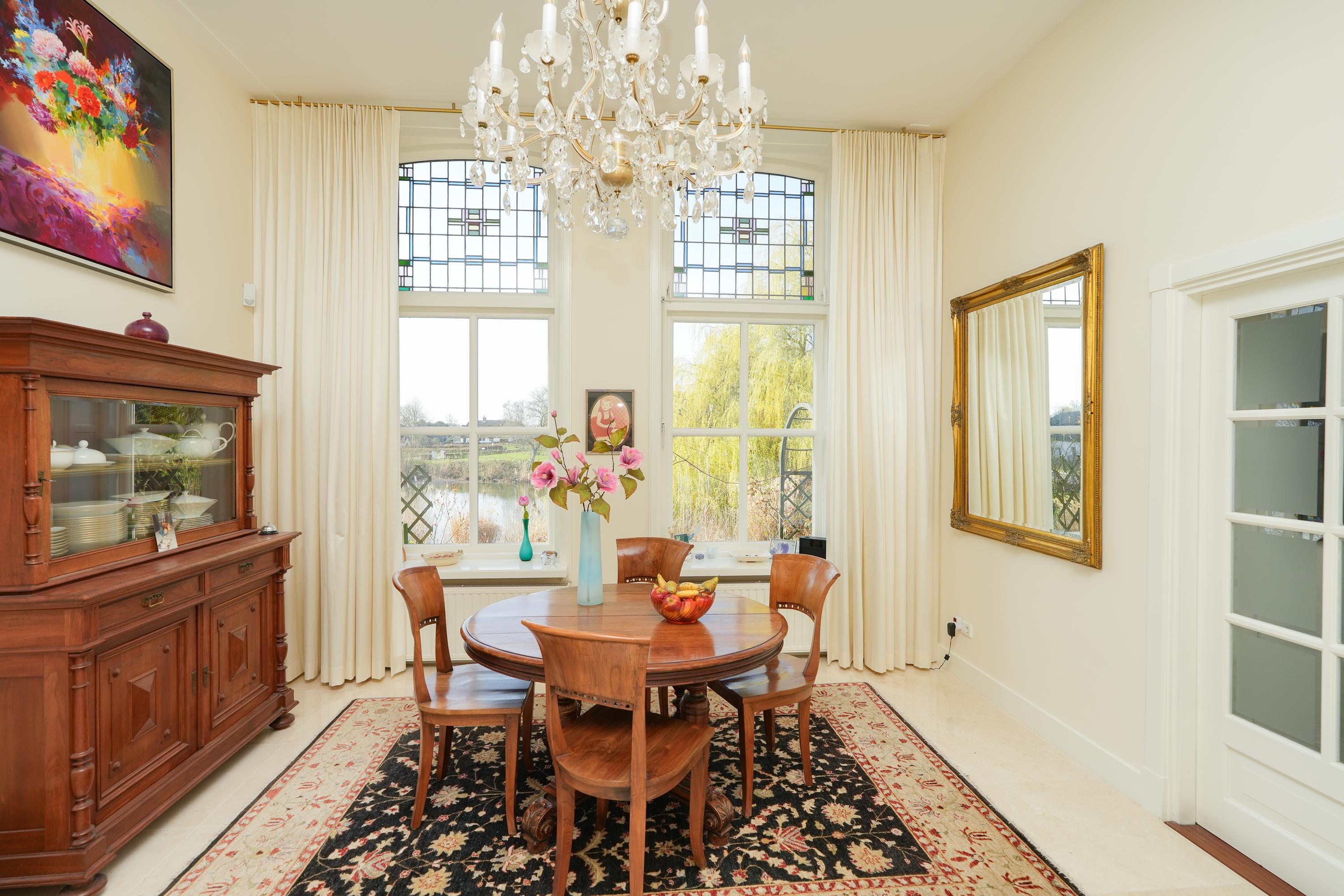 Historic house Ooij is positioned high on an old river mound beside a picturesque kolk in the rural outskirts of Ooij. Built in 1875 as a rectory and now recognized as a municipal monument, this residence has been sensitively renovated, seamlessly marrying original character with contemporary refinement. The home comprises two full floors and a spacious historical cellar, while a generous atelier extension welcomes light and sweeping views of the garden and surrounding meadows.