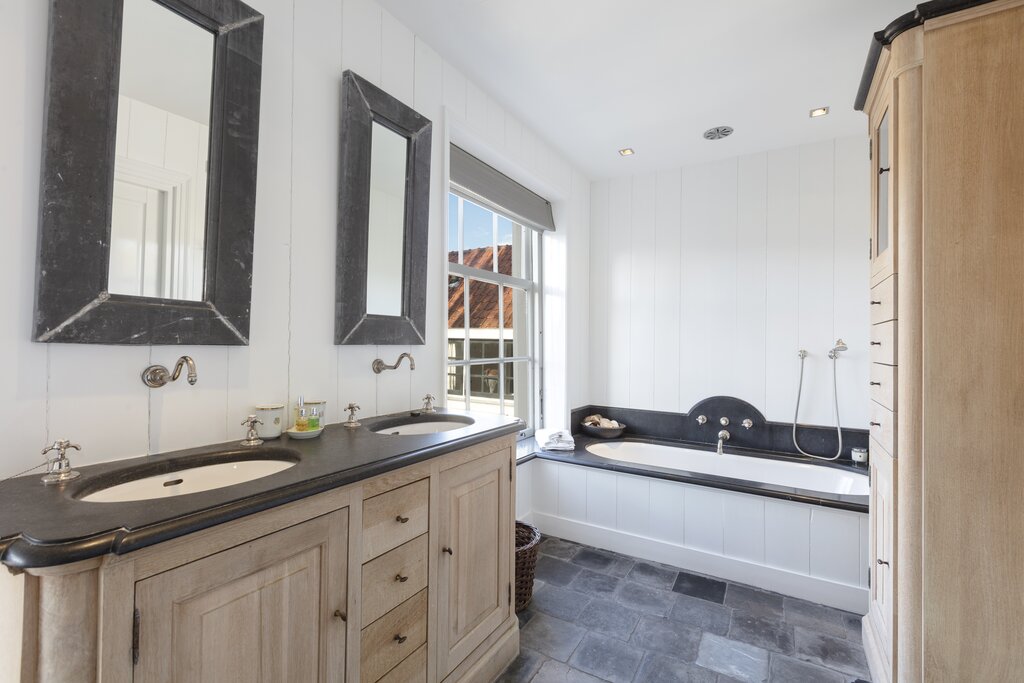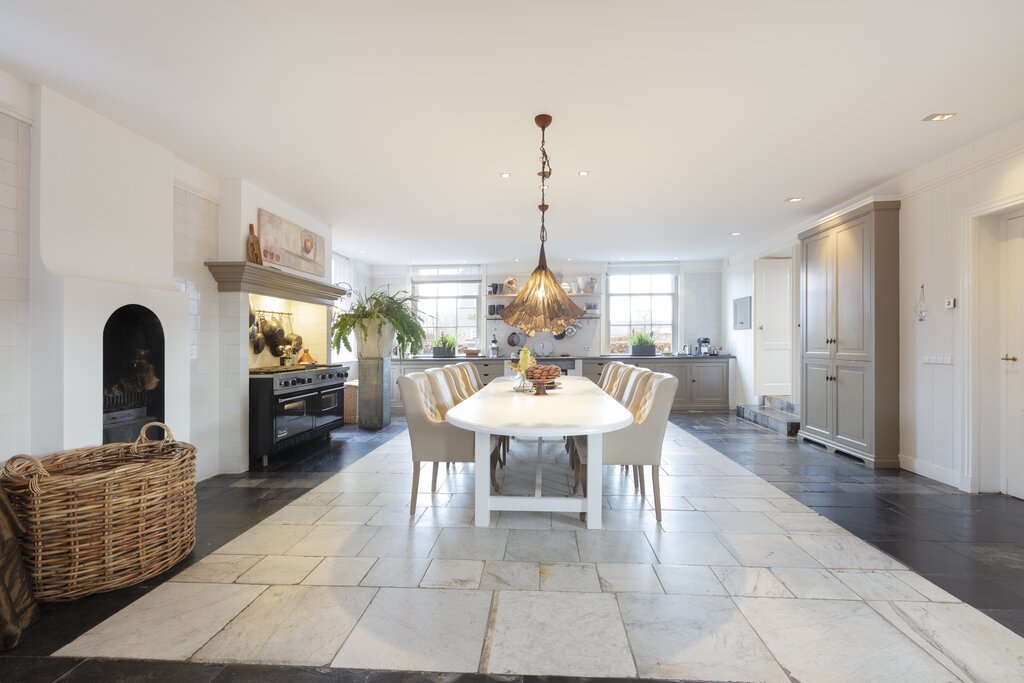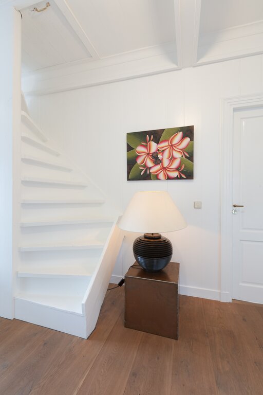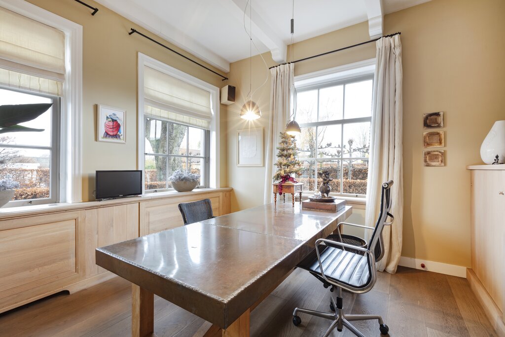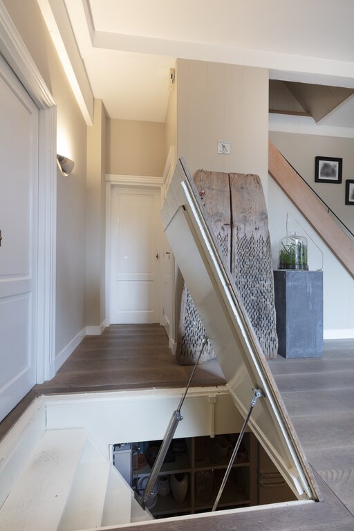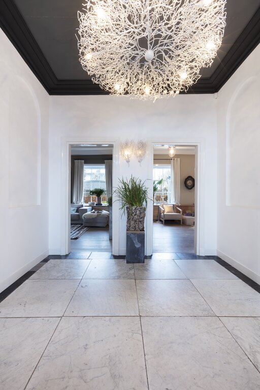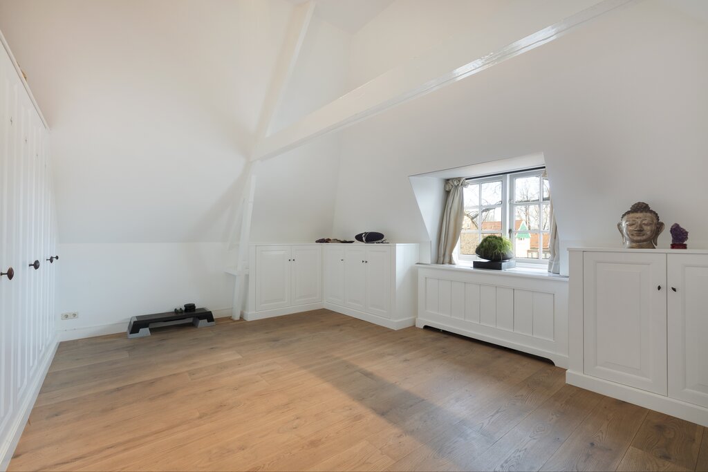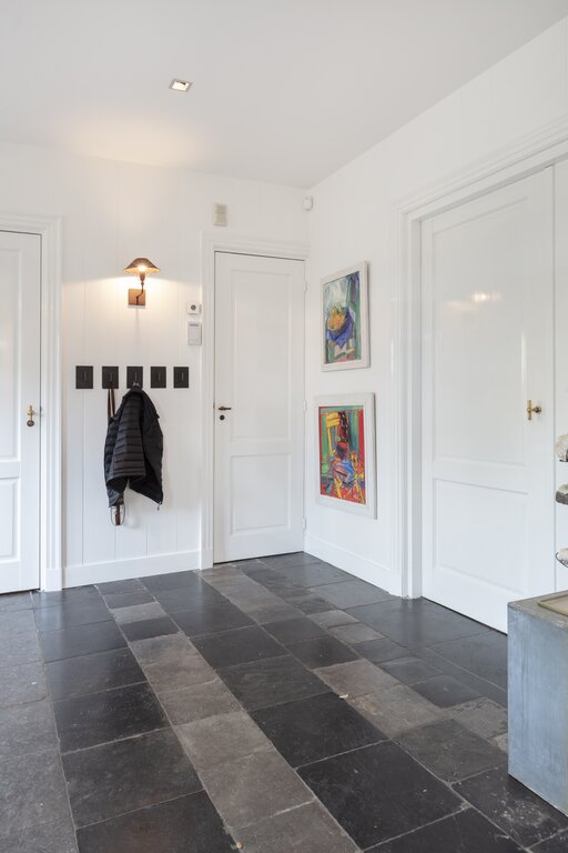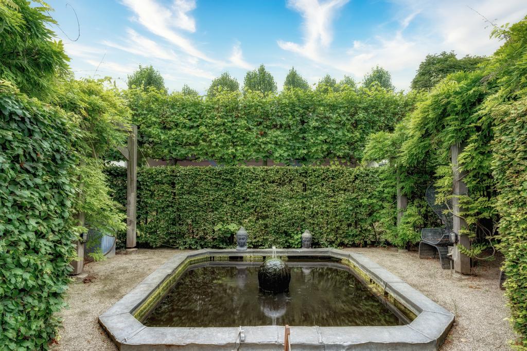The orphanage is a detached classic mansion. Instantly recognizable by the high gutter line. Inside, the high ceilings immediately come into view. Around the mansion lies the garden to the hand of Marcel Woltering. Tight beech hedge lines, forms the base around some garden rooms. A few old trees, give character to the design. You will also find a wooden deck for a boat and the carport with double barn/garage. Several cars you can park with ease, completely out of sight. The smart garden design certainly takes into account the privacy aspect. The long driveway on the South side of the plot, is closed with an electrically operated wooden gate.