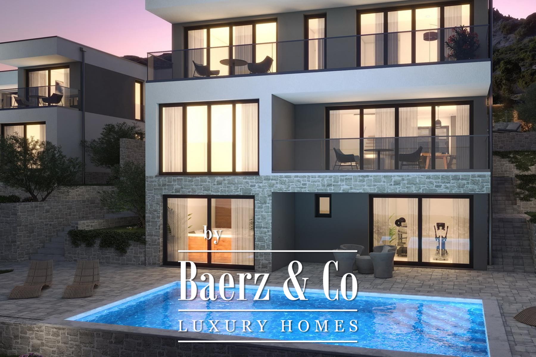 a private parking space.The project will start at the end of 2026.The villa offers a beautiful view of the sea and the coast and the island of Korčula. The facility will be surrounded by a private garden with palm trees and Mediterranean plants that guarantees absolute privacy! An additional advantage of each of these properties will be a Dalmatian stone grill. The house will be built from the highest quality materials, and the villa will be connected to an intelligent system that can be controlled by all modern mobile phones.We are available for all inquiries.