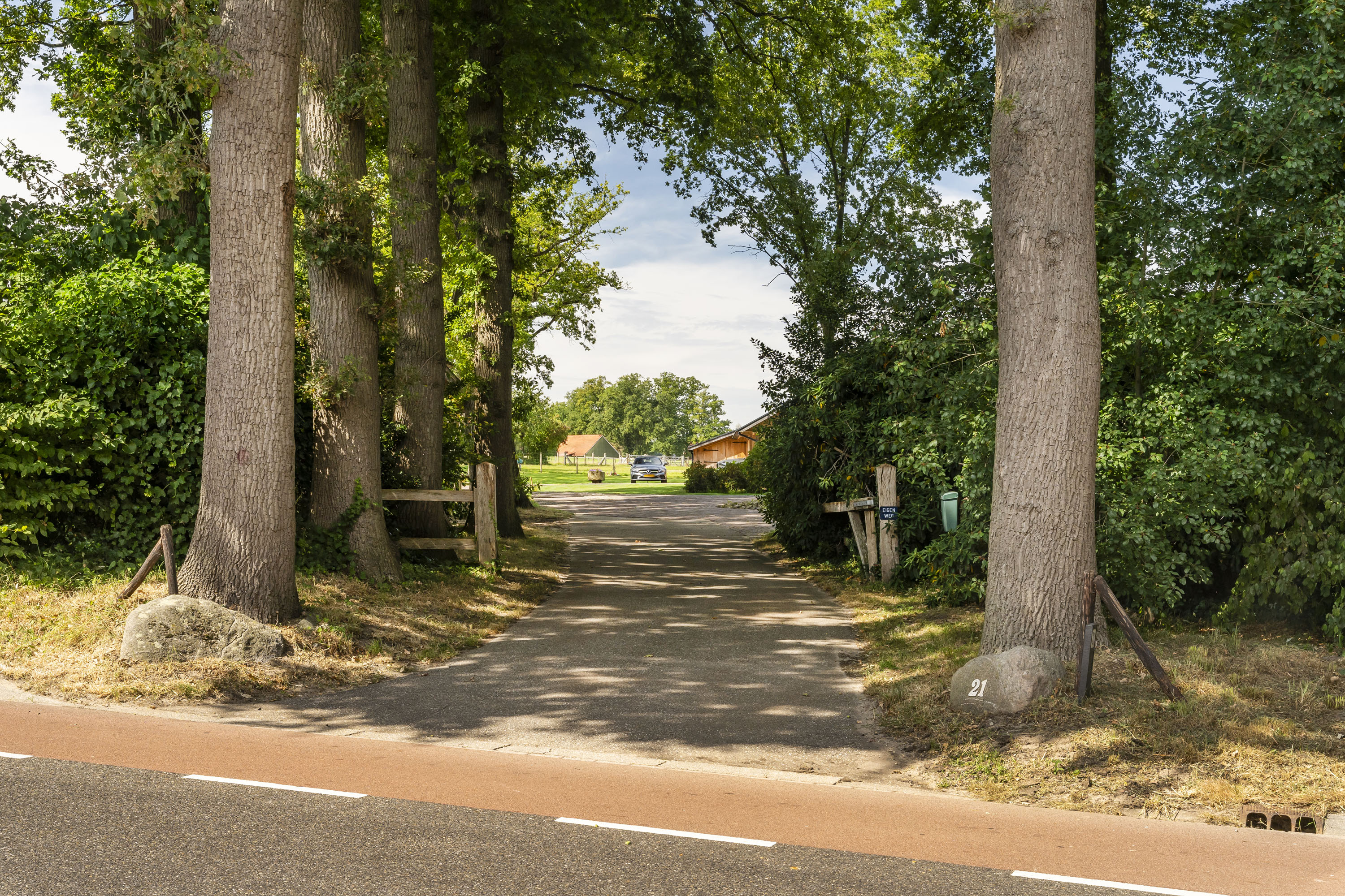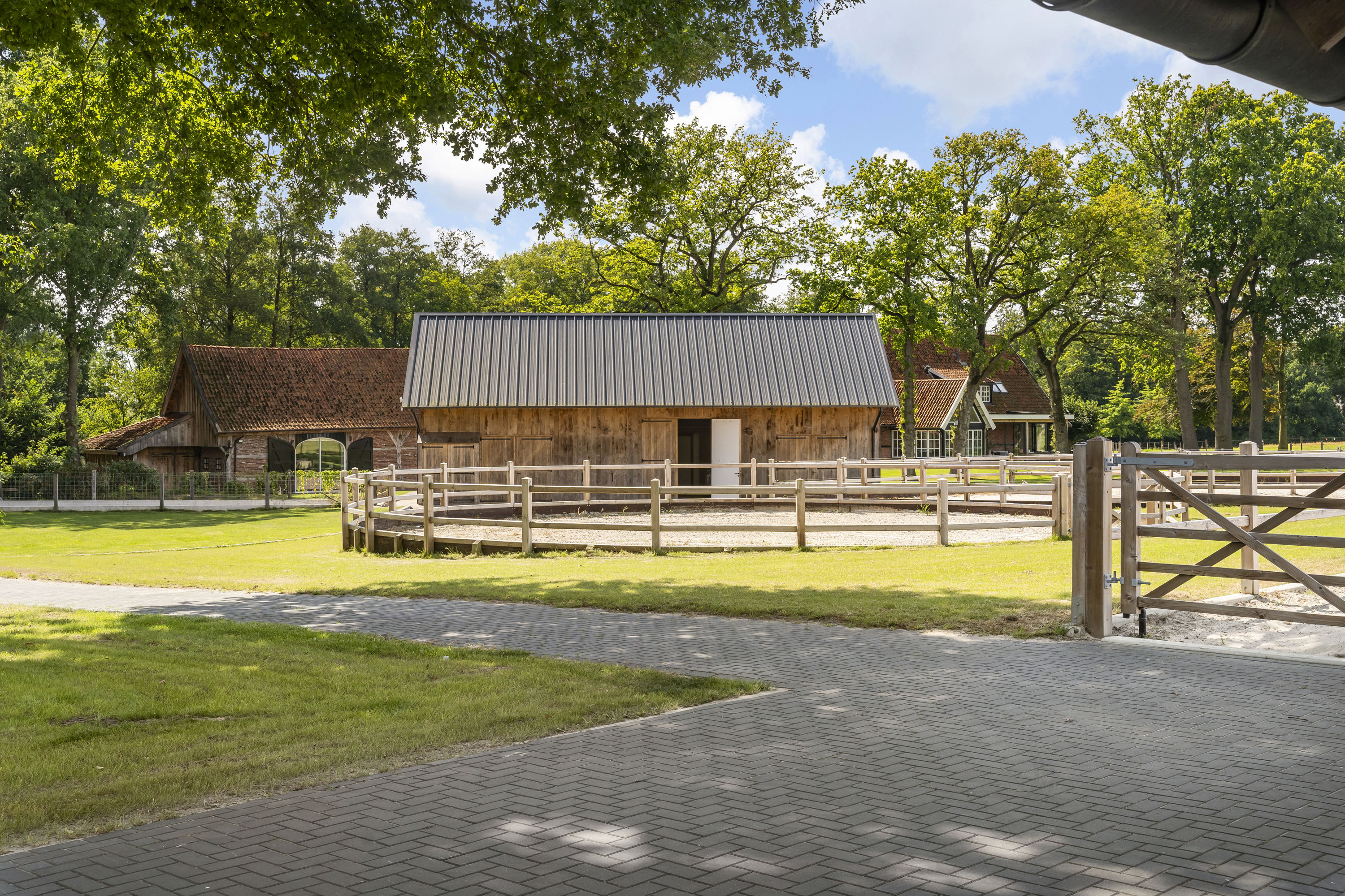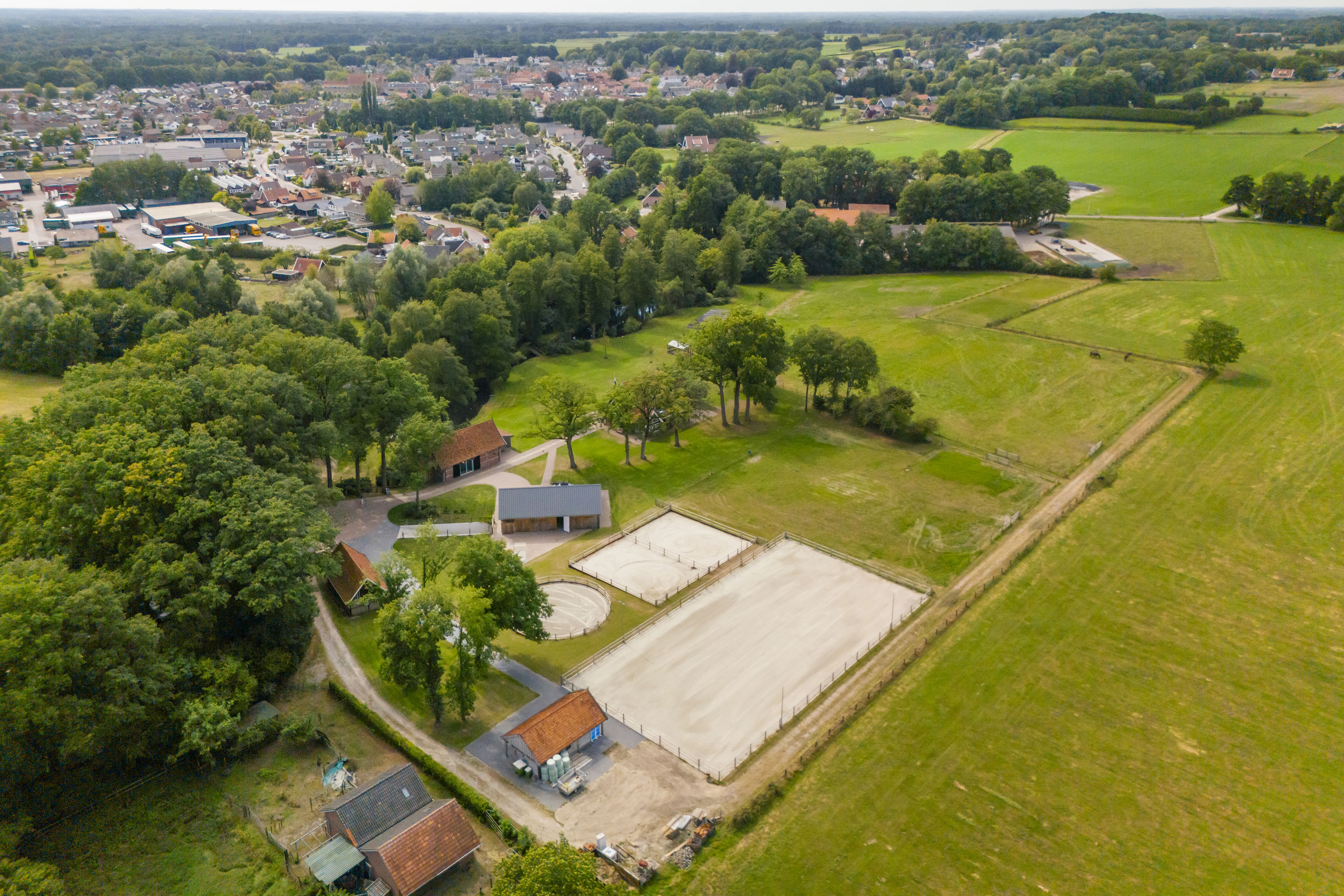 En dan zijn er nog de ruime weides. Keurig in het hout gezet, voorzien van robuuste hekken, zodat er ook eenvoudig groot materieel in en uit kan rijden. De paden er naar toe zijn semiverhard met puingranulaat zodat dit jaarrond zonder schade aan het terrein kan plaatsvinden.