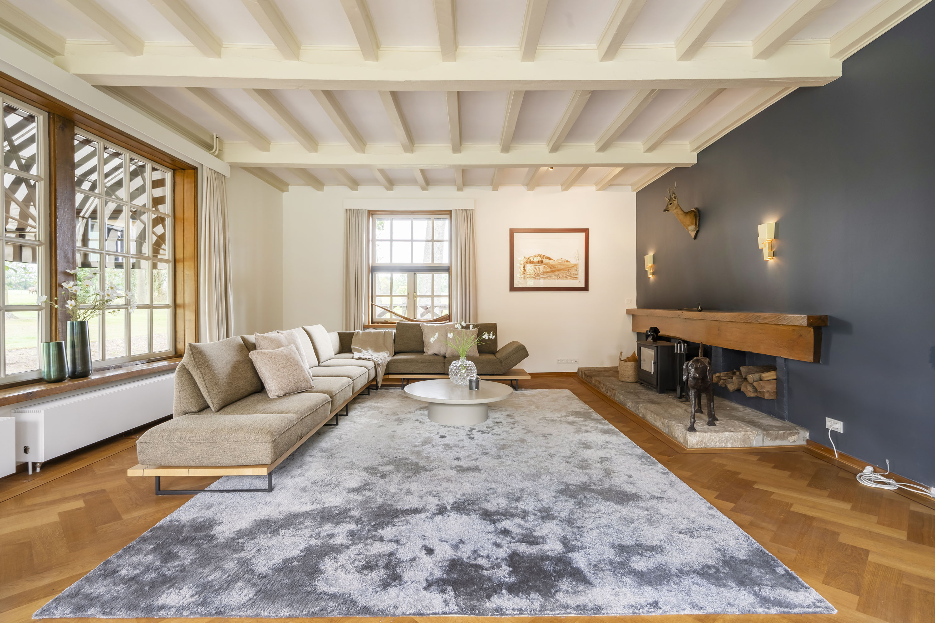 Het historische silhouet van de voormalige hoeve is behouden, terwijl het interieur met gevoel voor stijl en luxe is ingericht. Hier vindt u een royale moderne leefkeuken, sfeervolle woonvertrekken en meerdere slaapkamers en badkamers, afgewerkt met hoogwaardige materialen. Een huis dat warmte en grandeur combineert, waar zowel het dagelijks leven als het ontvangen van gasten een waar genoegen is.