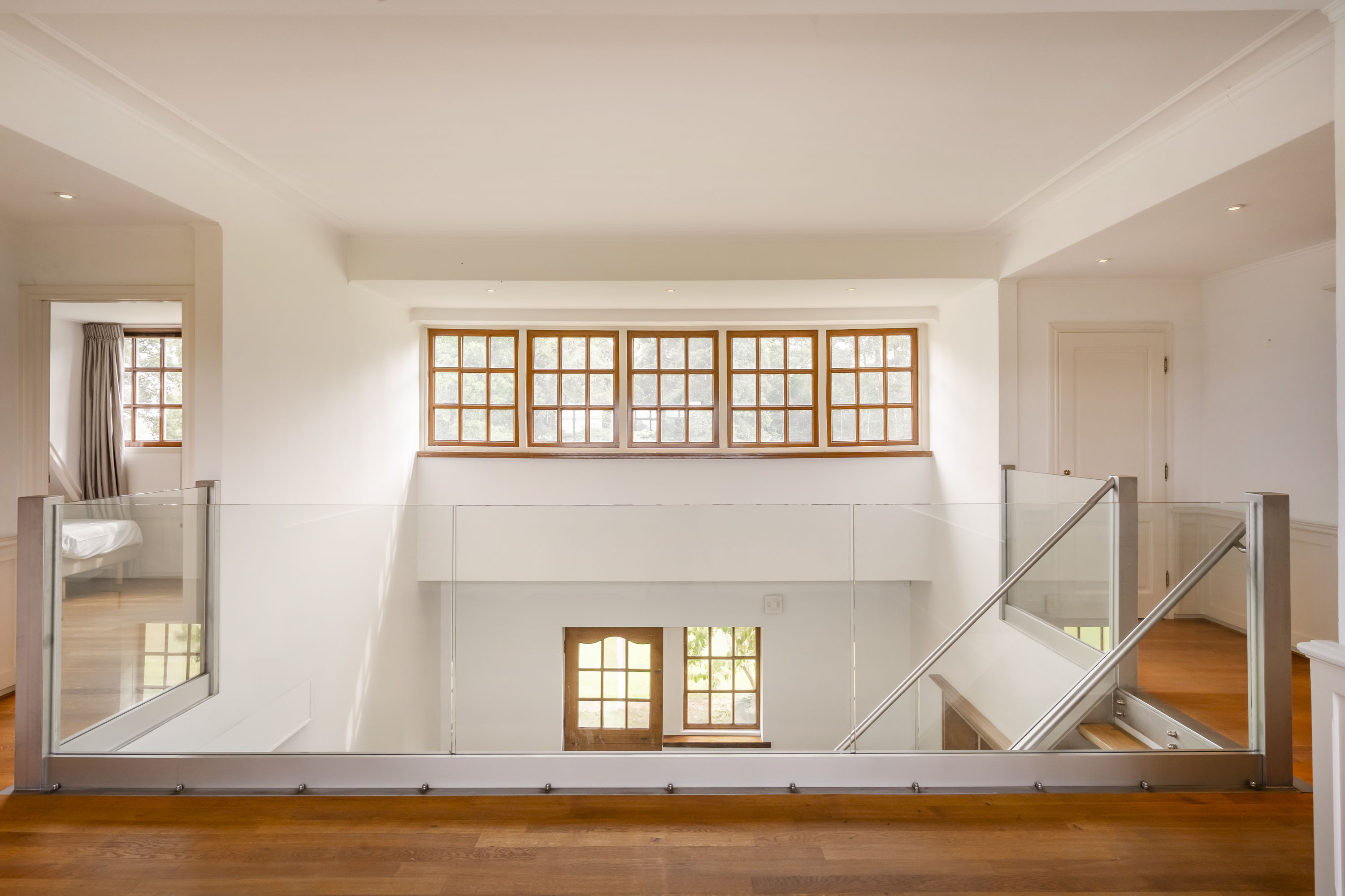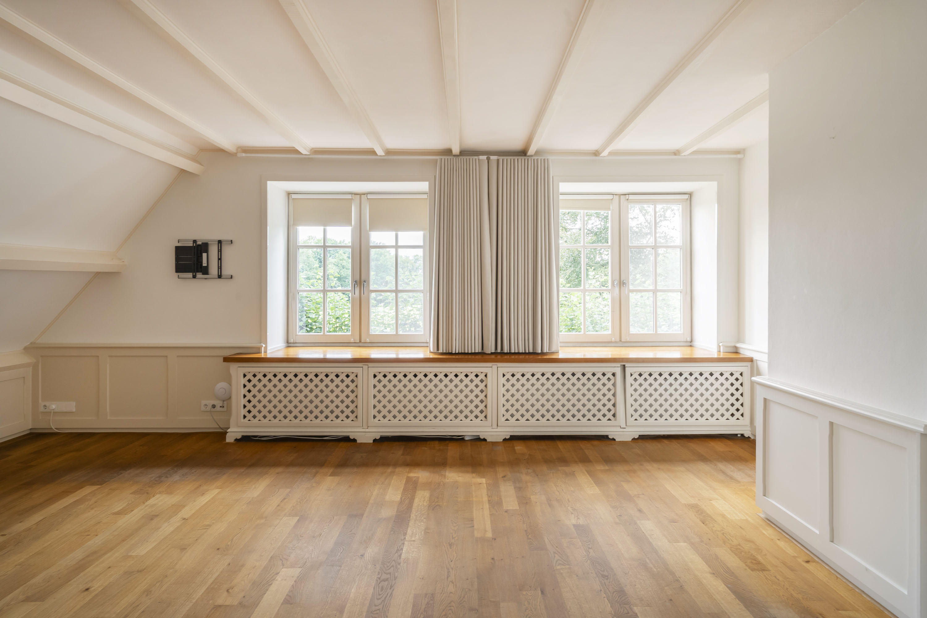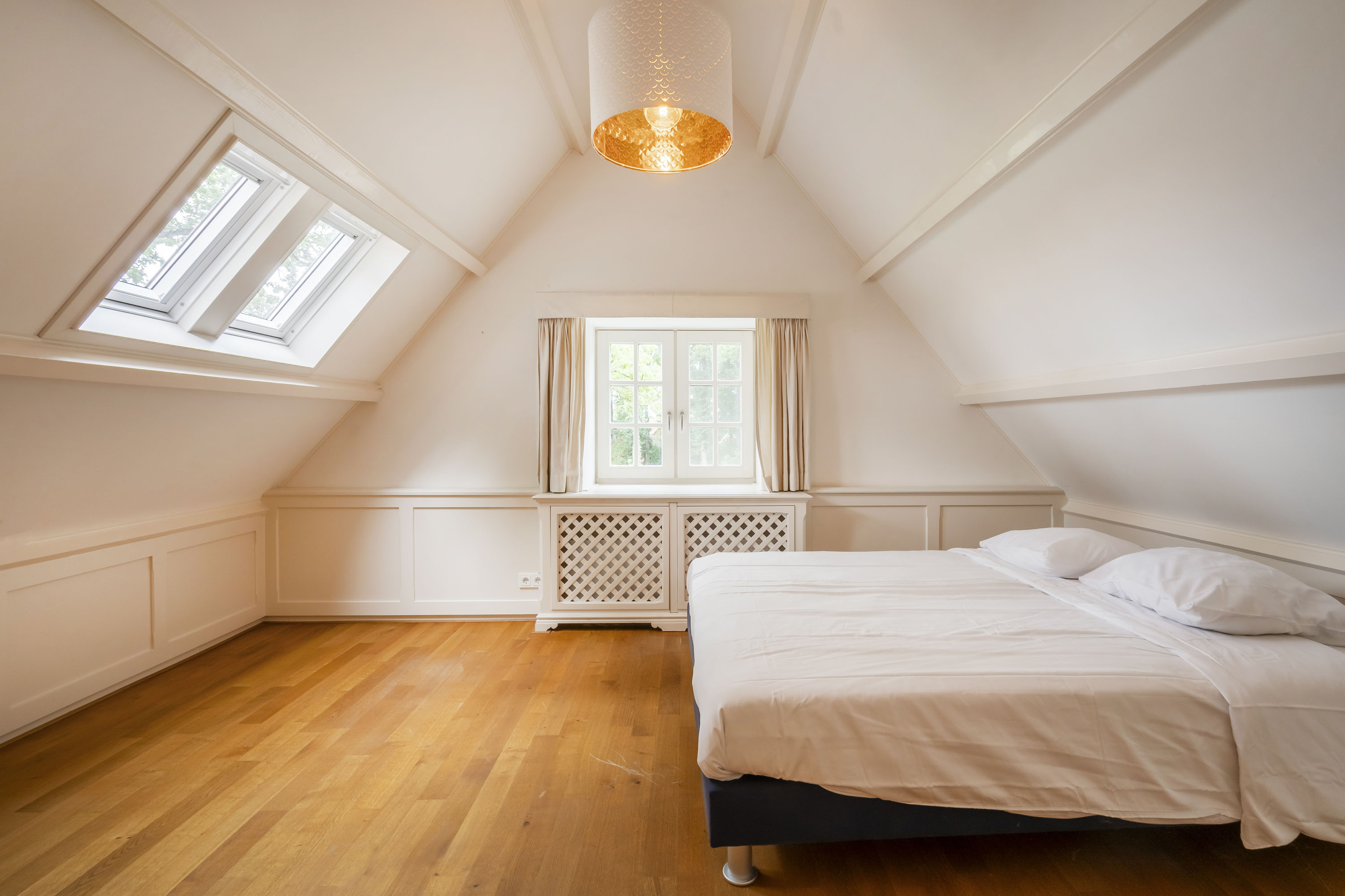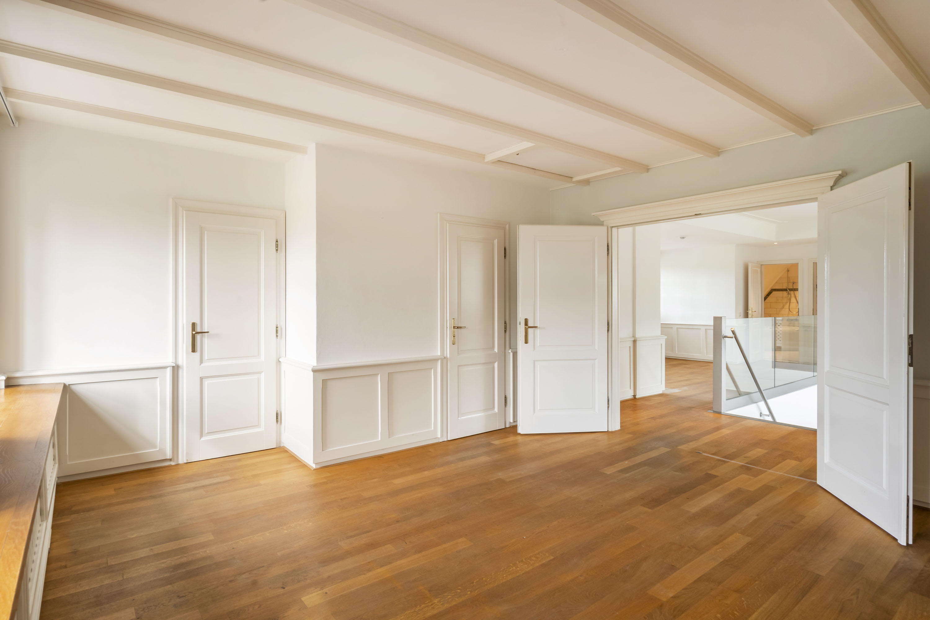 - de gehele bovenverdieping, met uitzondering van de badkamers, is voorzien van een massief eiken vloer.