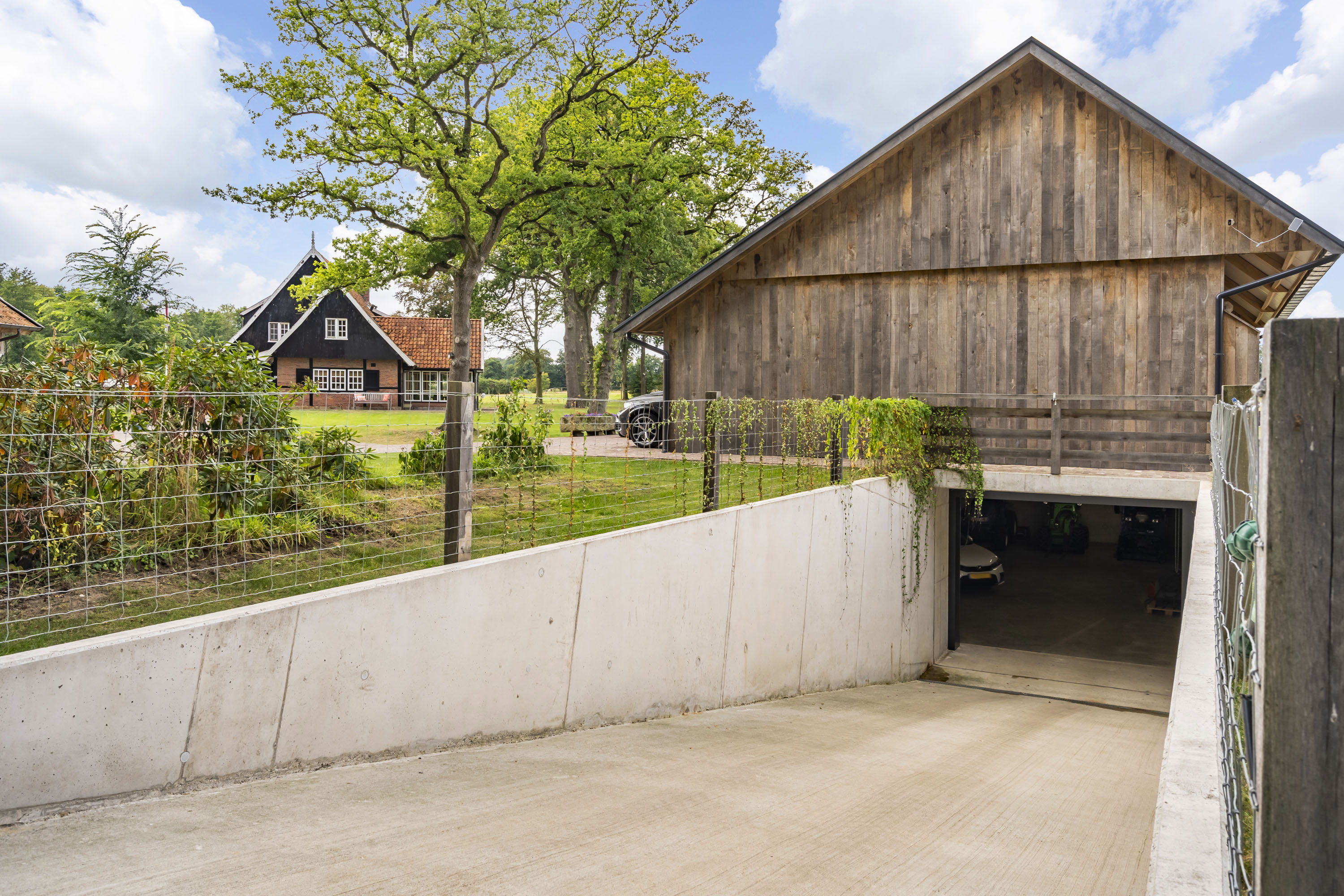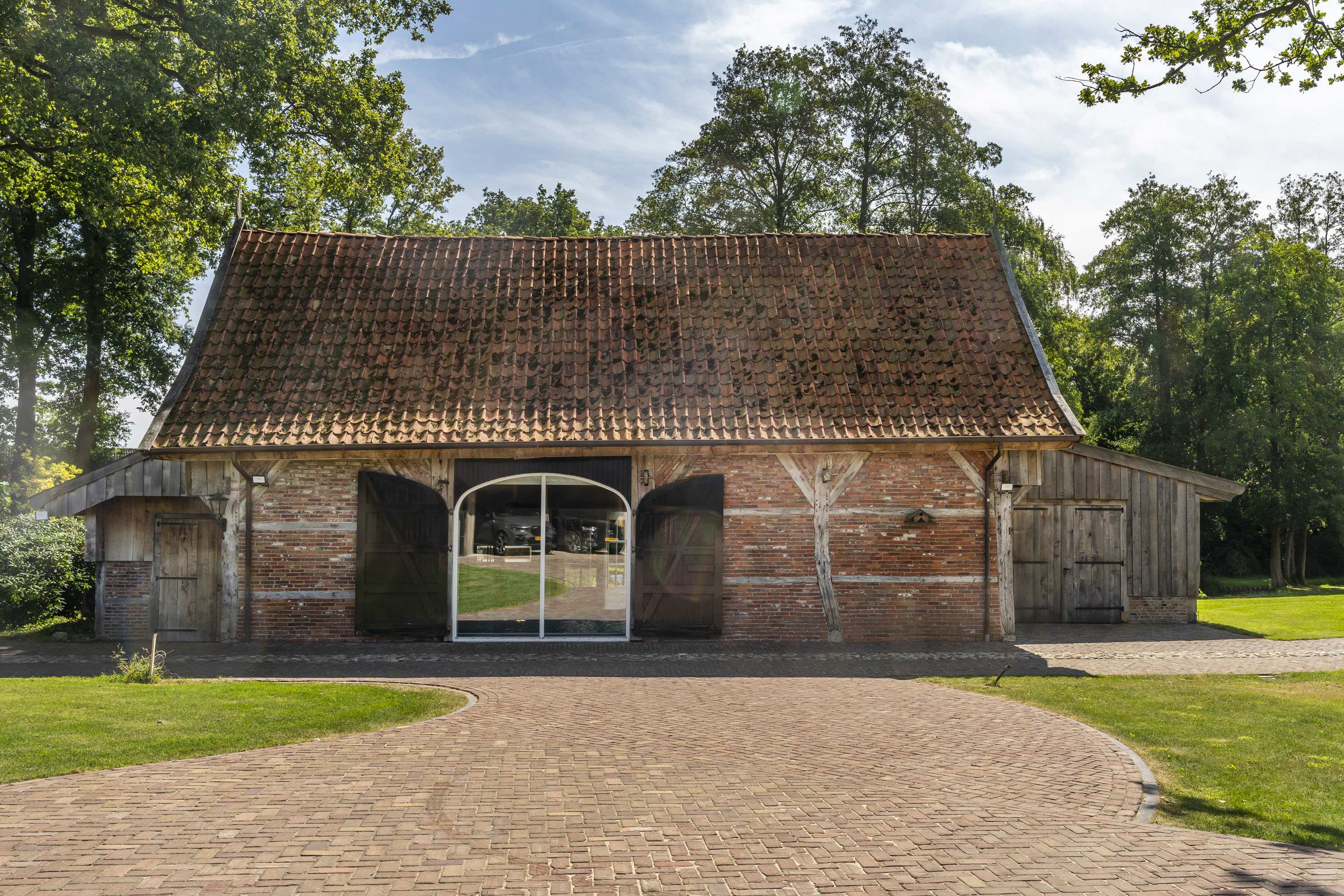 Enkele jaren geleden is een nieuwe multifunctionele schuur op het erf verrezen. Opgetrokken uit eikenhouten gebinten en wanden, sluit dit bouwwerk qua uiterlijk naadloos aan op het klassieke Twentse landschap en verbergt het de luxe en moderne voorzieningen die aanwezig zijn. Het gebouw is geheel onderkelderd en voorzien van een verwarmde hellingbaan, waardoor het geschikt is om werktuigen, groot of klein binnen te stallen. Bovendien is het volledig geïsoleerd zodat het dienst kan doen als atelier, stalling van oldtimers of andere ruimtevragende activiteiten. Maar ook een kantoor of stijlvolle herenkamer behoort tot de mogelijkheden.