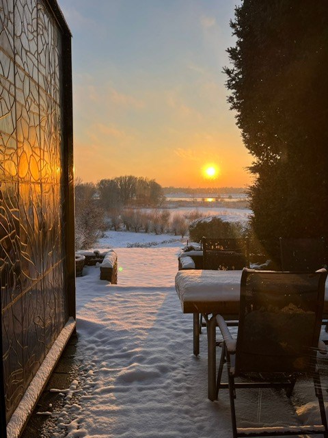 A rear garden with a sunny aspect and magnificent unobstructed views over nature and water is the highlight of this home. With a paved terrace, there is ample room for a lounge set or outdoor dining table, while the garden’s greenery provides peace and privacy.