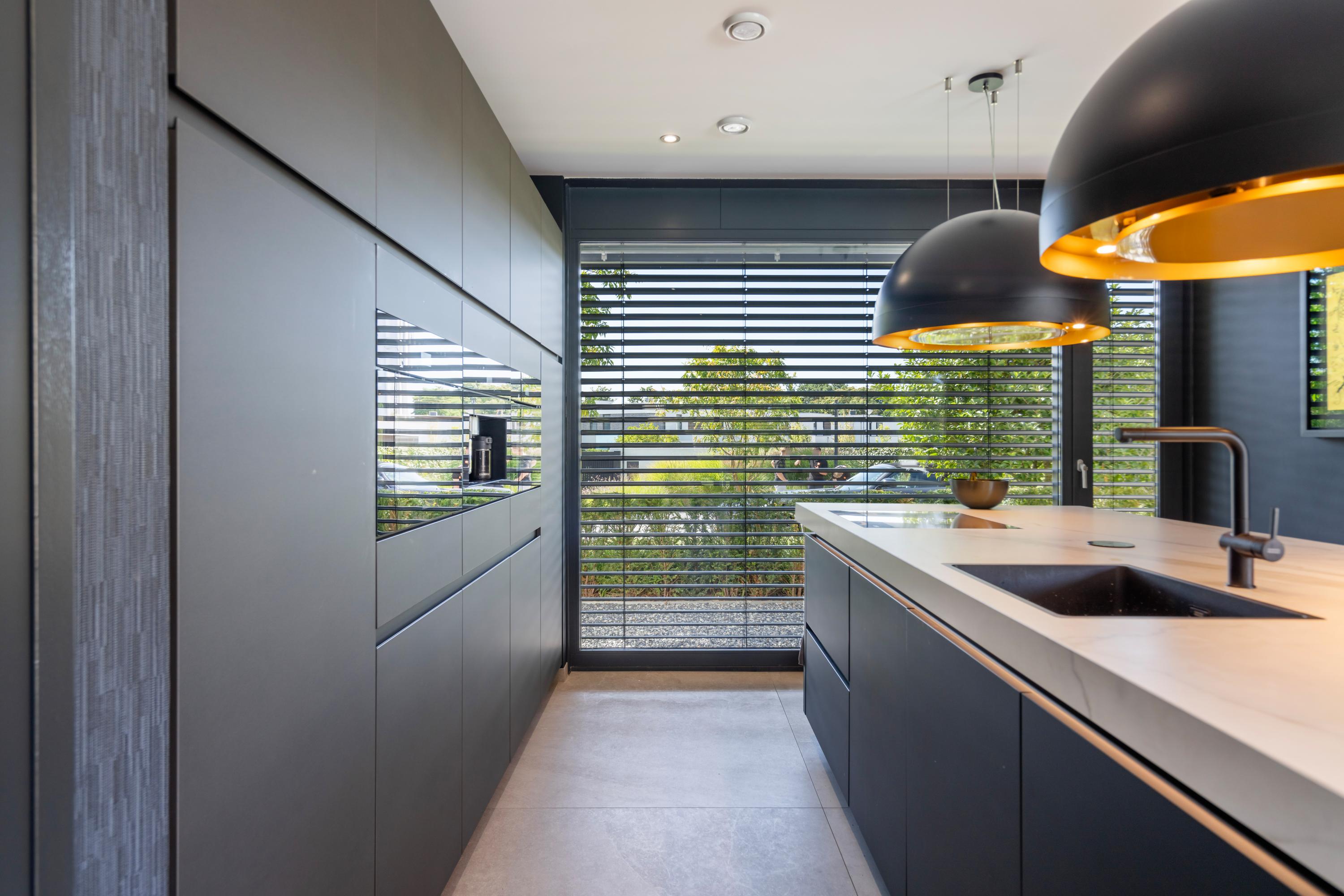 There is a seamless flow between the luxurious kitchen with cooking island, the dining area, and the living room — perfect for entertaining guests and creating a warm, inviting atmosphere. The ground floor is a fantastic place to spend quality time with family and friends. From every angle, you enjoy beautiful views of the garden. And on sunny days, simply open the sliding doors to create a wonderful indoor?outdoor living experience.