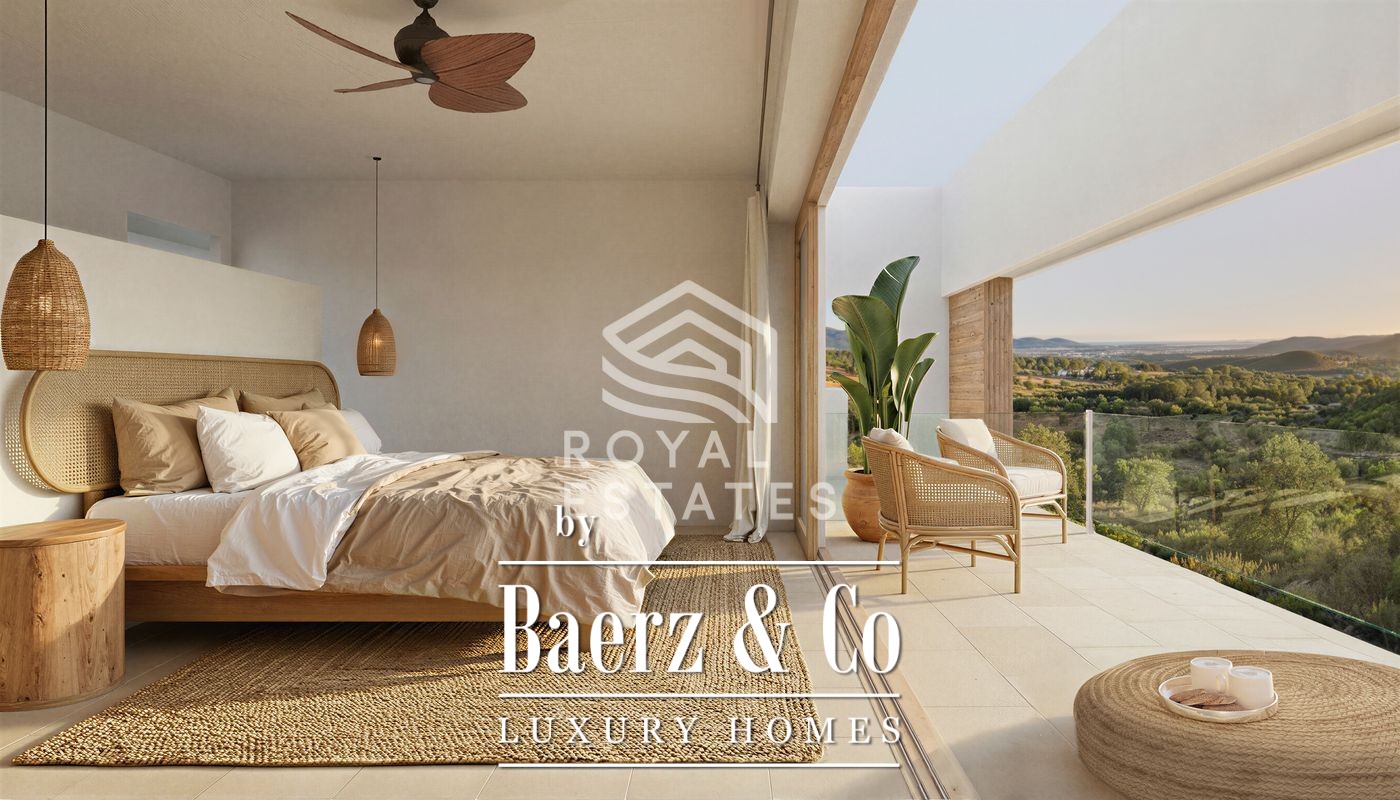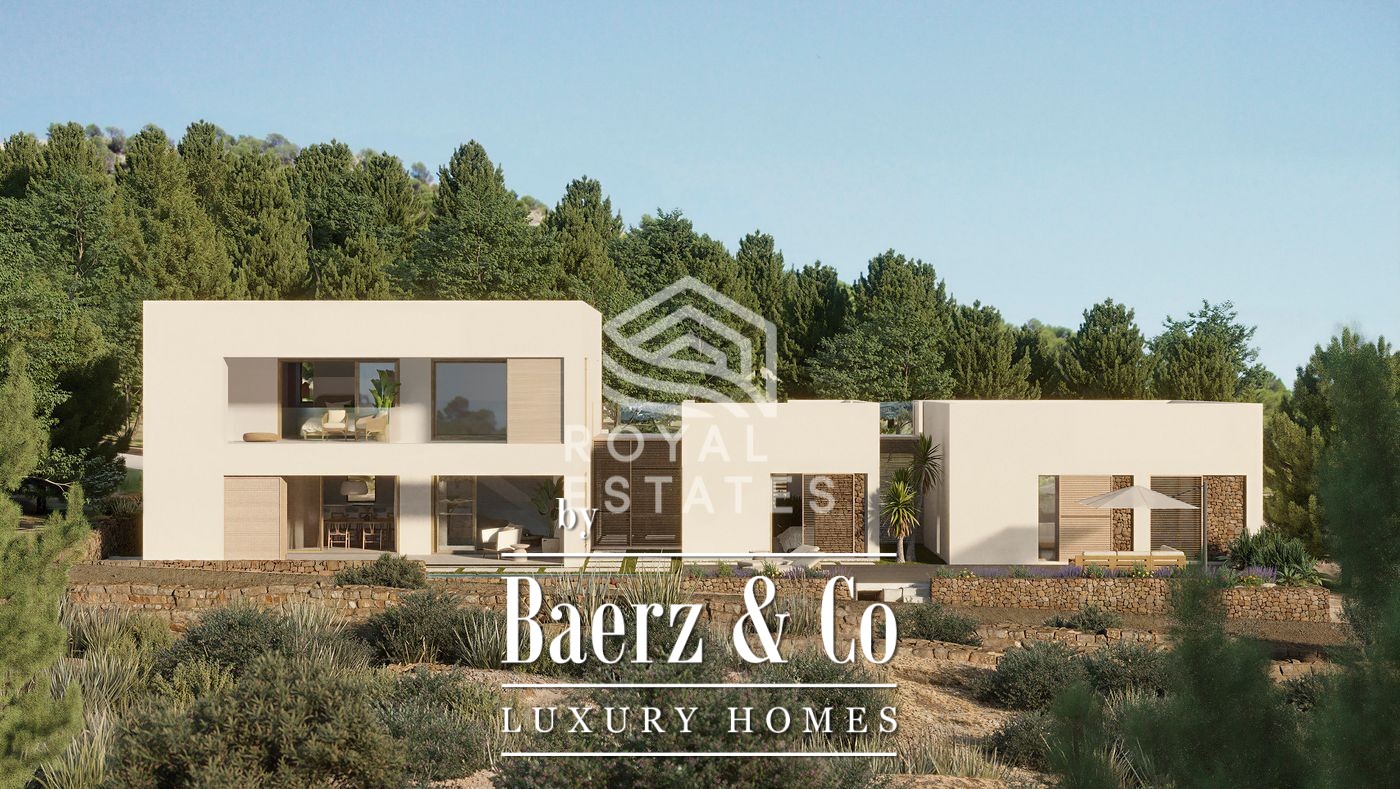 The development concept presents a contemporary take on traditional Ibizan architecture, defined by clean volumes, natural materials and an open flow between interiors and the outdoors. A granted building permit enables a swift move from vision to construction. The planned residence offers approximately 520 m² of built space with five bedrooms and five bathrooms, including distinct suites for family and guests. Interior design centers on abundant natural light and continuous movement between living, dining, terraces and pool area.