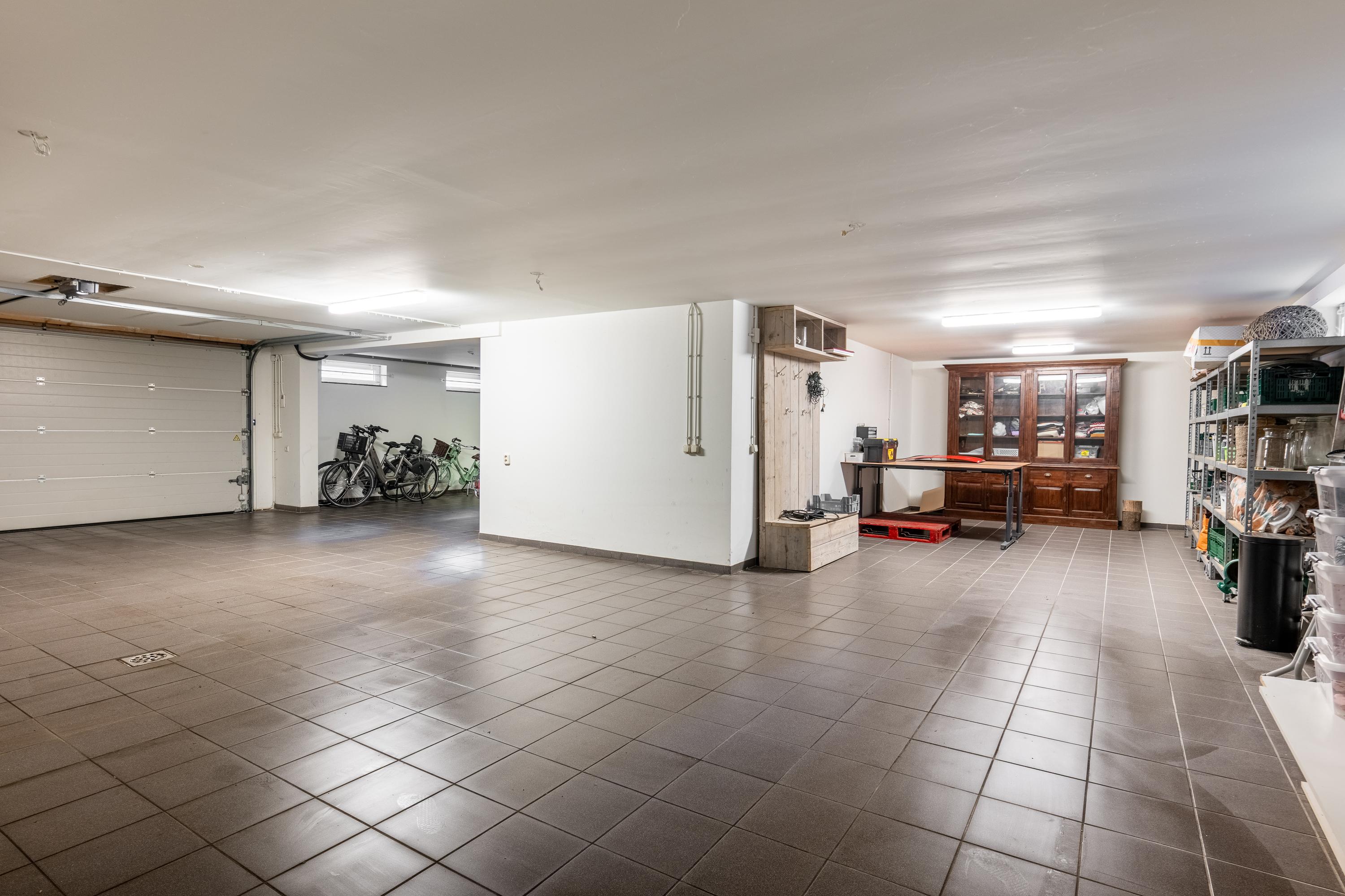 The spacious driveway provides access to two garages (approx. 111 and 50 m²). The largest garage offers plenty of possibilities and provides indoor access to the house. The second garage provides access to the garden at the rear. This garage also houses the swimming pool equipment. In total, there is space for approx. 8 cars in the garages. Various vehicles can also be parked at the front of the house.