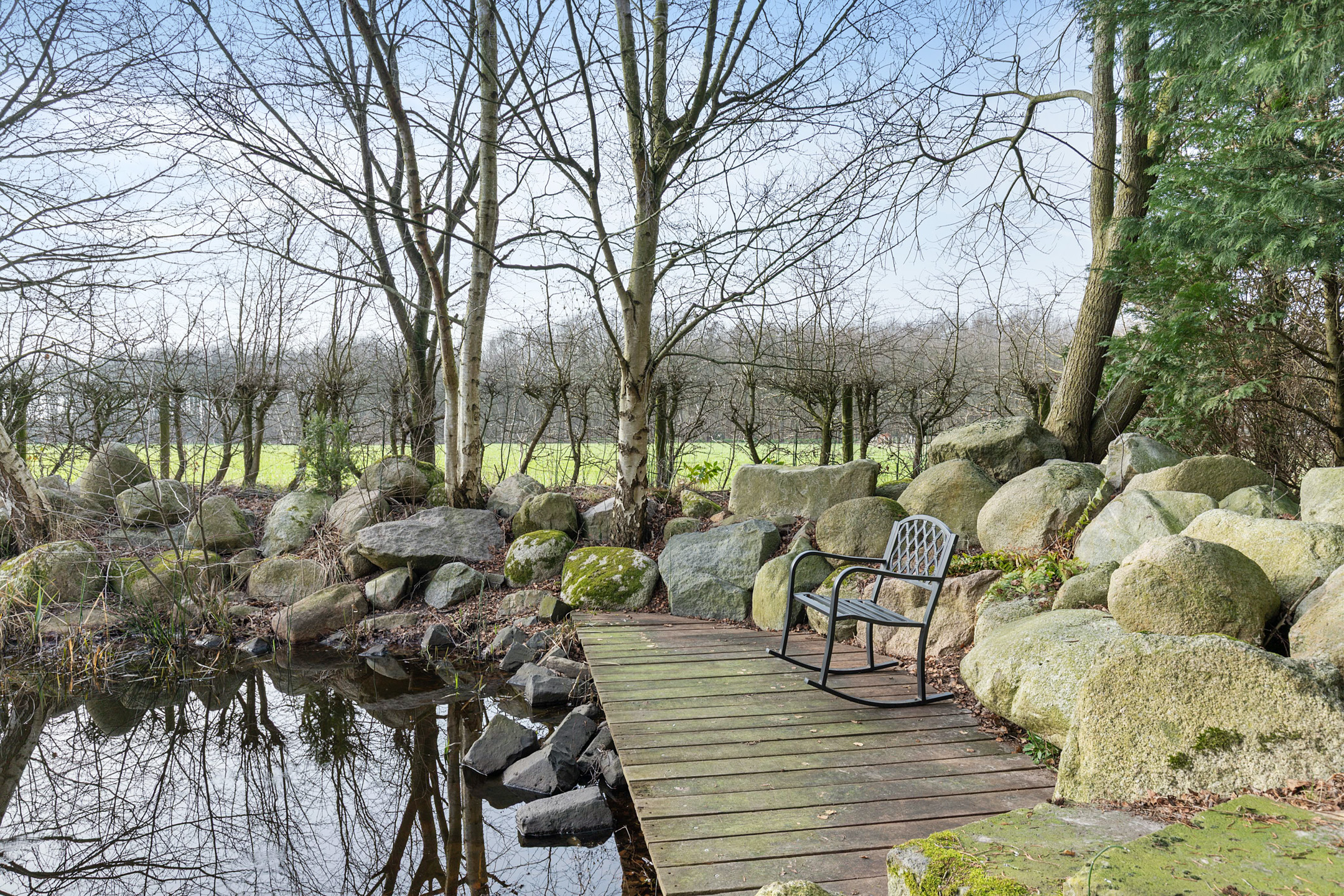 Nestled amidst the gently rolling hills, forests and lakes of Gaasterland, this exceptional estate enjoys a truly unique setting. From the house you step directly into nature, a serene landscape where roe deer, badgers and hedgehogs are regular visitors to the garden. Birds sing from the treetops, the sun sparkles on the pond and at dusk curious foxes sometimes wander by. All this while being just 10 minutes from the A6 motorway towards the Randstad. Here you experience a rare sense of freedom and a deep connection with nature.