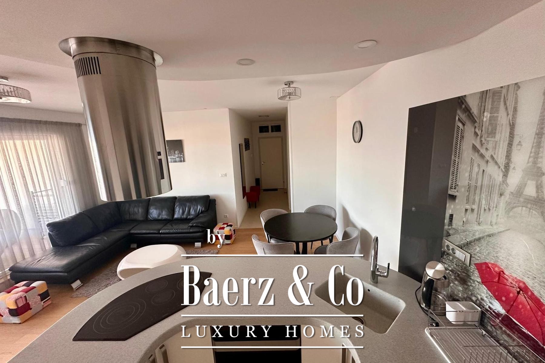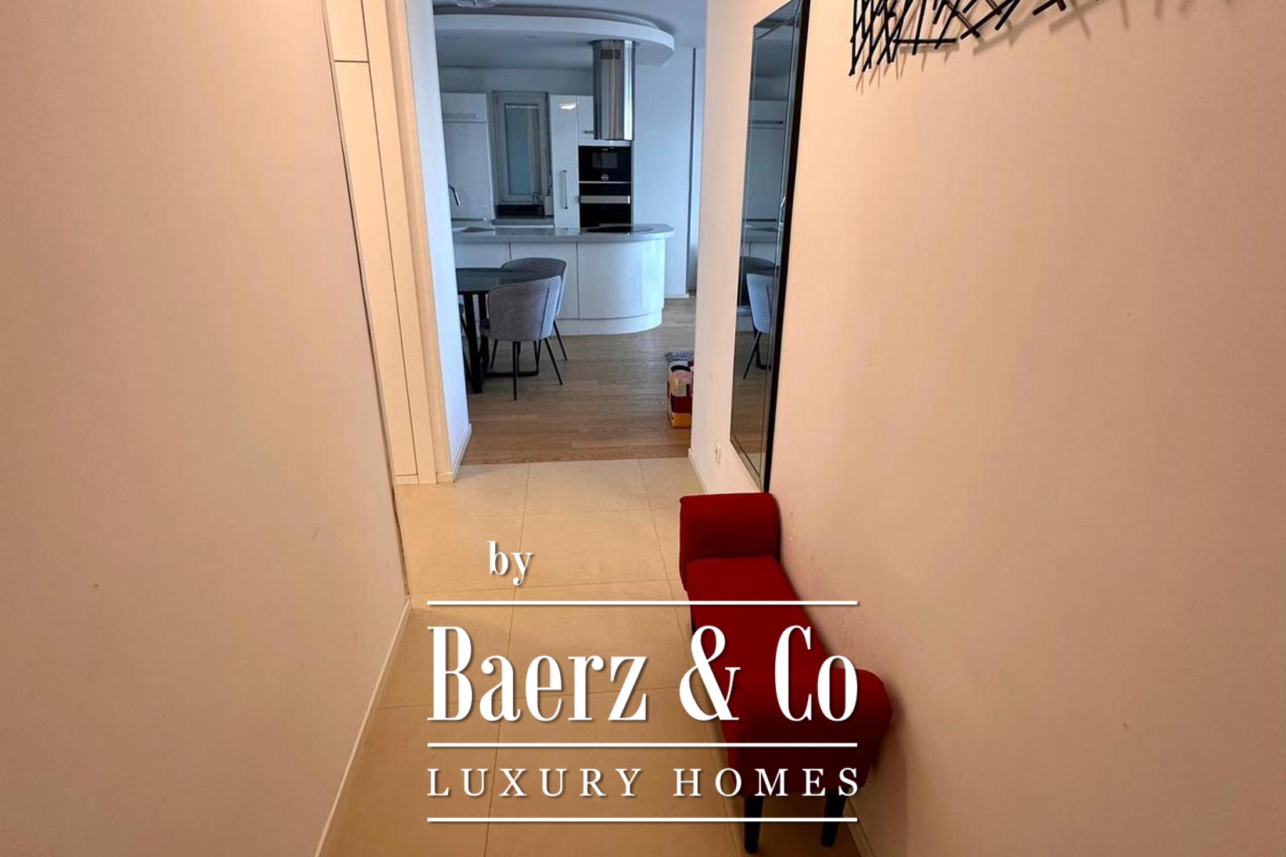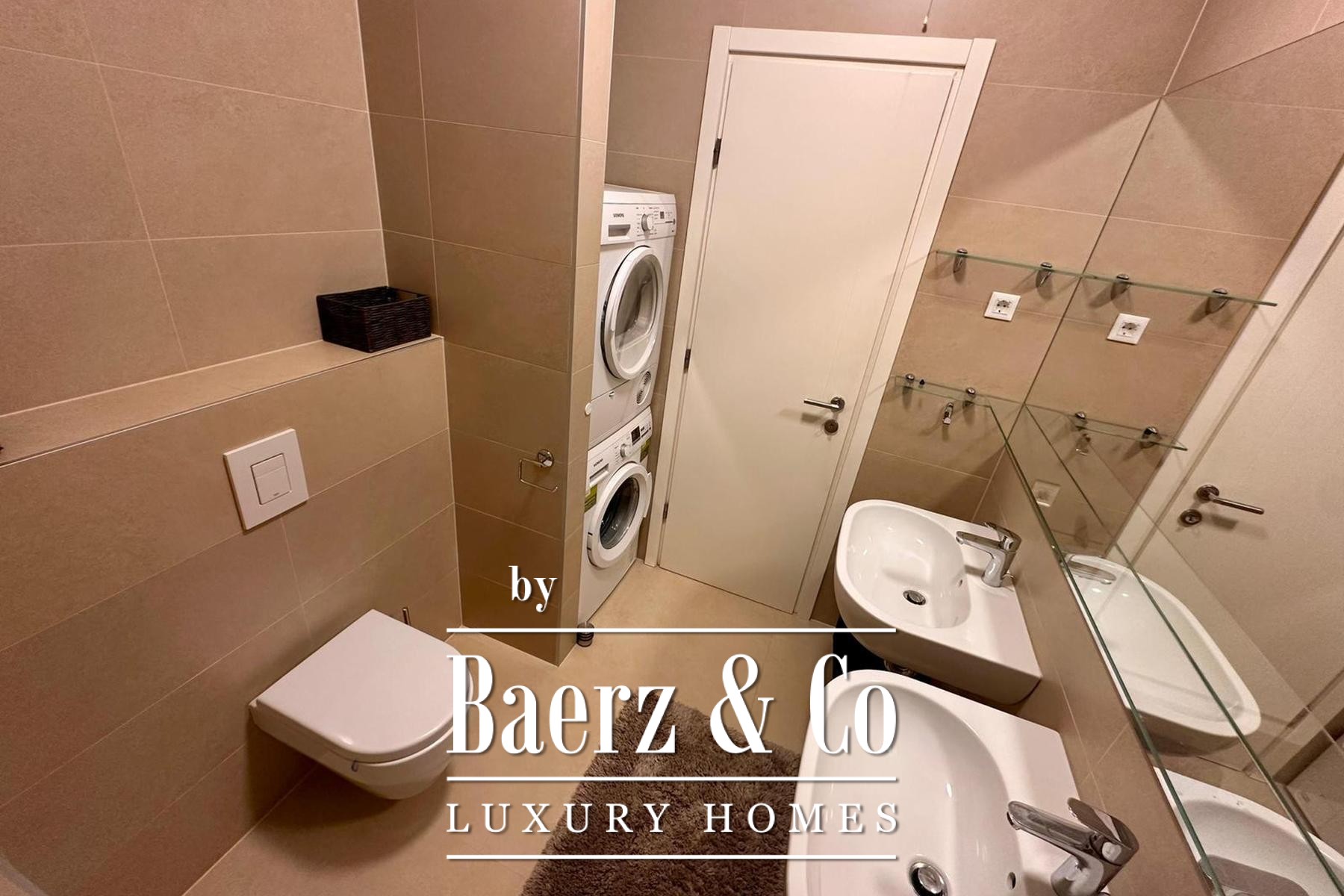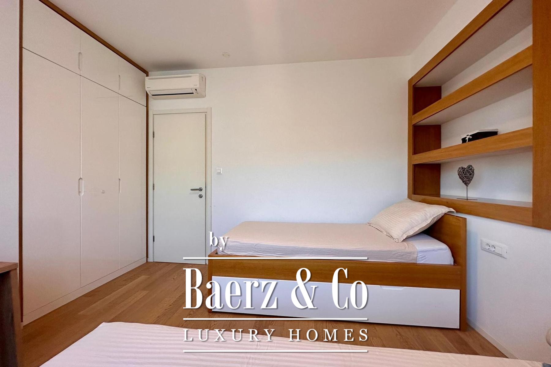 The interior layout harmoniously merges an open plan living room, dining area, and a contemporary kitchen, all finished with high quality materials and furnished for immediate move in. Functionality is elevated by two private terraces, one expansive at 42 m² and another intimate at 8 m², both ideal for quiet moments or social gatherings under the sky.