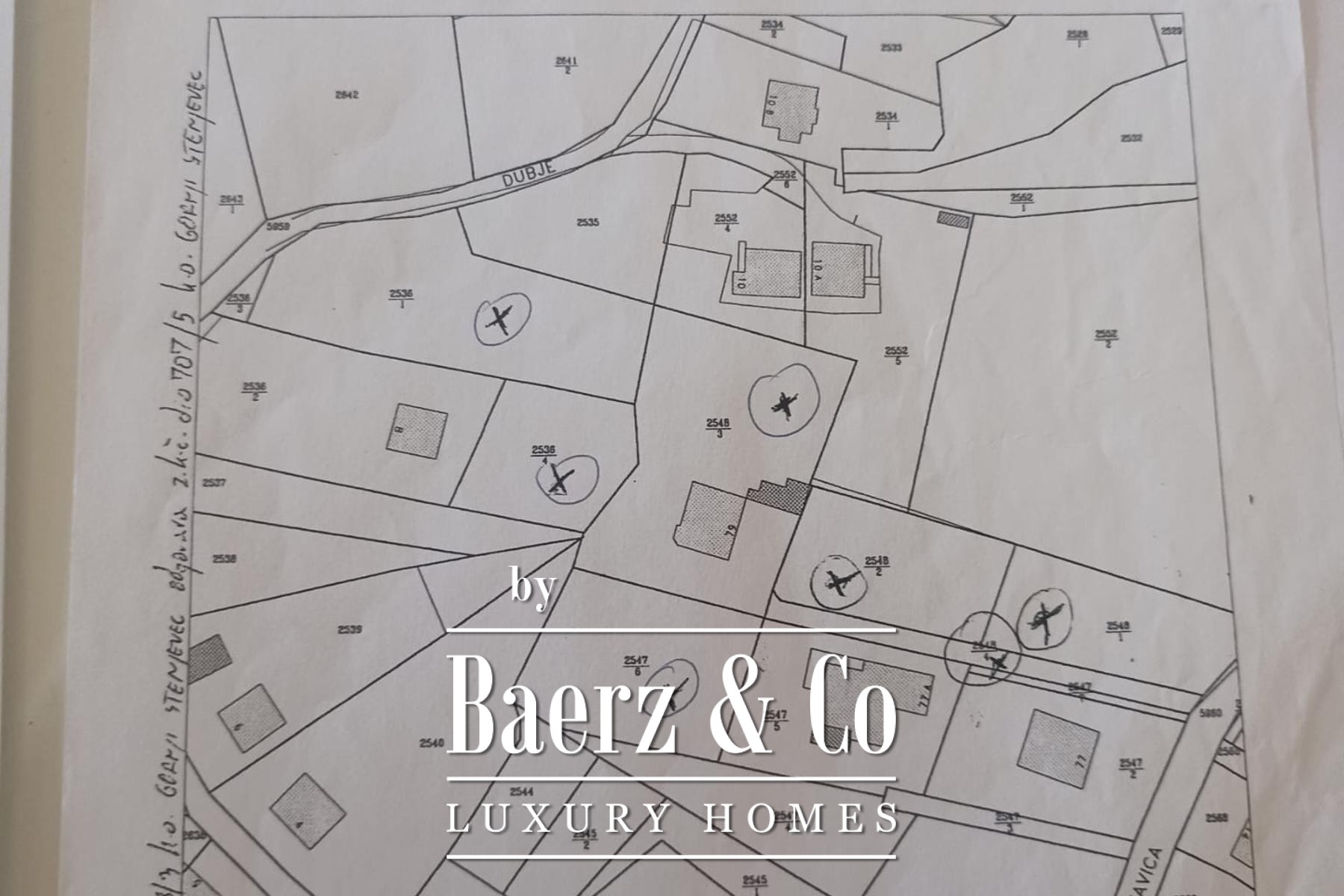 515 m2, the larger southern part of the land is within the area of "residential use" (planning code S), urban rules 2.2, and the small northern part within the "protective green areas" (planning code Z), urban rules 1.10Plot 3: area of 1308, urban rules 1.10, green area, forestThe access road of 236 m2 also belongs to the house.It is possible to sell without land or with individual plots. Prices on request.We are at your disposal for other information.