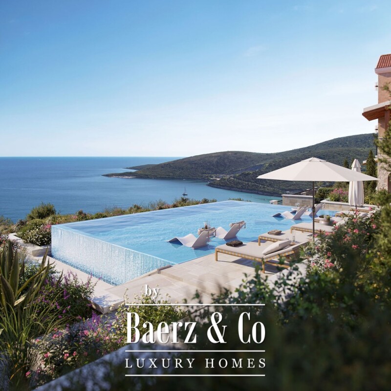 Apartment Tivat with sea and mountain views offers a considered balance between privacy, elevation, and unbroken panoramas. With 40 m² of living space, the residence holds three bedrooms and two bathrooms, designed for a refined yet effortless lifestyle. Expansive terraces and infinity pools invite the outdoors in, while landscaped gardens set a tranquil rhythm against sweeping vistas.