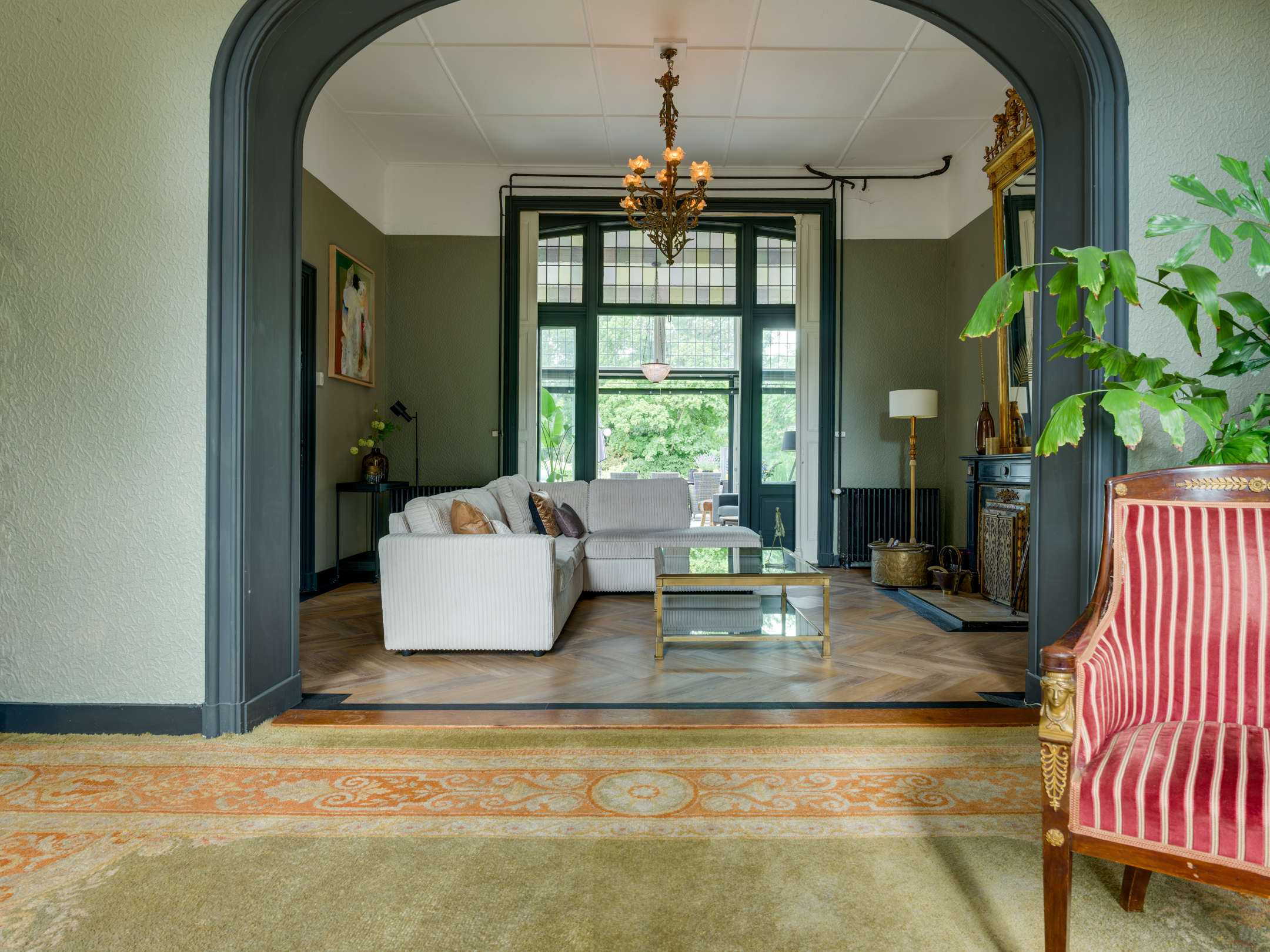 A grand living room with en suite salon, seamlessly connected to the garden room