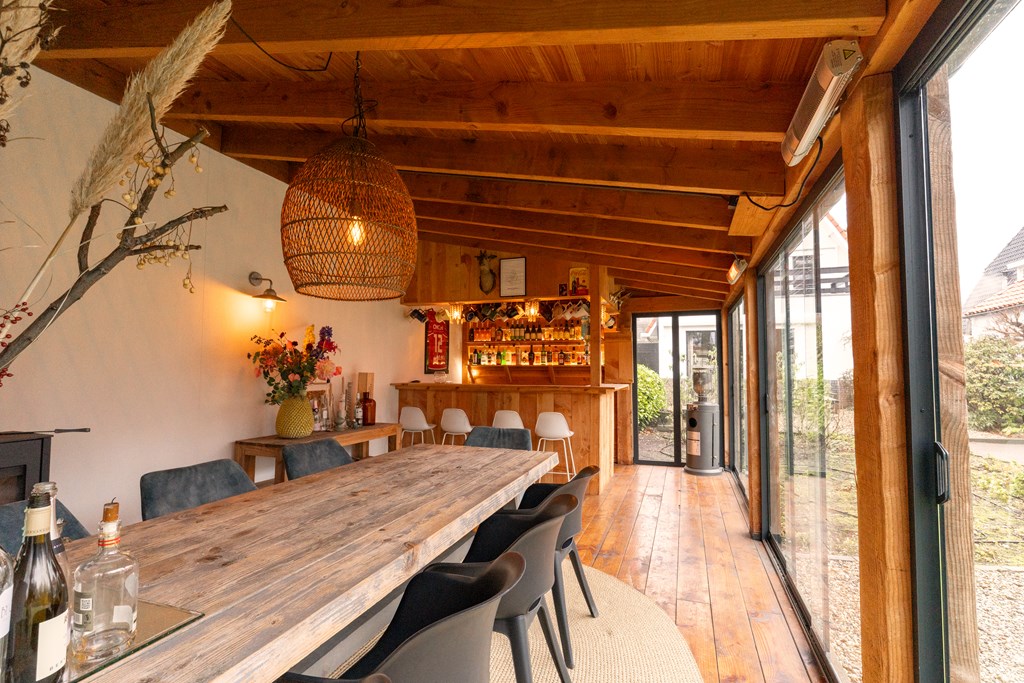 - luxe veranda met bar en houtkachel