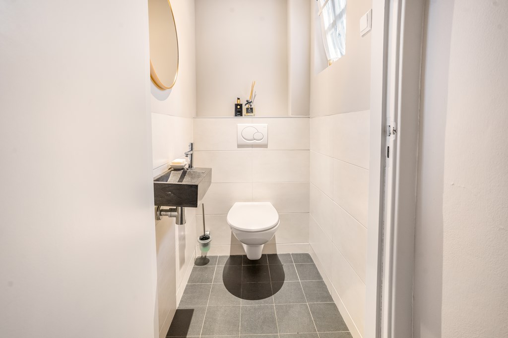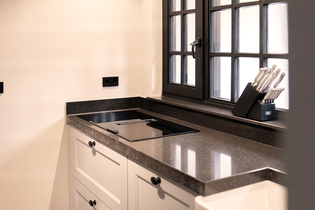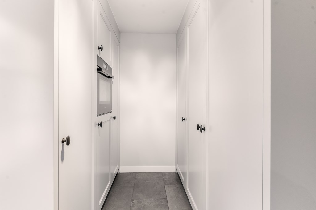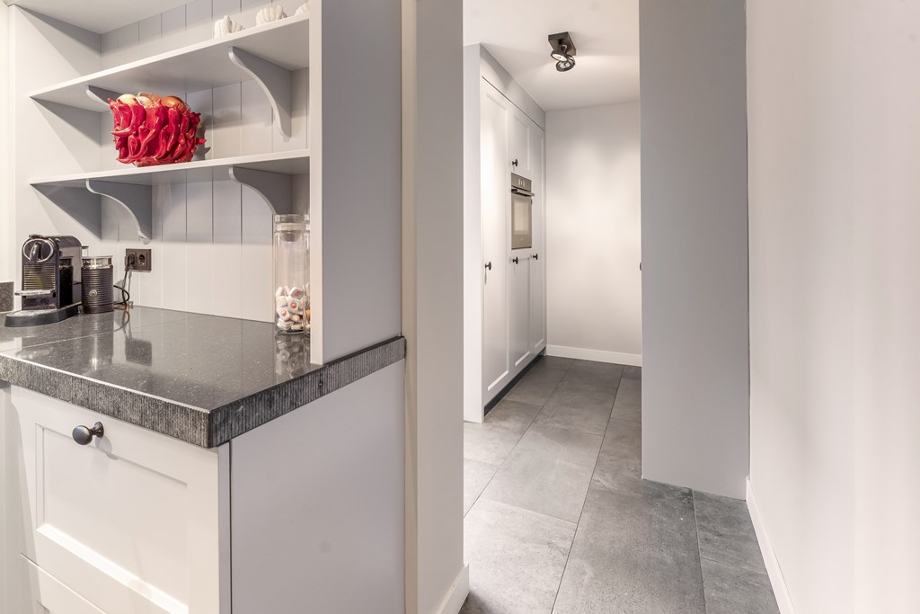 De in 2021 vernieuwde keuken is voorzien van een inductie kookplaat, oven, magnetron, vaatwasser, koelkast en een Quooker. Vanuit de keuken bereikt u de bijkeuken met praktische wandkasten, de cv-combiketel (Nefit uit 2021) en de meterkast.