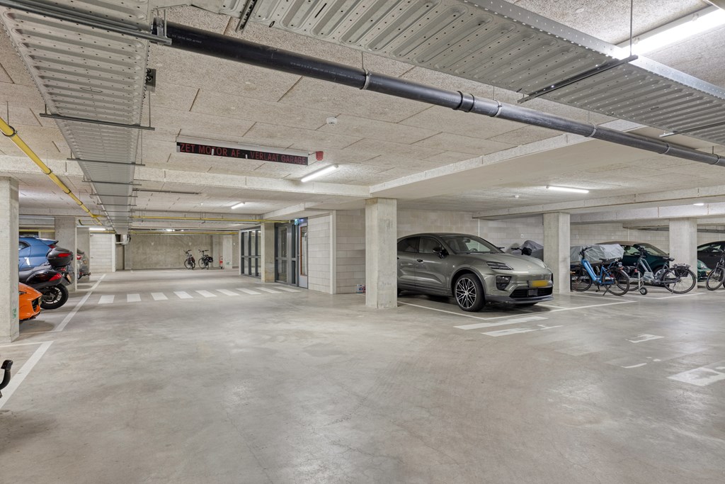 The entrance of Rembrandt Résidence immediately makes a neat and representative impression. Through the shared, secure entrance with intercom panel and mailboxes, you reach the stylish staircase and elevator that comfortably take you to the apartment. In the basement level, you have access to a spacious private storage room, ideal for bicycles and additional storage, as well as access to the secured parking garage with two private parking spaces at your disposal. Additionally, two extra parking spaces are optionally available for purchase at €20,000,- per space. Everything is generously designed, well-organized, and at the level you would expect from this apartment.