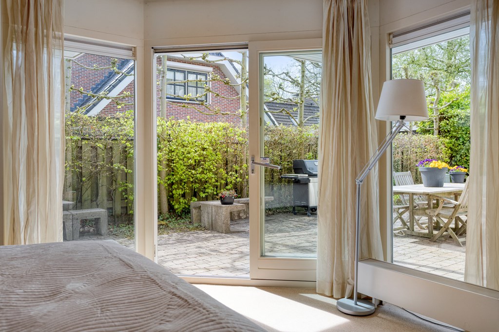 On the ground floor, there is a spacious and well-maintained bedroom. The room is bright and offers sufficient space for a bed, desk, and wardrobe. Thanks to the air conditioning, you can enjoy extra comfort here. The room also provides direct access to the garden, making it particularly appealing.