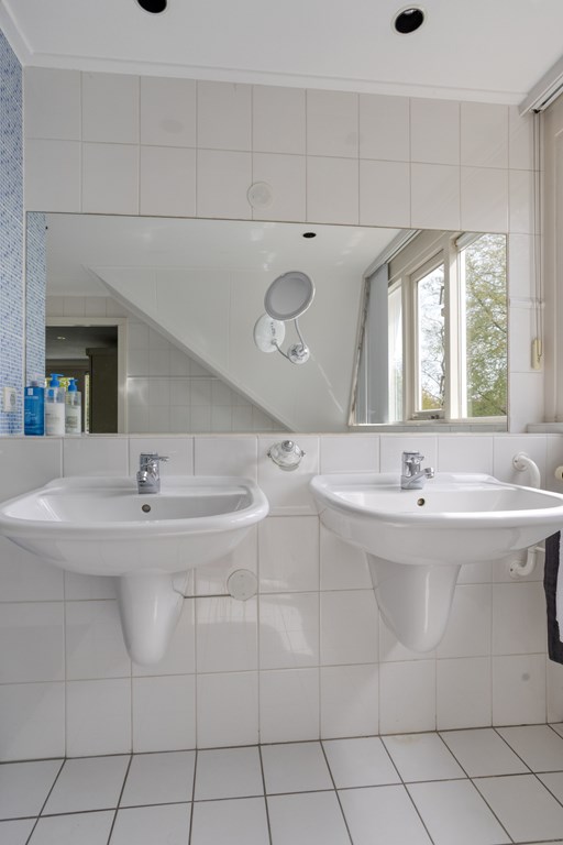 On this floor, you have access to two fully tiled bathrooms. The first bathroom is equipped with a bathtub, a shower, and a double washbasin, making it ideal for families. The second bathroom features a washbasin and a shower cabin. Both bathrooms are in good condition but also offer the opportunity to be modernized to your own taste.