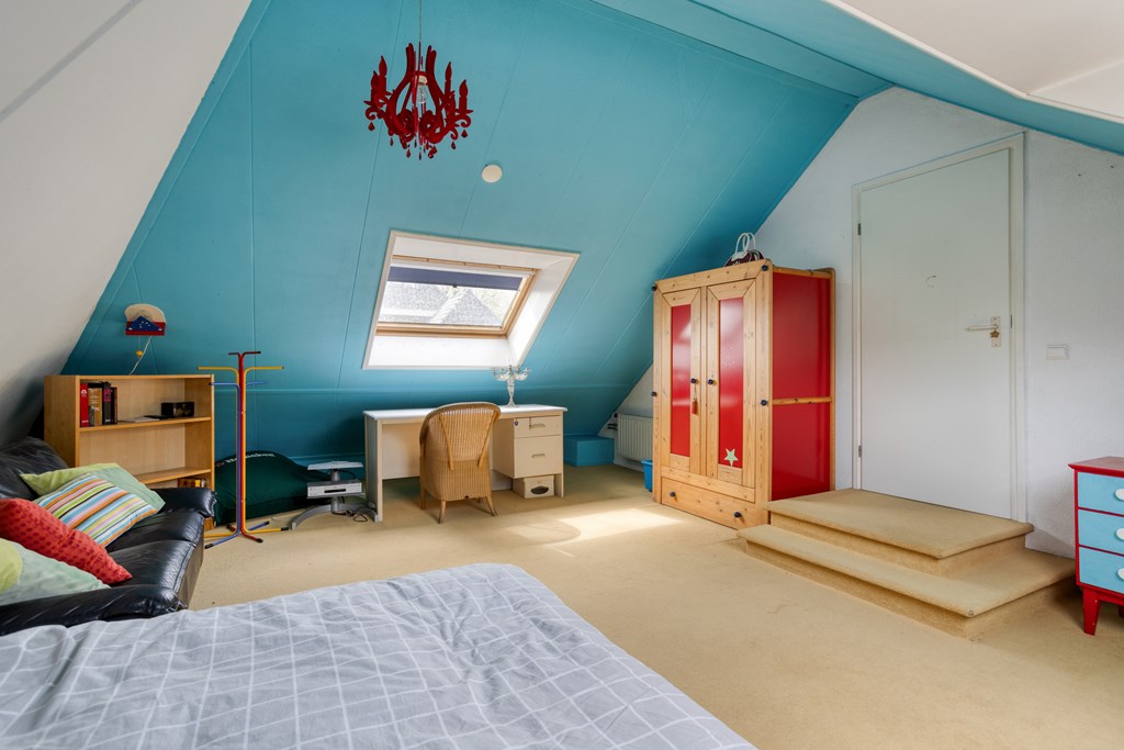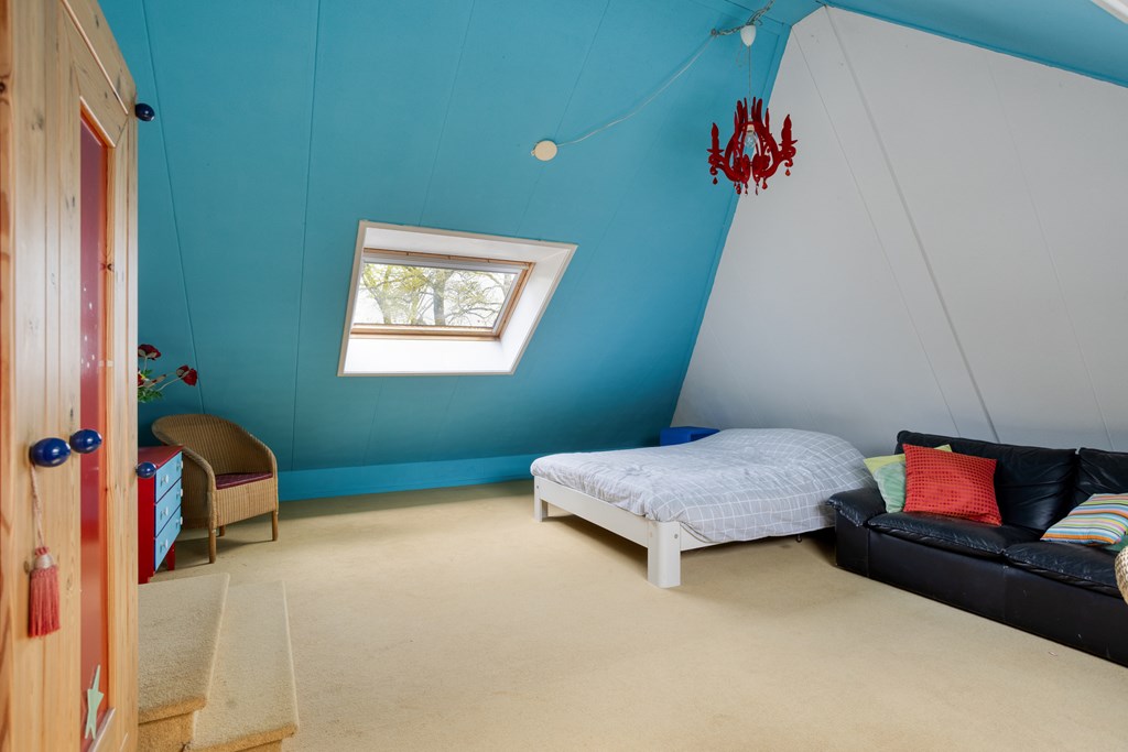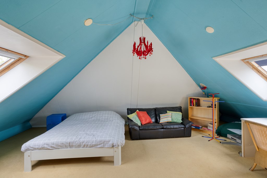 Via a loft ladder, you reach the attic floor. Here you will find practical storage space in the roof apex, ideal for storing seasonal items.