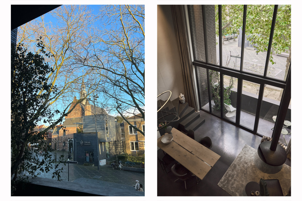 De woning aan de Cedron vormt een serene oase met hoogwaardige materialen en een iconische verticale glazen schacht met een Toscaanse kurkeik als levende sculptuur. De presentatieruimte aan de Nieuwstraat is juist een ingetogen, doordachte werkruimte waarin helderheid, focus en creativiteit centraal staan.