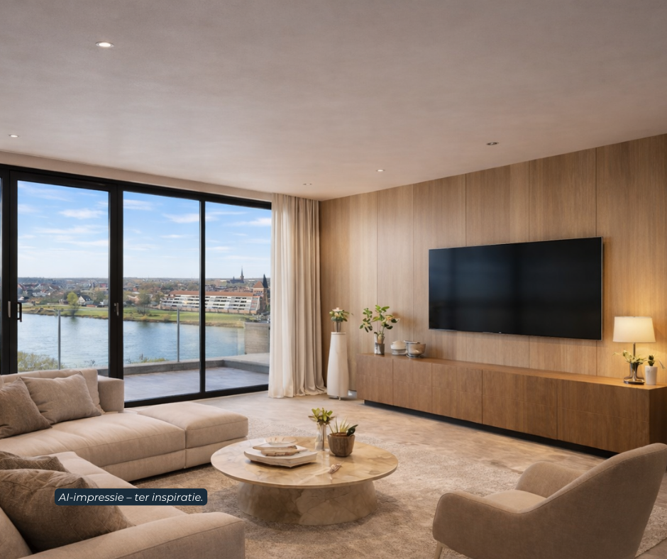 In the prestigious new development Residence ‘ZICHT’, we proudly present an exceptional, nearly completed apartment of approximately 243 m², offering a permanent panoramic view over the River Maas. This is a rare opportunity to live at the very highest level: spacious, luxurious, and centrally located, where tranquility, privacy, and grandeur come together naturally.
